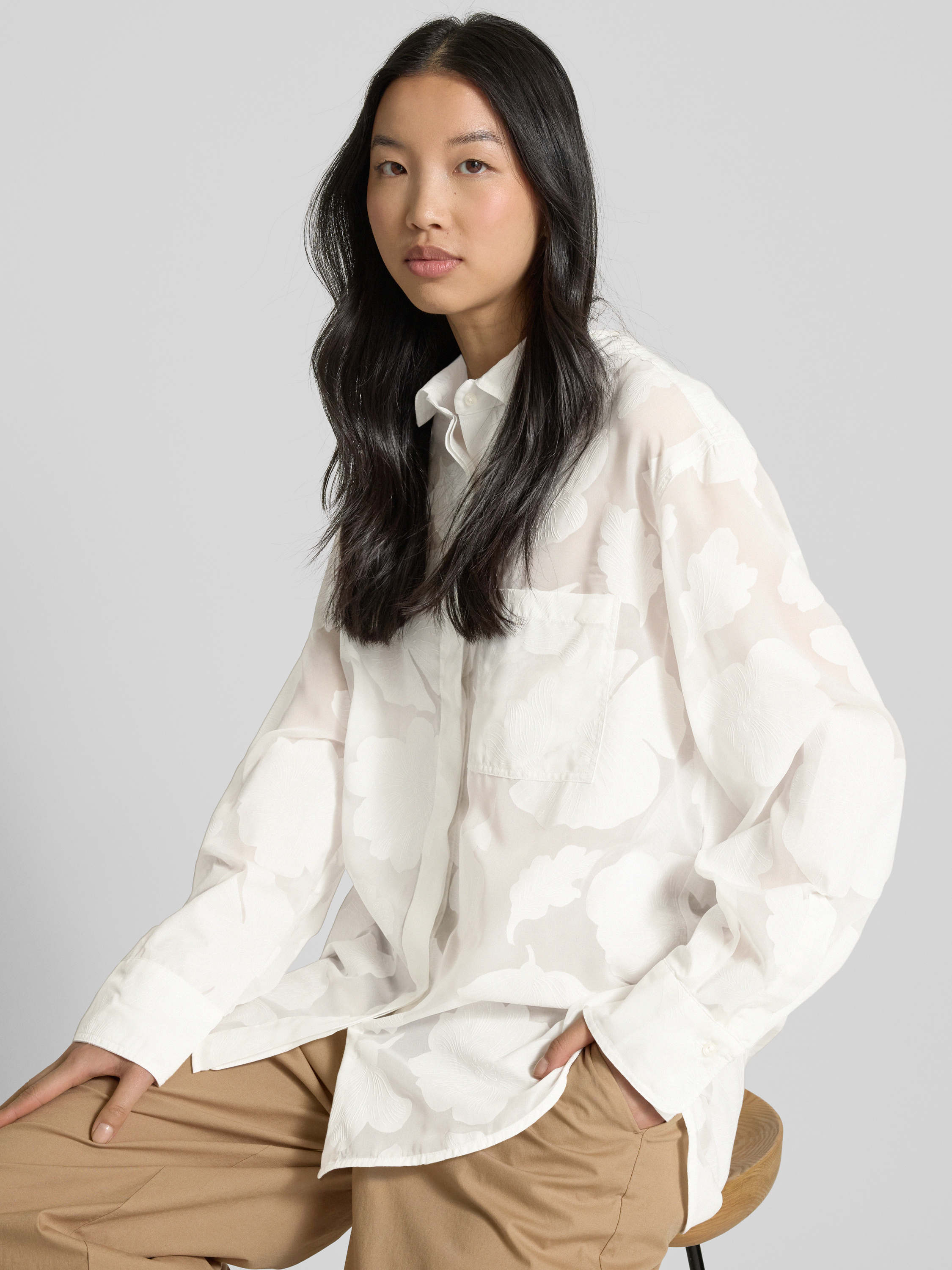 0039 ItalyHemdbluse mit Brusttasche Modell 'BECKY' in offwhite