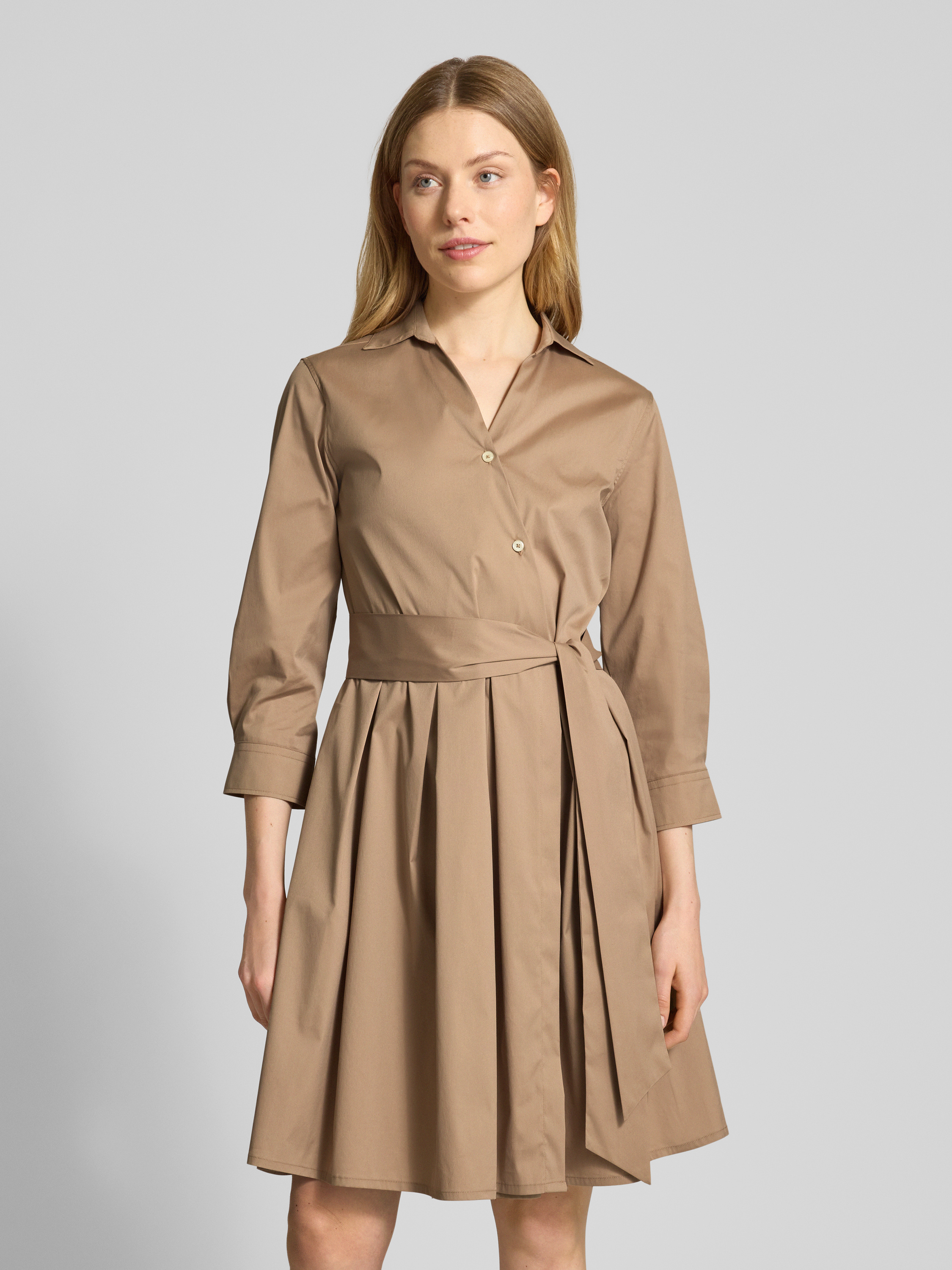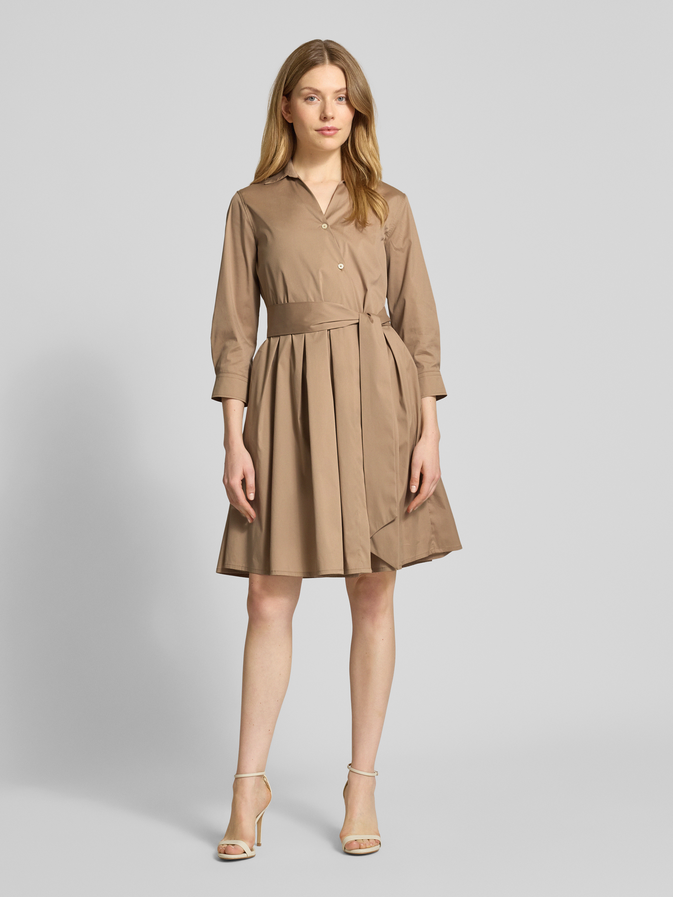 0039 ItalyKnielanges Hemdblusenkleid mit Bindegürtel Modell 'JULE' in camel