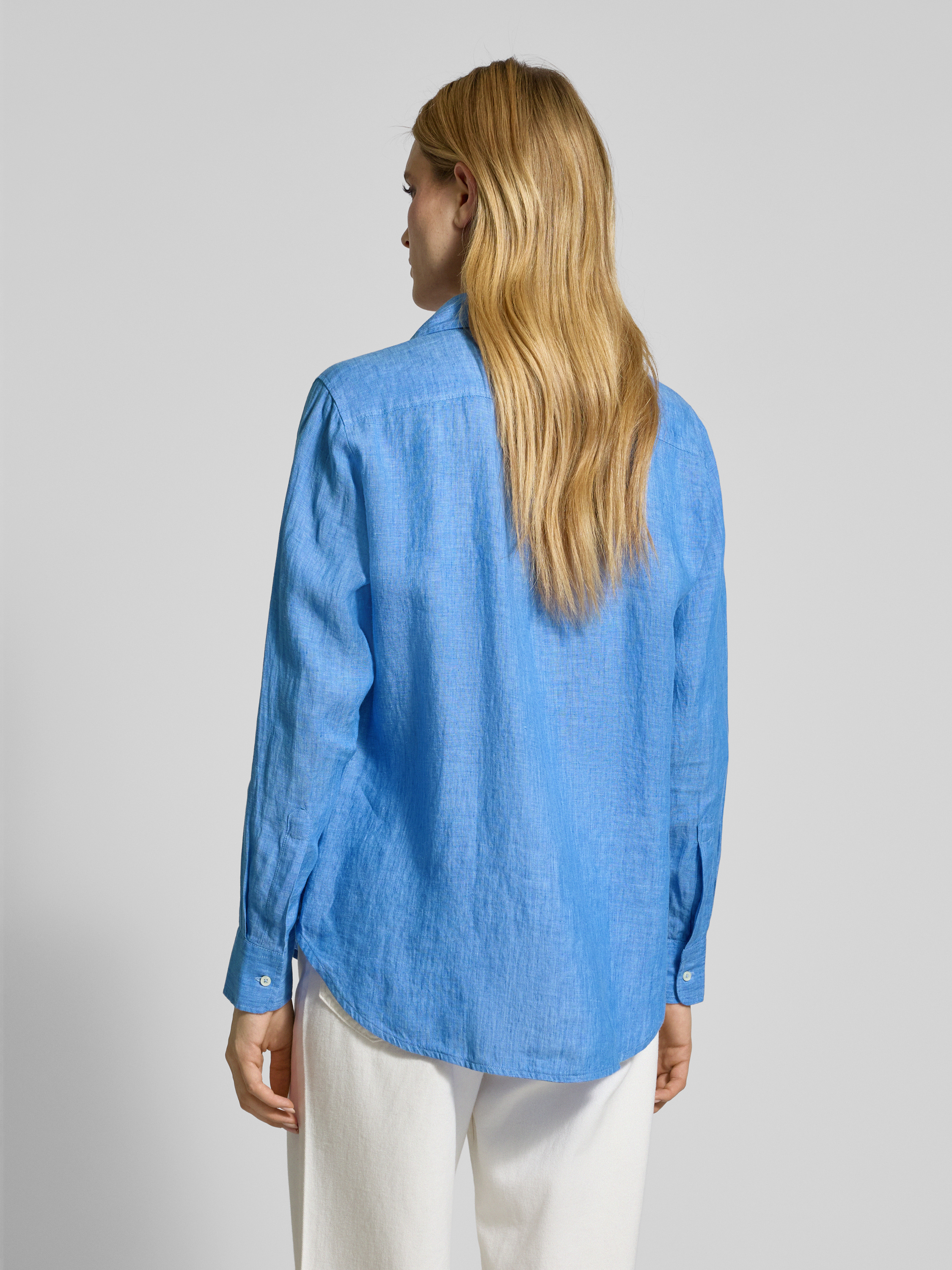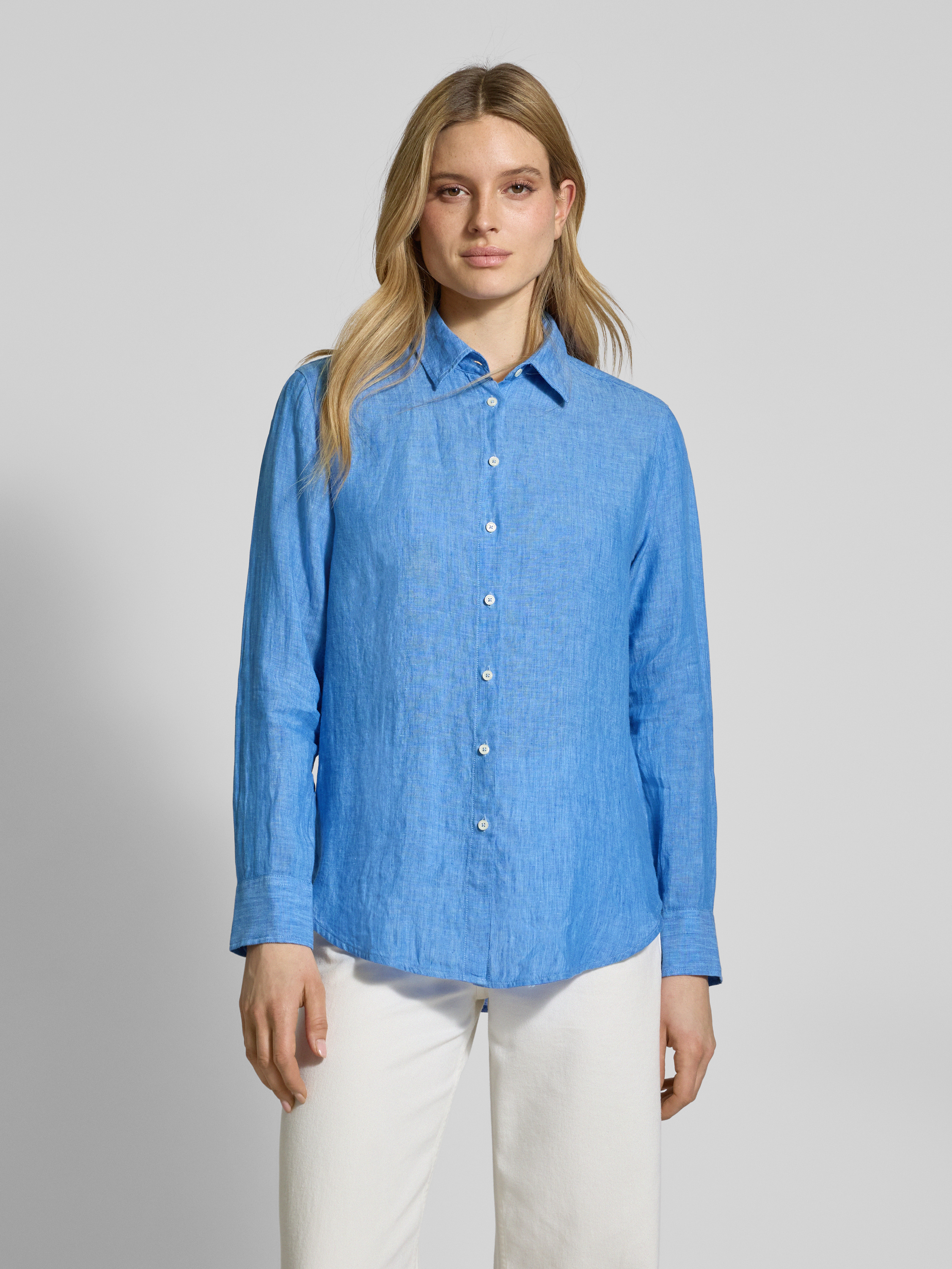 0039 ItalyRegular Fit Leinenhemdbluse mit durchgehender Knopfleiste in blau
