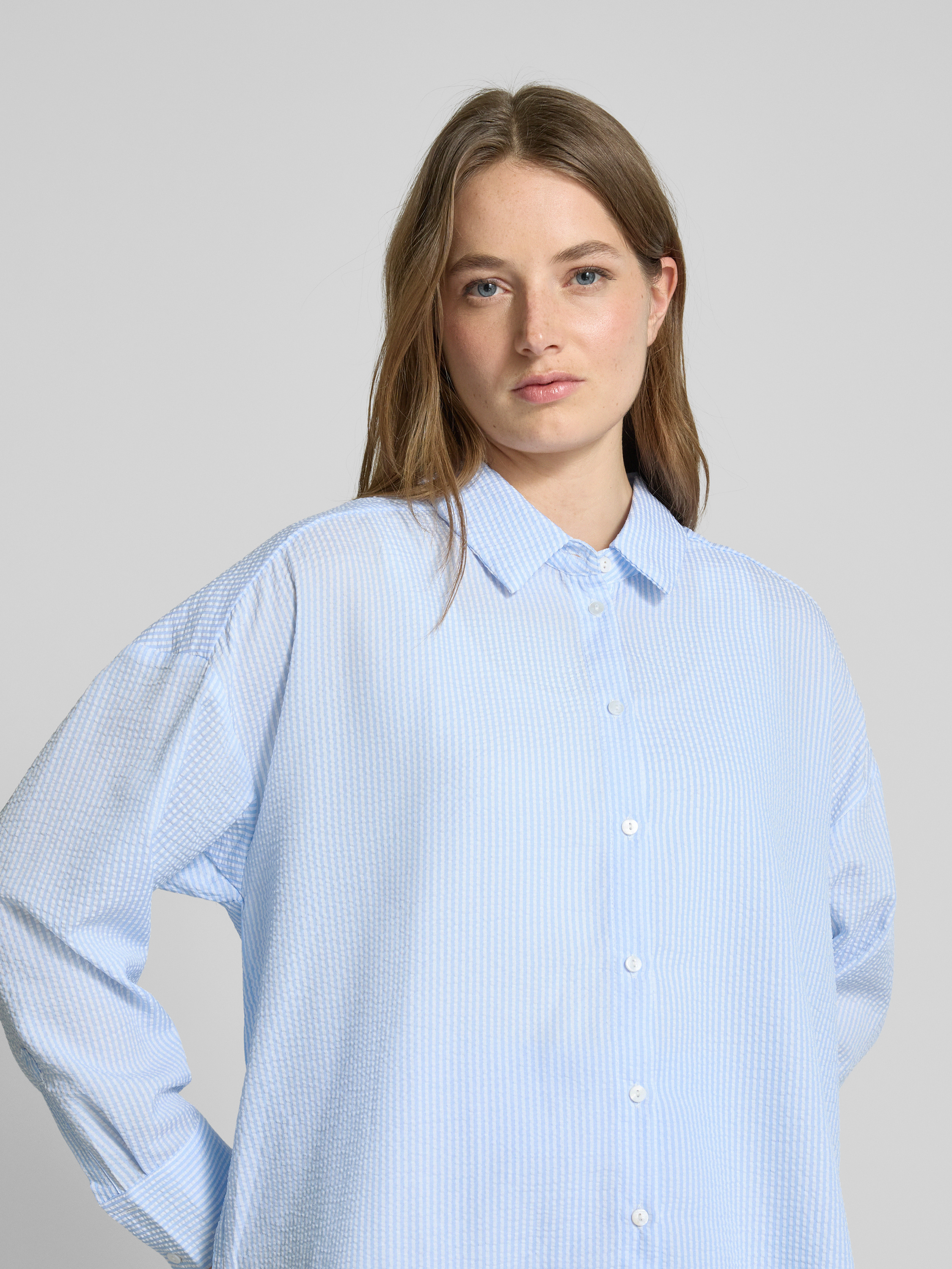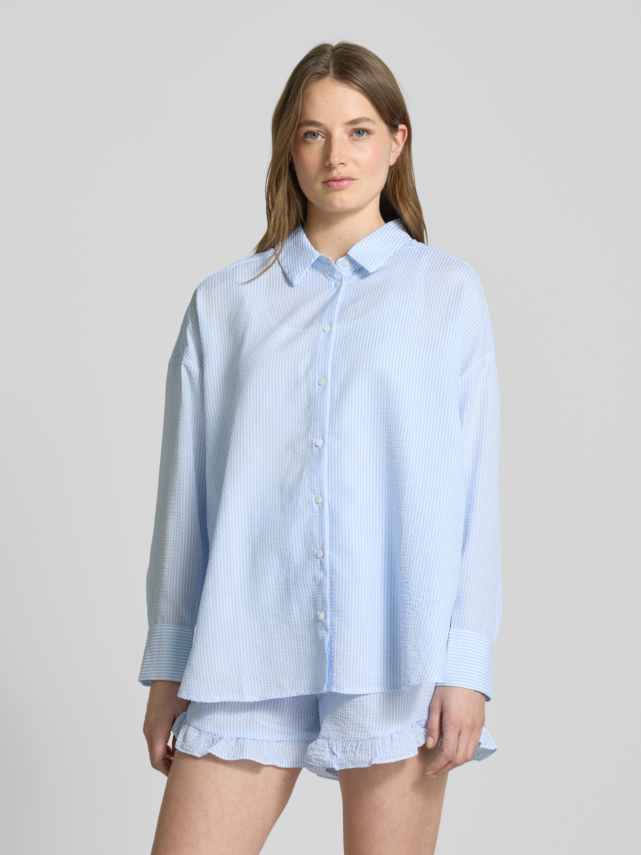 A-viewRegular Fit Hemdbluse mit Knopfleiste in hellblau
