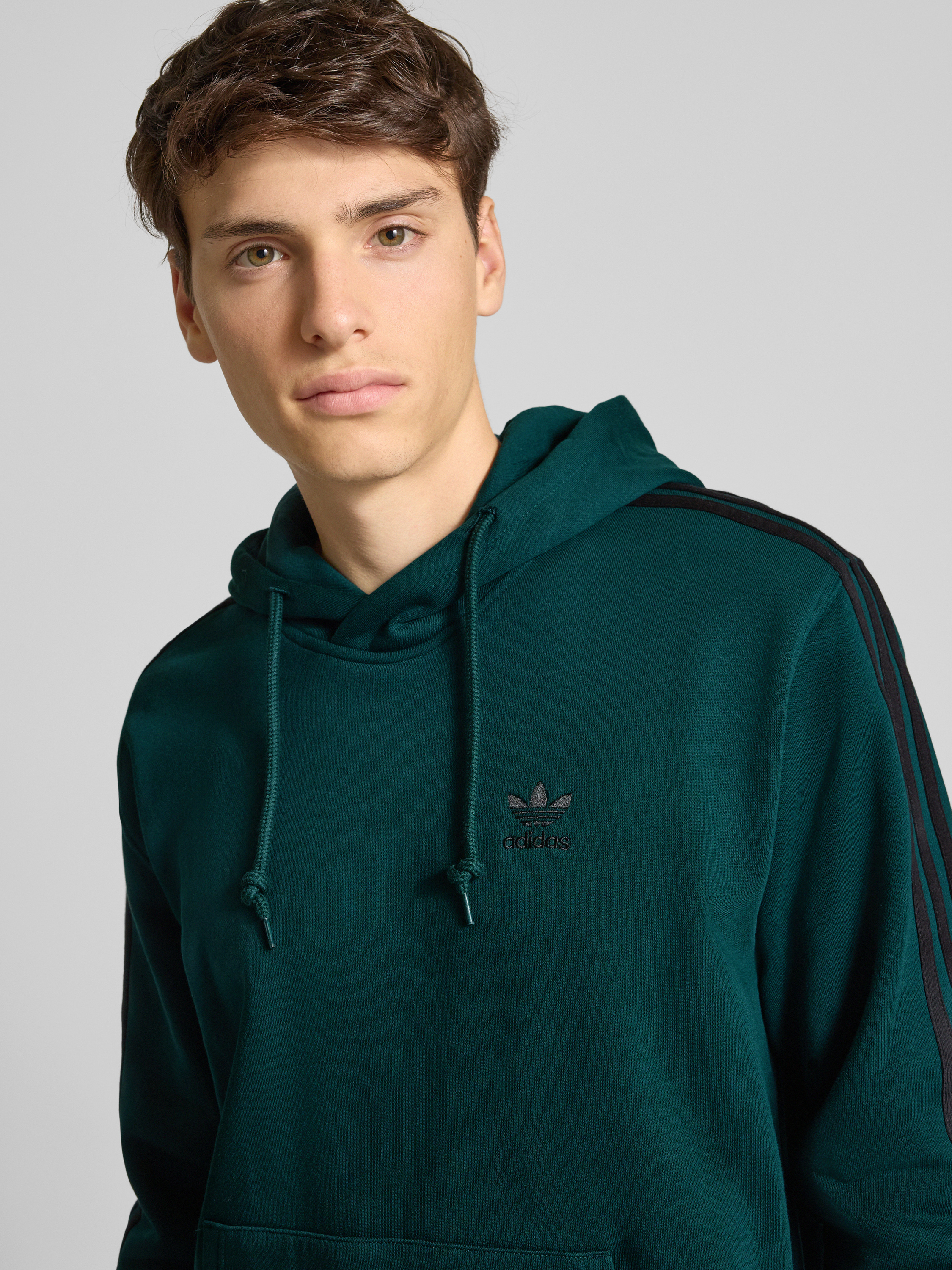 Der Herren Hoodie von adidas Originals im Regular Fit schmiegt sich angenehm an und lässt dank weichem Baumwoll-Mix Raum für Bewegung. Dezentes Logo-Stitching und galonierte Streifen setzen sportliche Akzente, während die Kapuze sowie die praktische Känguru-Tasche für zusätzlichen Komfort sorgen. So entsteht ein vielseitiges Kleidungsstück, das sich unkompliziert in den Alltag einfügt.