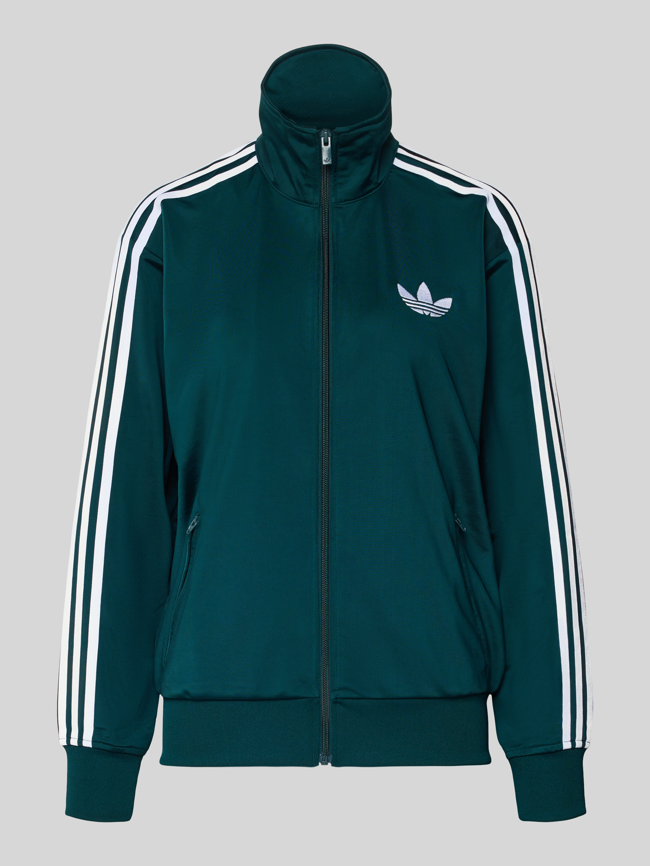 Die Sweatjacke von adidas Originals fällt durch ihren lockeren Schnitt angenehm lässig und unkompliziert aus, wodurch sie vielseitig einsetzbar ist. Ein Stehkragen sorgt dafür, dass man an kühleren Tagen zusätzlichen Schutz erhält. Das dezente Label-Stitching verleiht dem Look einen sportlichen Akzent, während Reißverschlusstaschen kleine Alltagsdinge sicher aufbewahren.