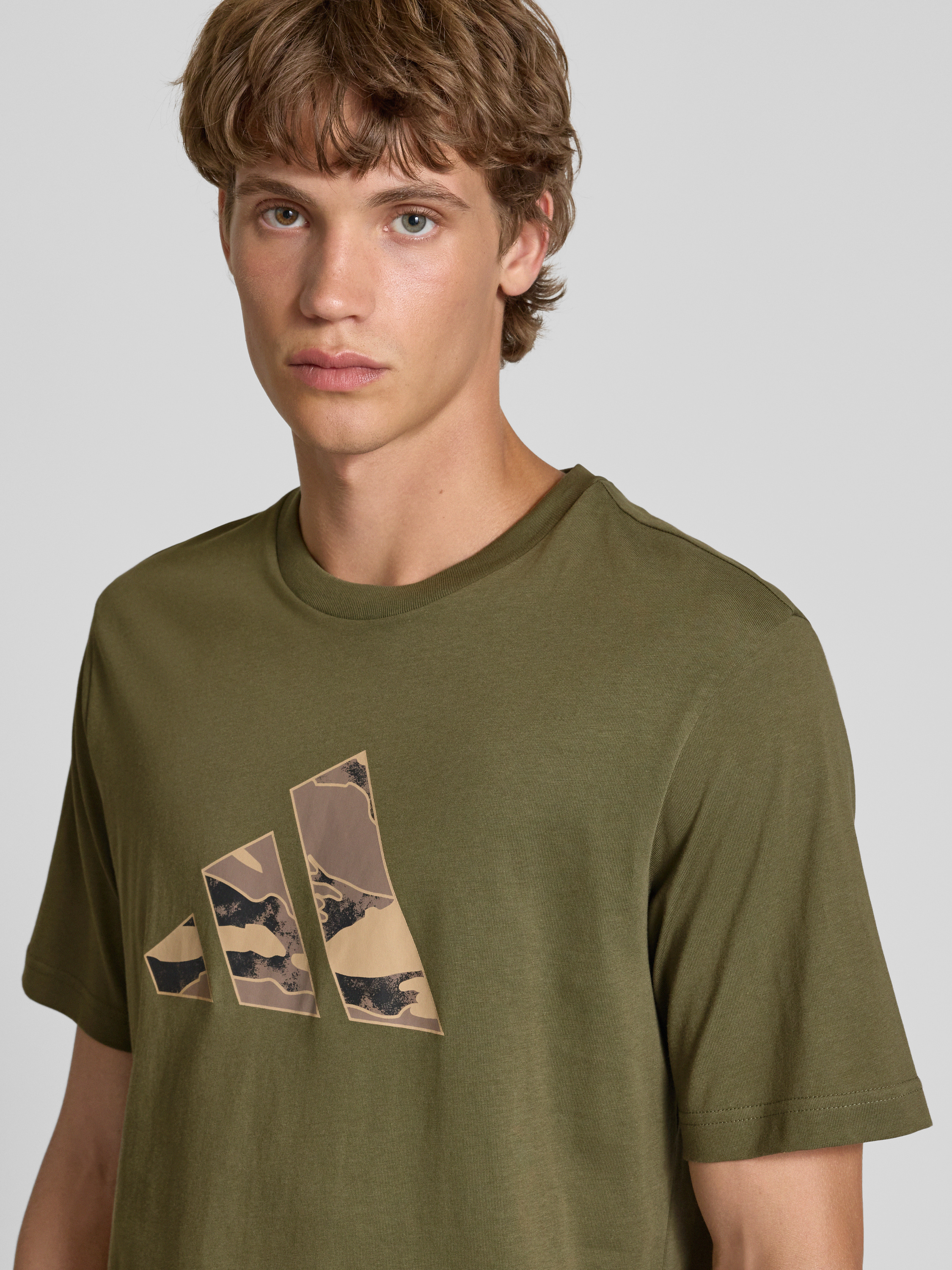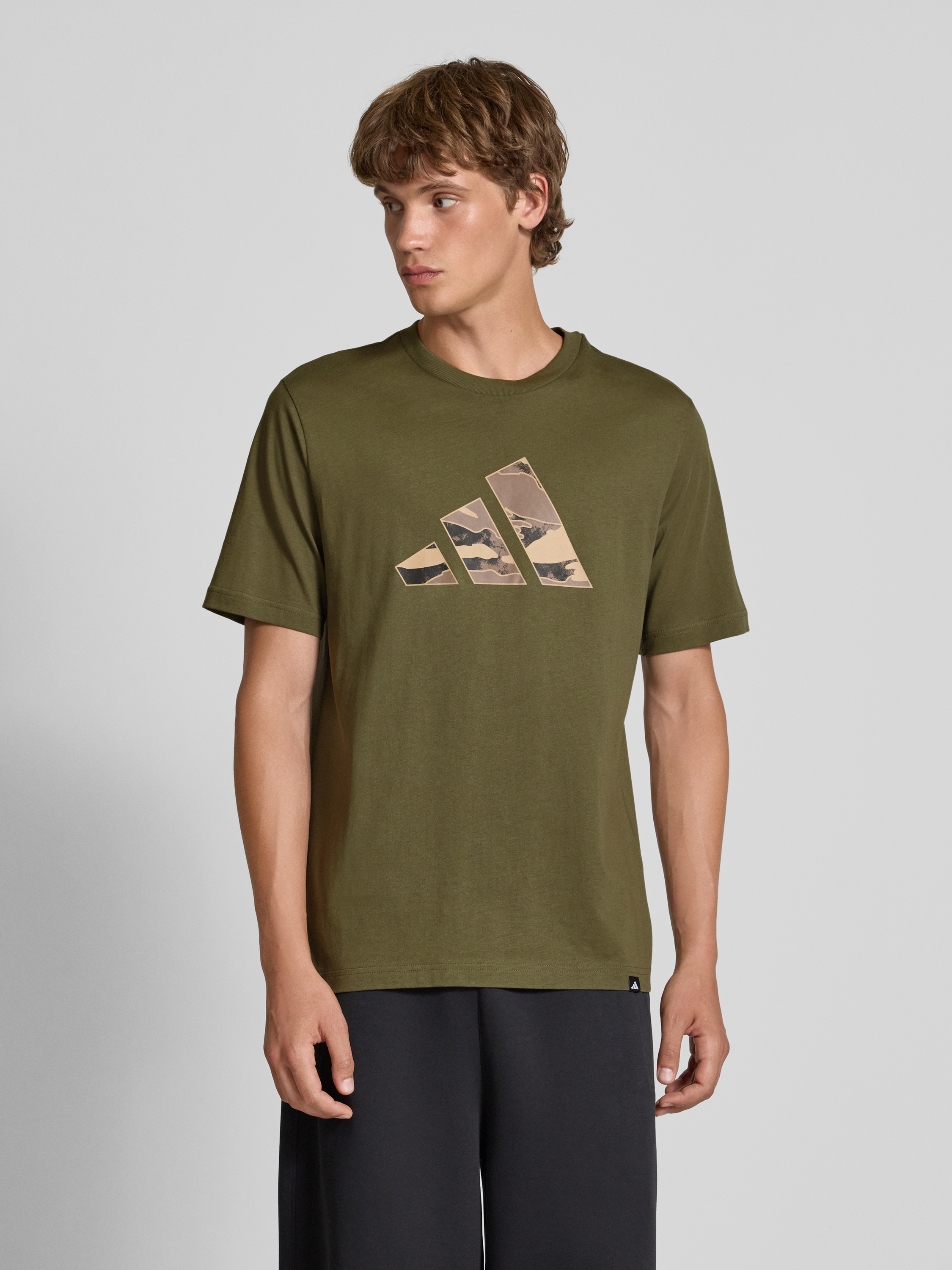 adidas SportswearRegular Fit T-Shirt aus reiner Baumwolle mit Logo-Print in oliv