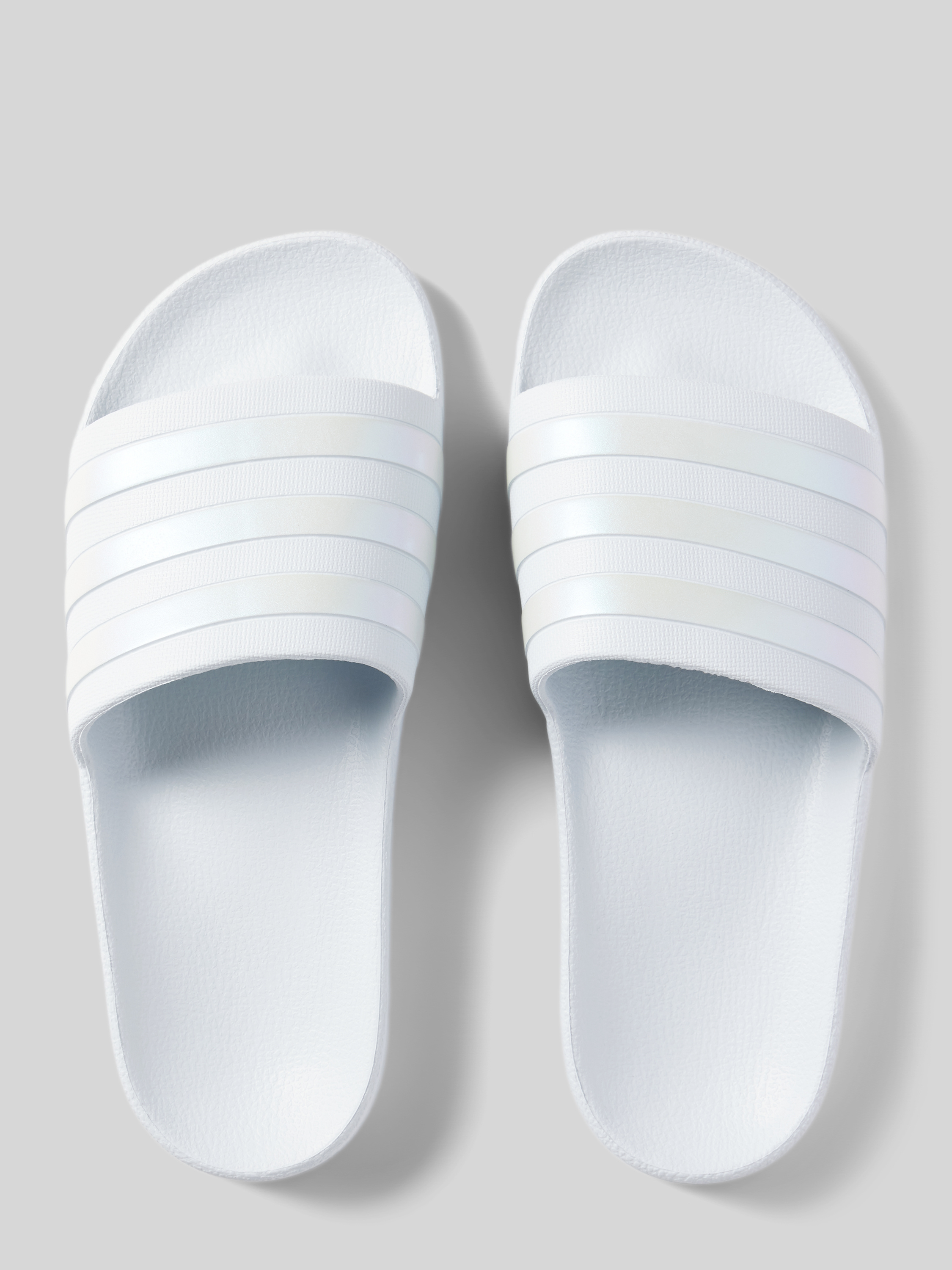 Die adidas Performance Slides 'ADILETTE AQUA' zeichnen sich durch eine abgerundete Spitze und das charakteristische Label-Detail aus. Die strukturierte Sohle bietet Komfort bei jedem Schritt. Mit den typischen Streifen ergänzt dieses Modell lässige Freizeitlooks auf stilvolle Weise.