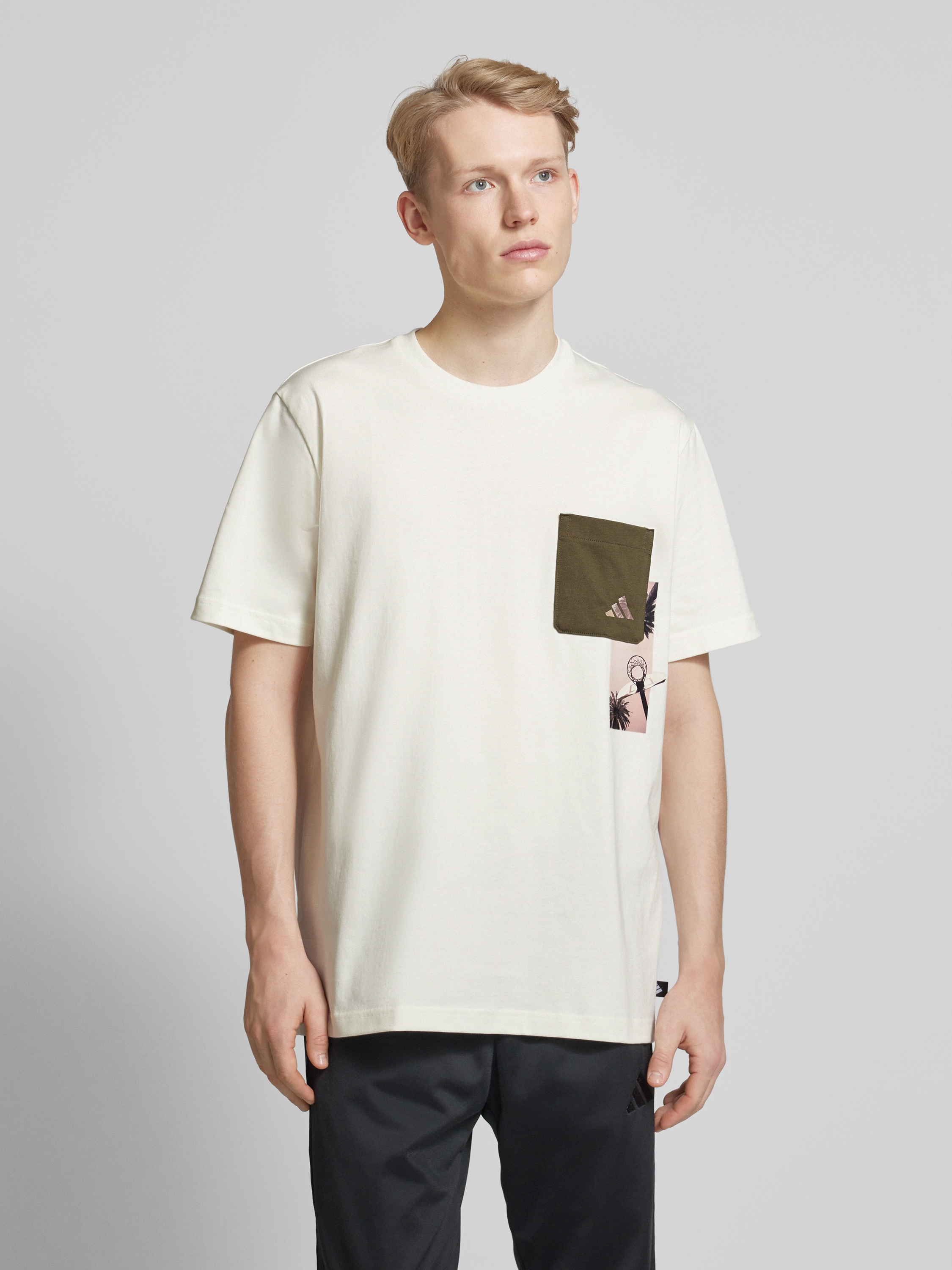 Das T-Shirt mit Label-Print Modell 'LENS' von adidas Performance kombiniert lässigen Komfort mit einem klaren Design. Aus reiner Baumwolle gefertigt, sorgt es für ein angenehmes Tragegefühl. Der gerade Schnitt und die aufgesetzte Brusttasche verleihen dem Rundhalsausschnitt eine zeitlose Note.