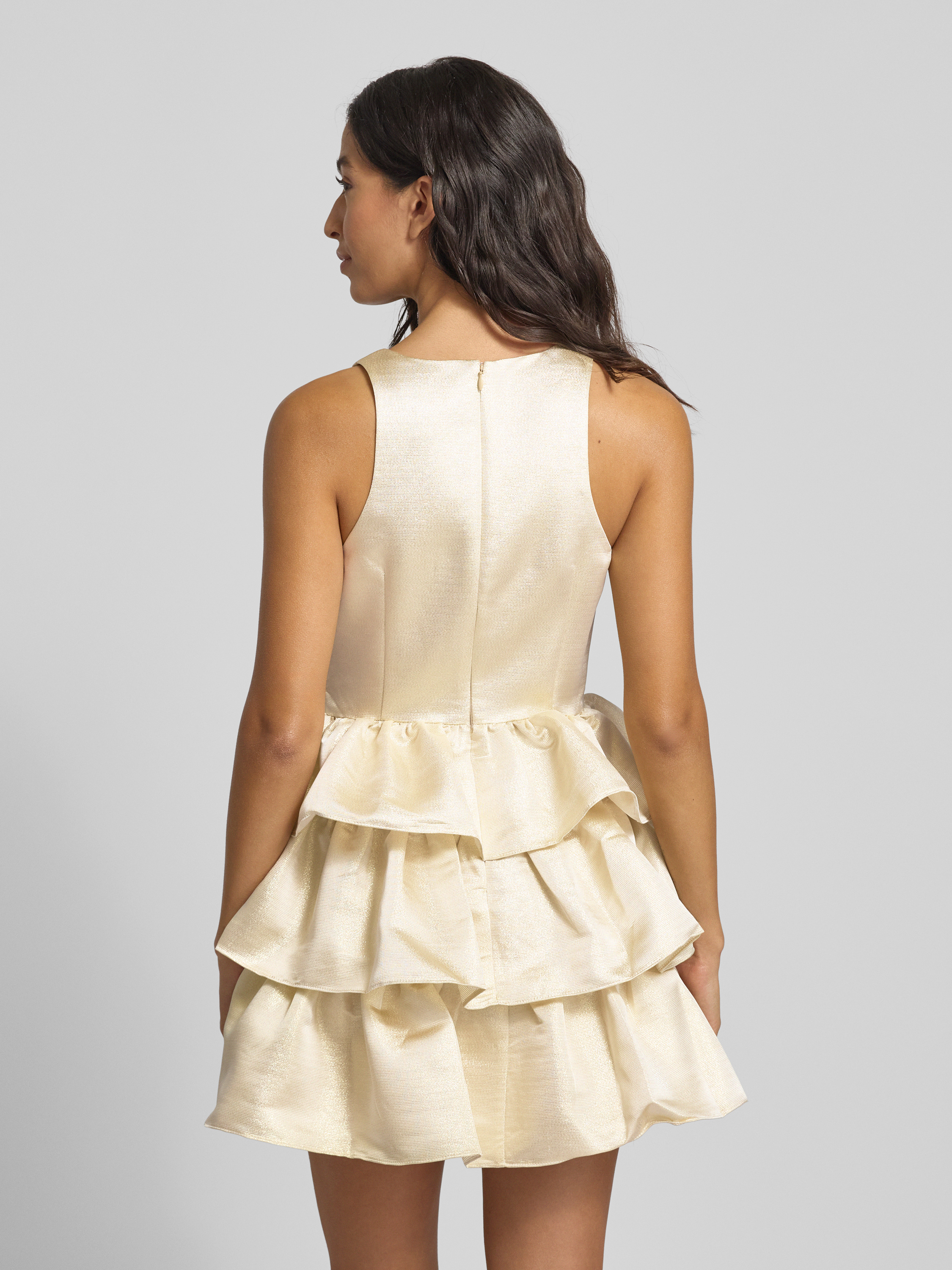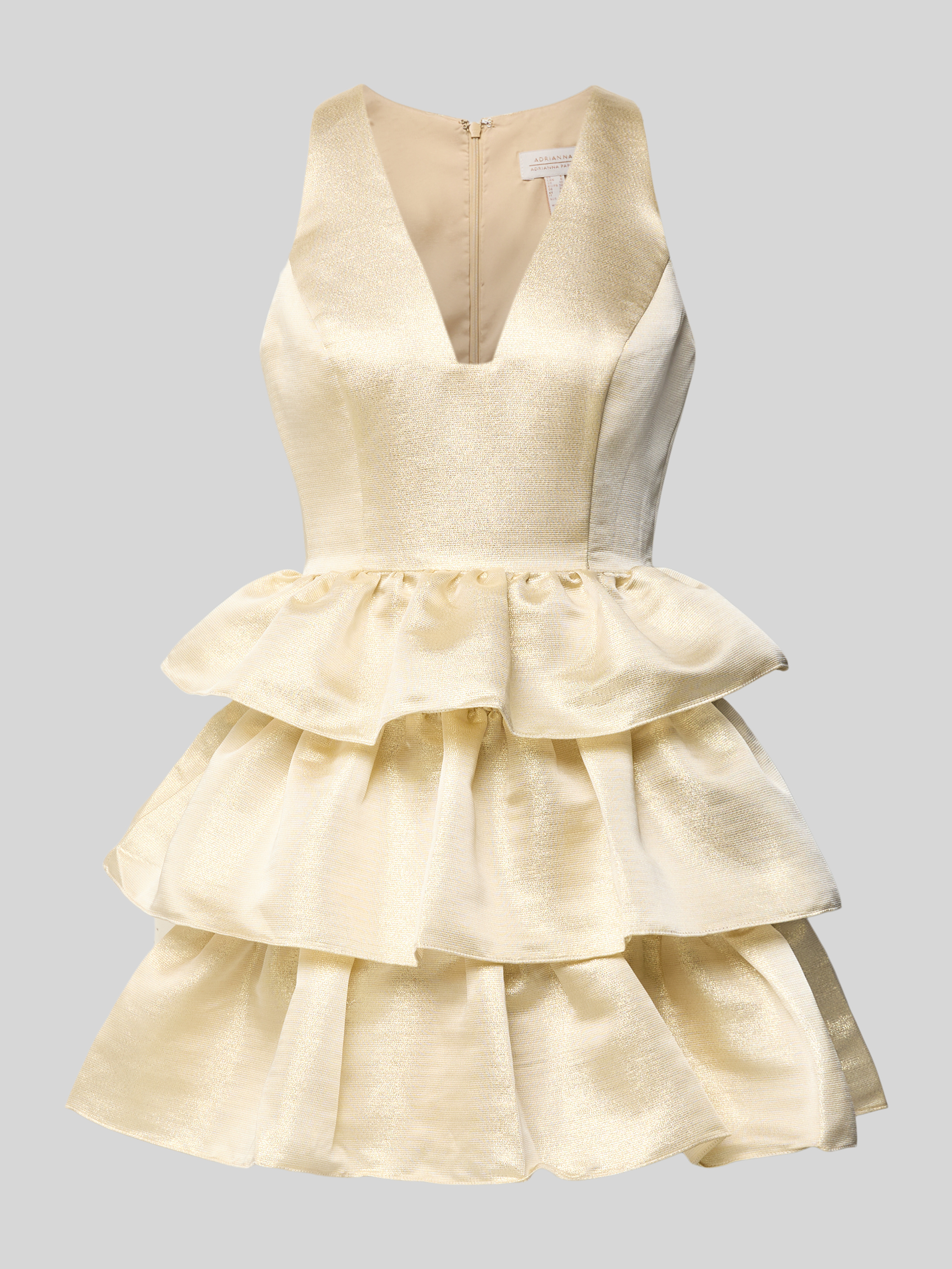 Das Damen Cocktailkleid von Adrianna Papell fällt durch seinen fließenden Stufen-Look und die A-Linie angenehm leicht. Durch den Satin entsteht ein dezenter Schimmer, der dem Minikleid einen eleganten Charakter verleiht. Ein V-Ausschnitt sorgt zusätzlich für eine moderne, feminine Ausstrahlung.