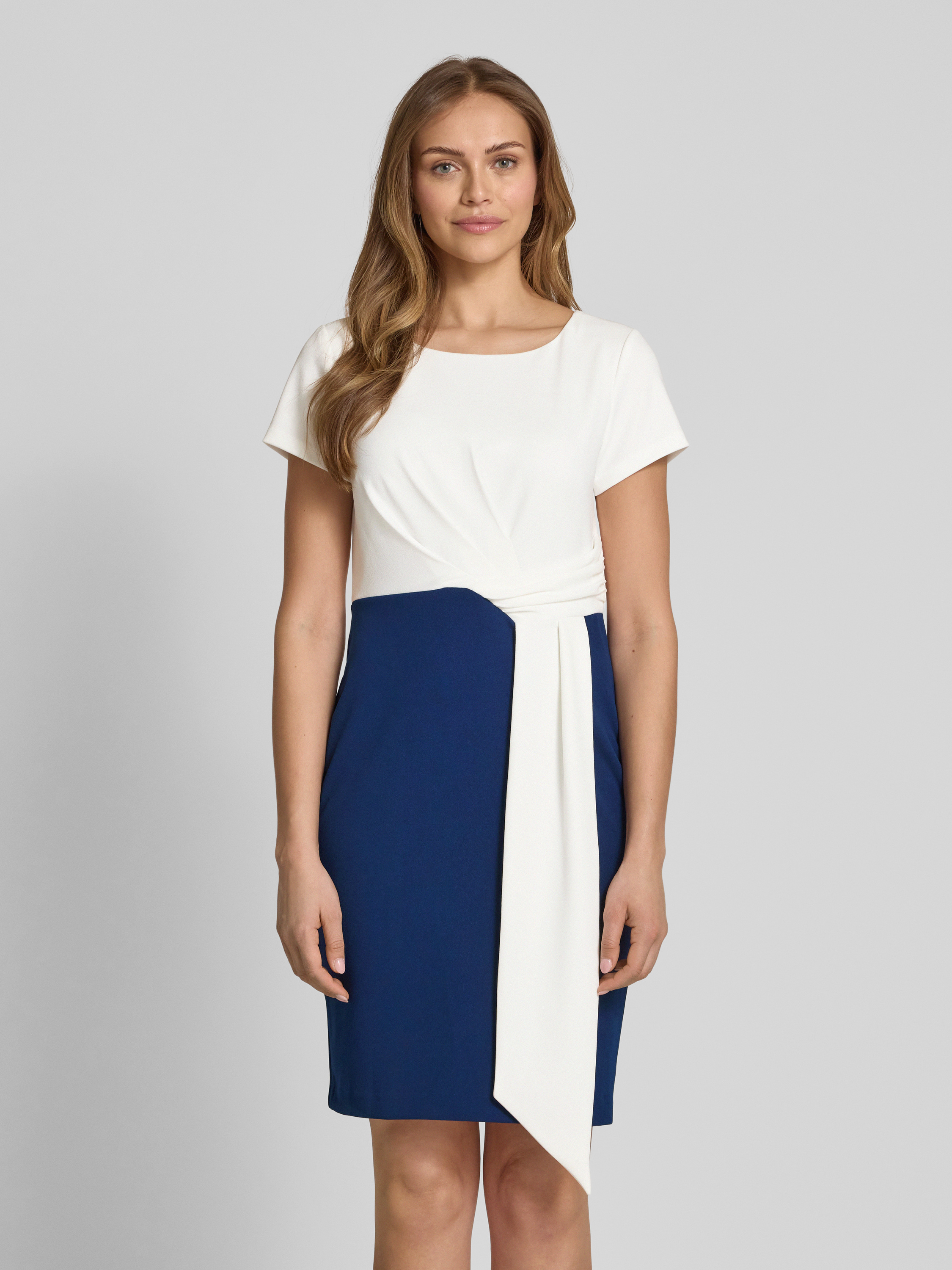 Das knielange Cocktailkleid von Adrianna Papell vereint elegantes Design mit Tragekomfort. Der taillierte Schnitt und die gelegten Falten schaffen eine ansprechende Silhouette, während der Stretch-Anteil für Bewegungsfreiheit sorgt. Der Rundhalsausschnitt rundet das stilvolle Gesamtbild harmonisch ab.