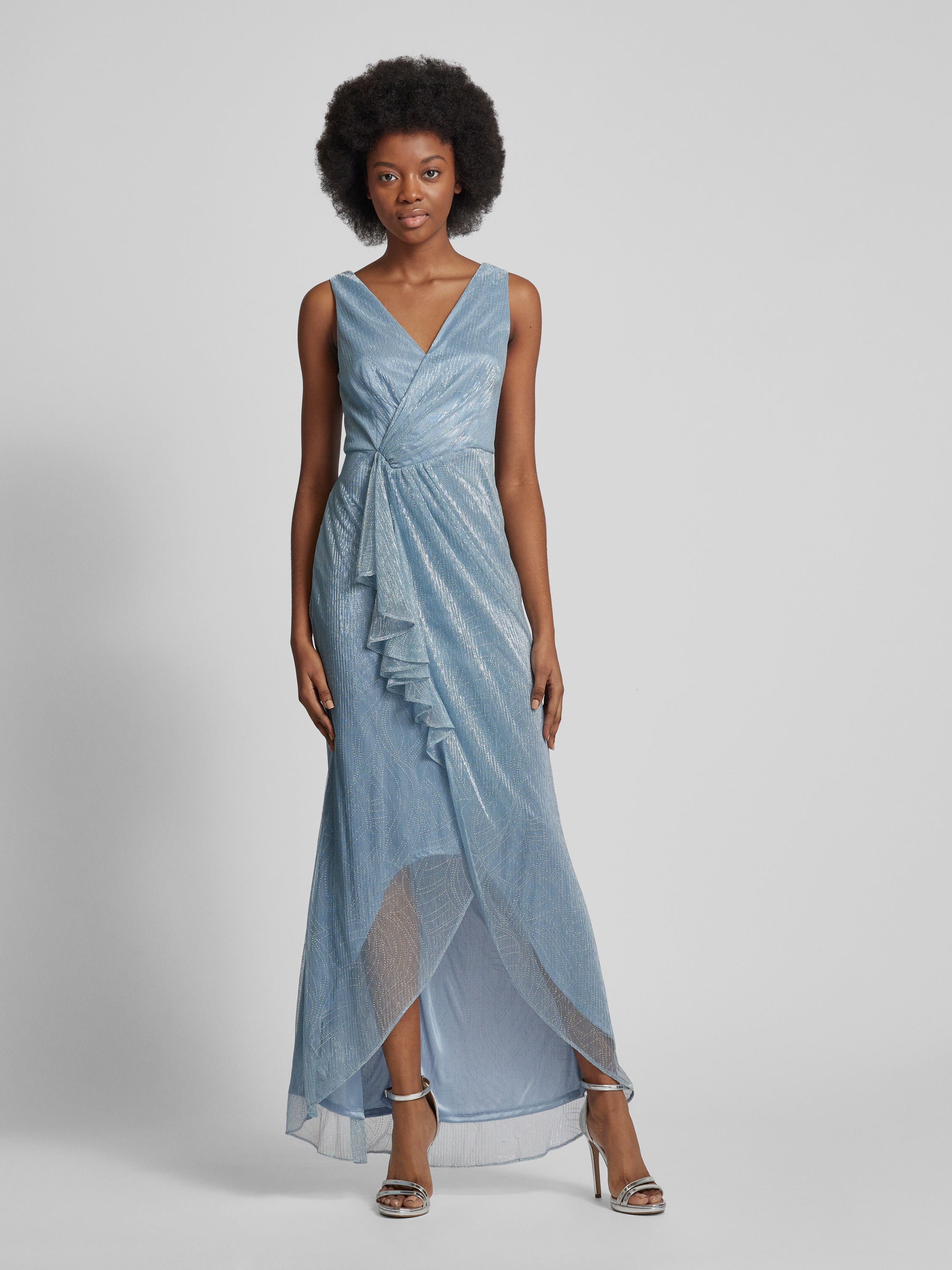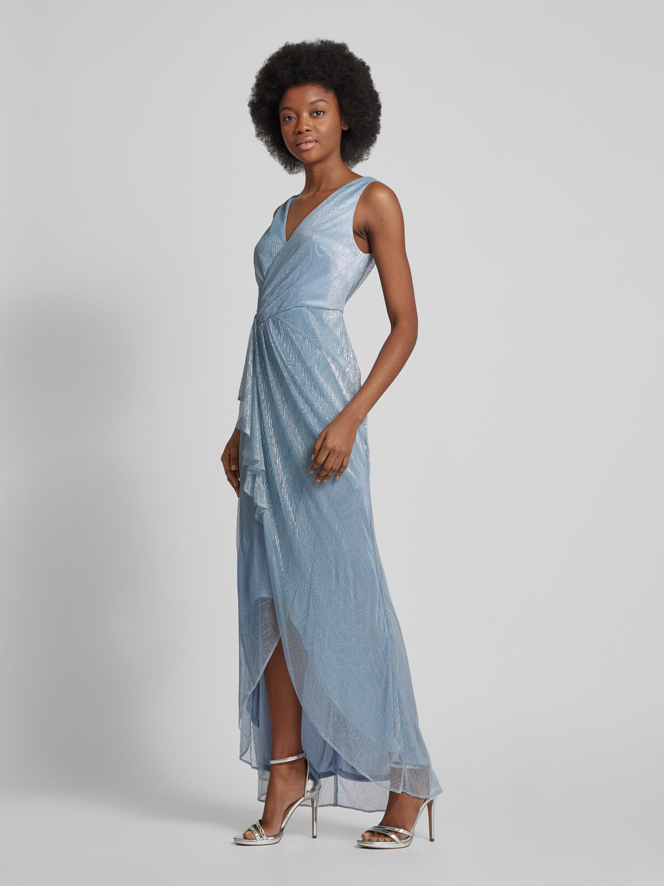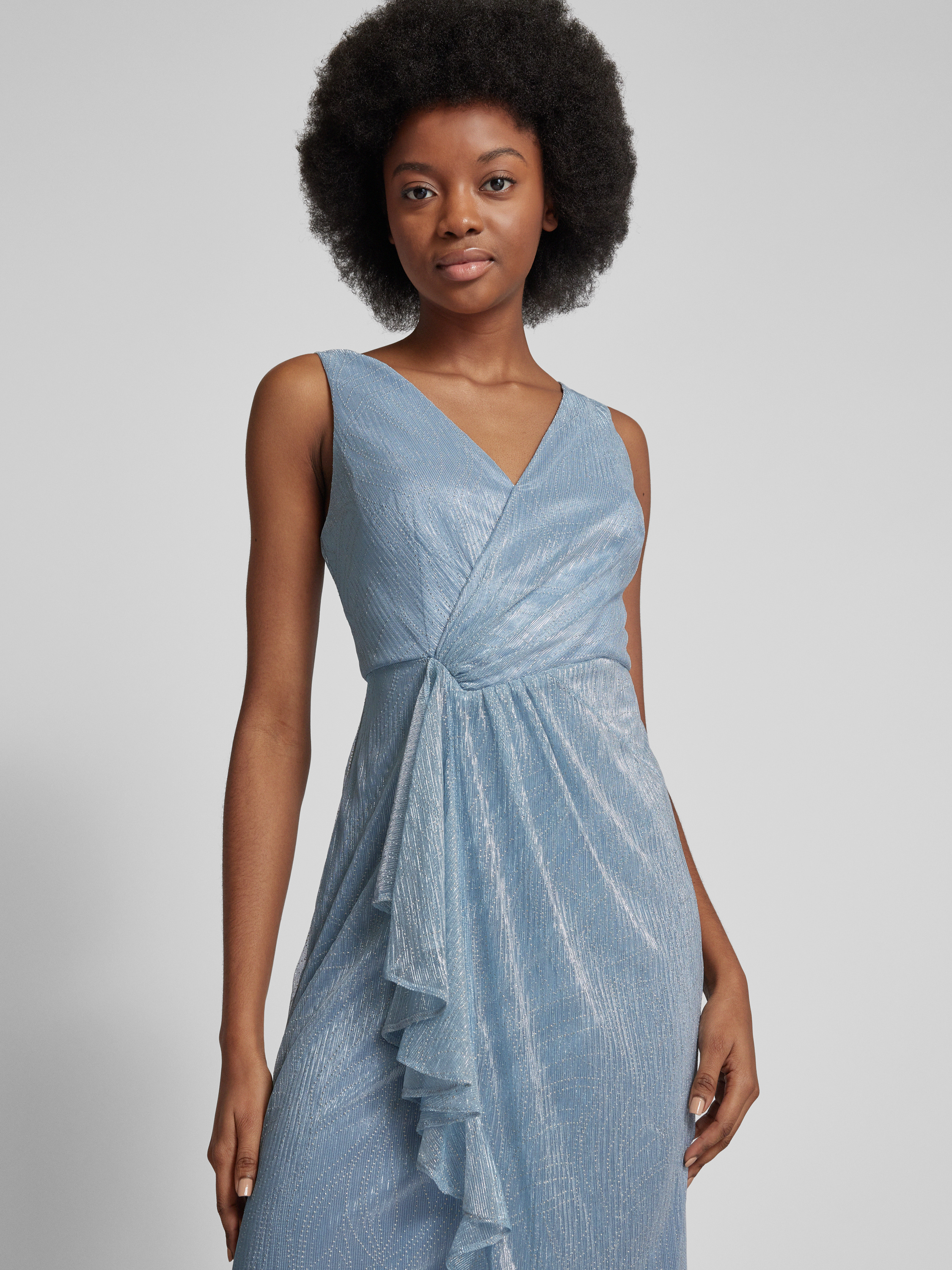 Das elegante Maxikleid von Adrianna Papell in Wickel-Optik vereint einen schmeichelhaften, taillierten Schnitt mit einem V-Ausschnitt, der dem unifarbenen Design eine raffinierte Note verleiht. Durch den fließenden Stoff fällt es besonders schön und eignet sich ideal für besondere Anlässe.