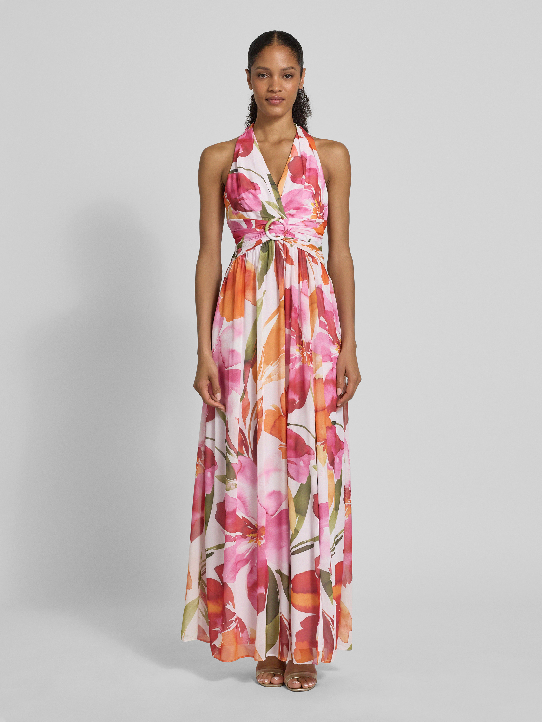 Das Maxikleid von Adrianna Papell besticht durch seinen taillierten Schnitt, der die Silhouette schmeichelhaft betont. Ein V-Ausschnitt sorgt für eine elegante Note, während das Taillenband eine dezente Akzentuierung ermöglicht. Ideal für besondere Anlässe bietet es eine stilvolle und komfortable Wahl.