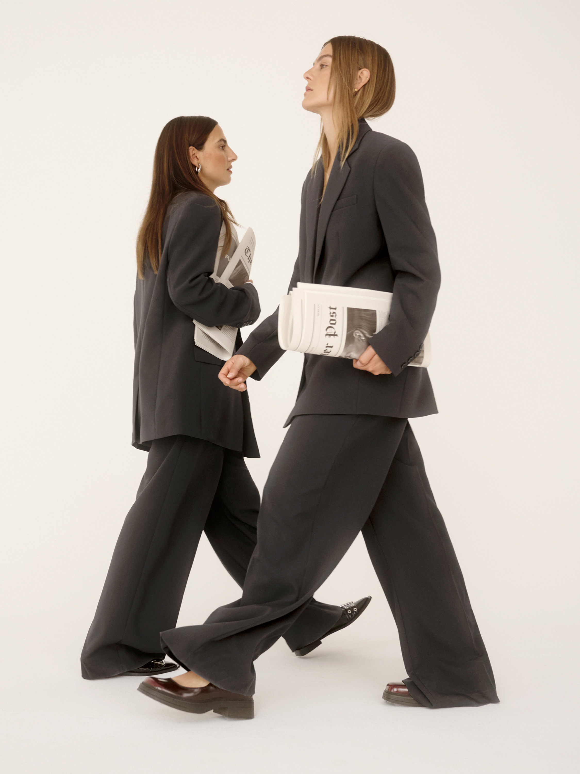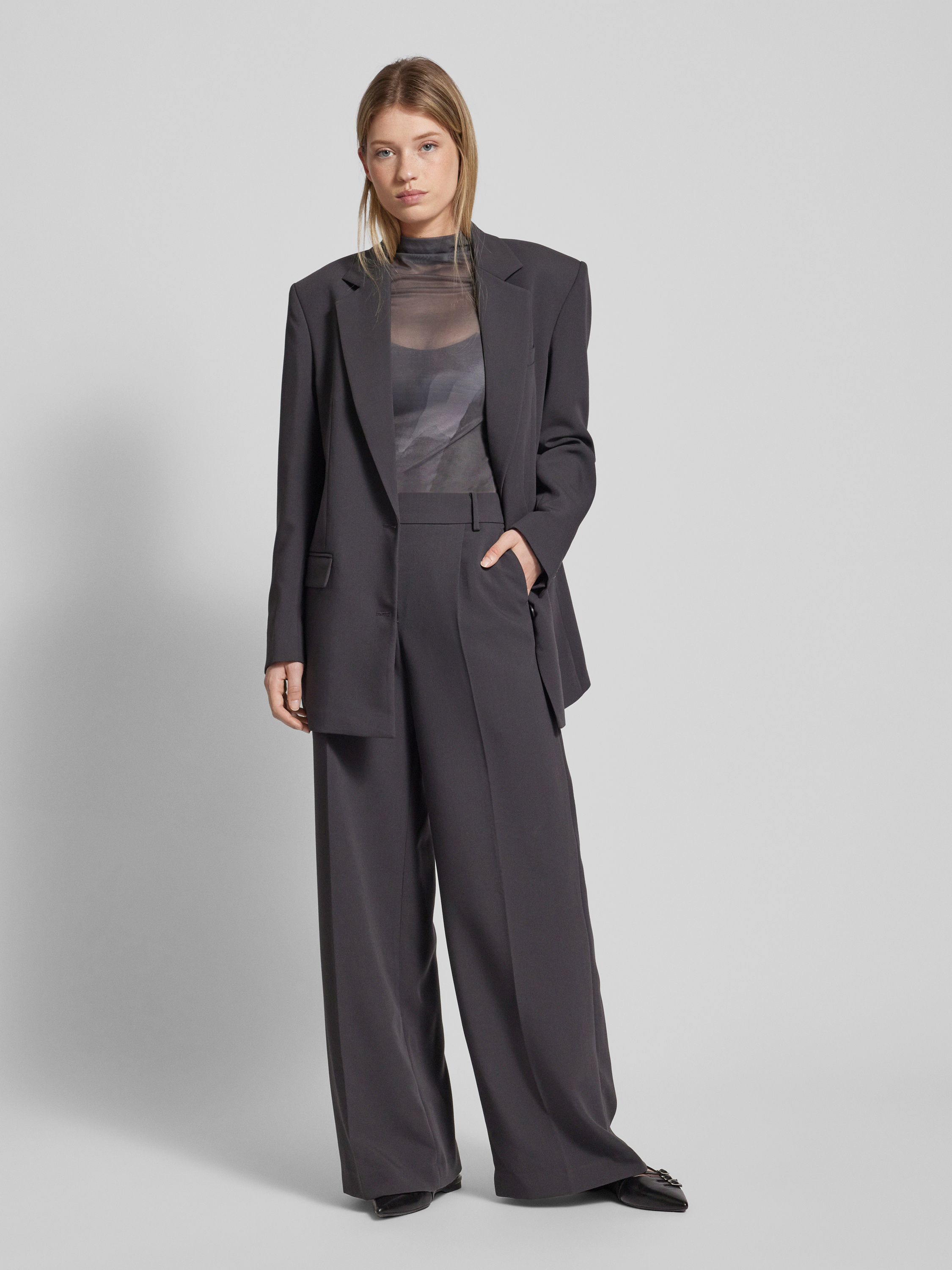 Alessa&Anna Winter X P&C*Wide Leg Stoffhose mit Bundfalten in anthrazit