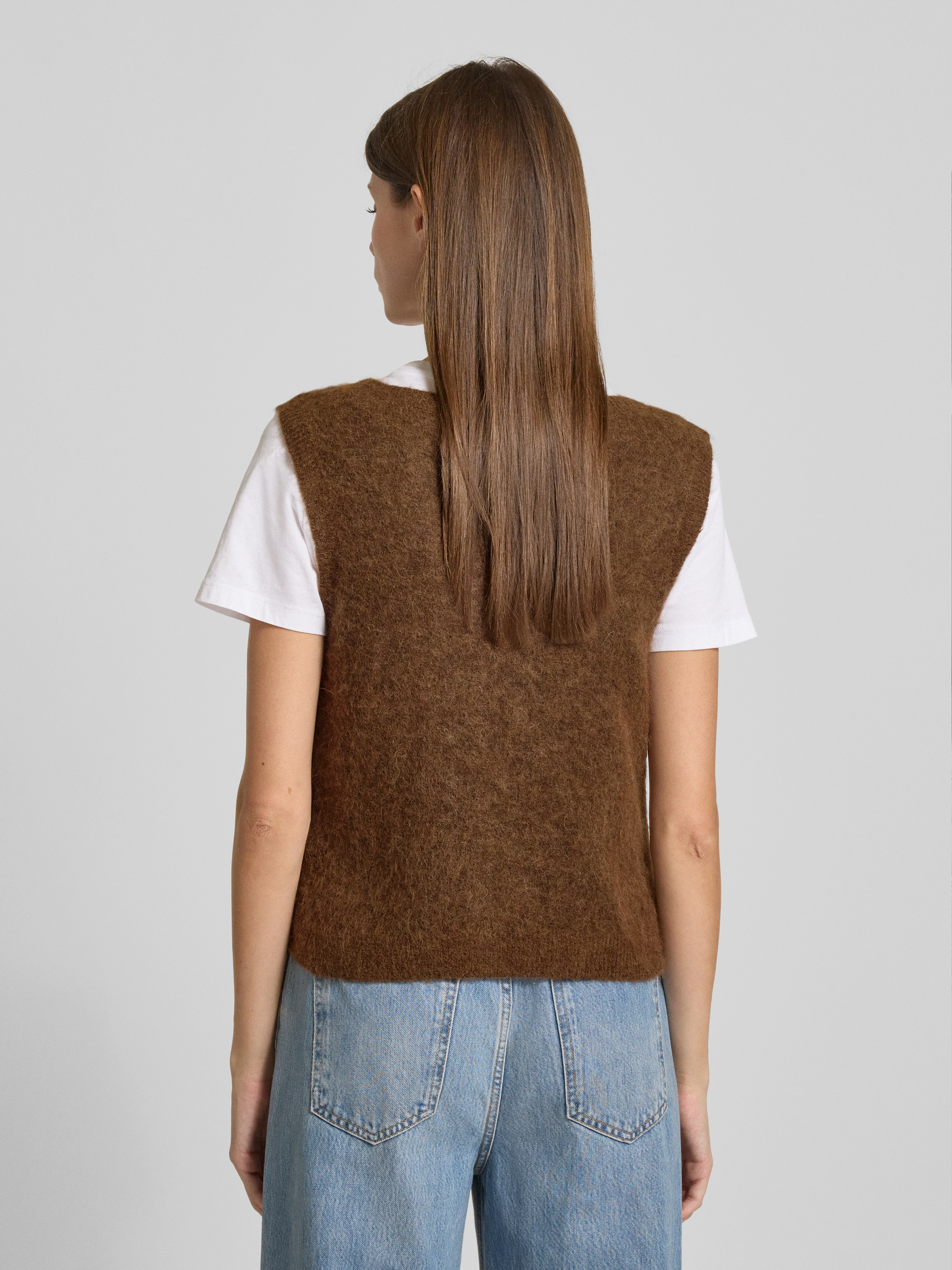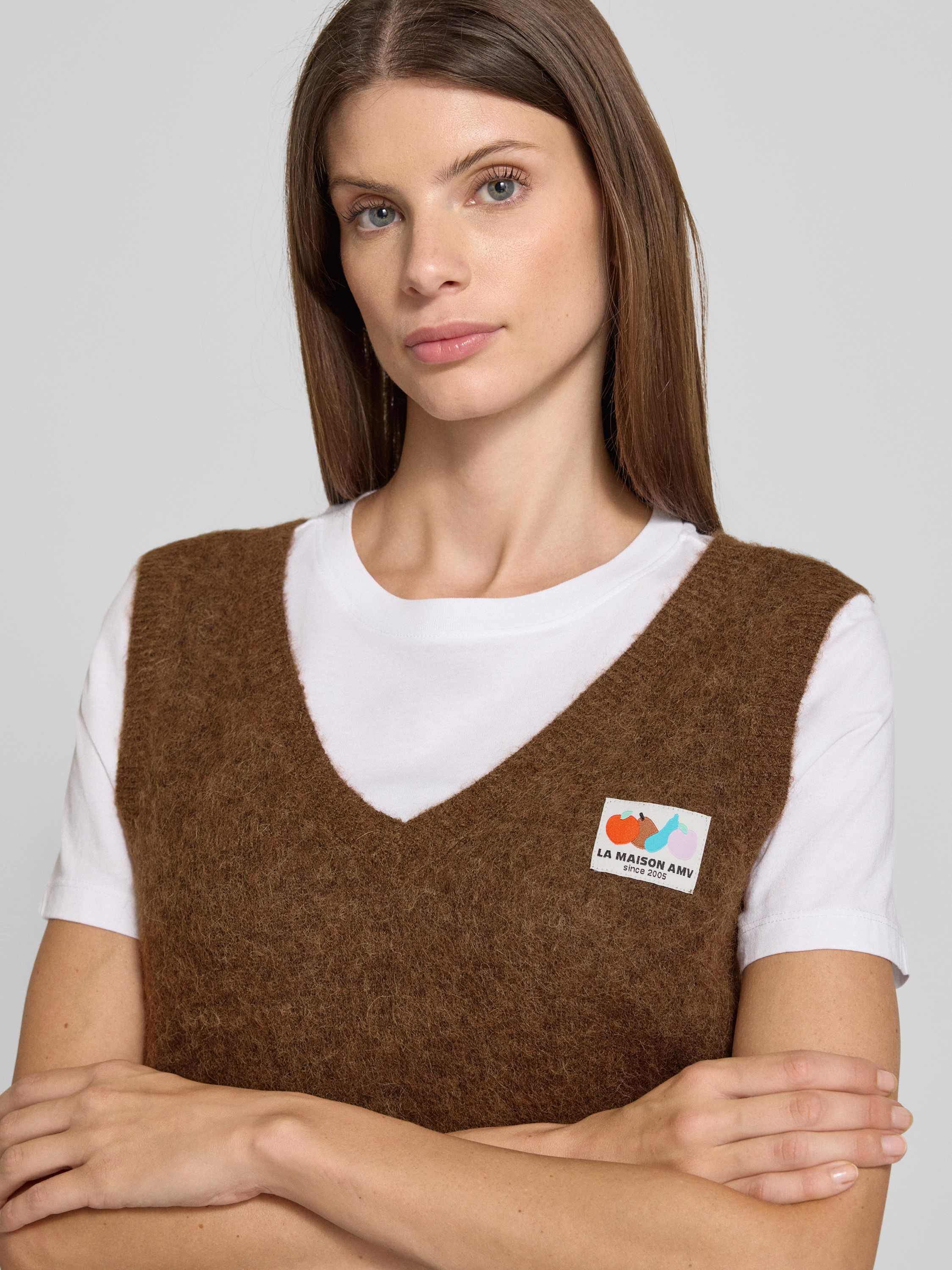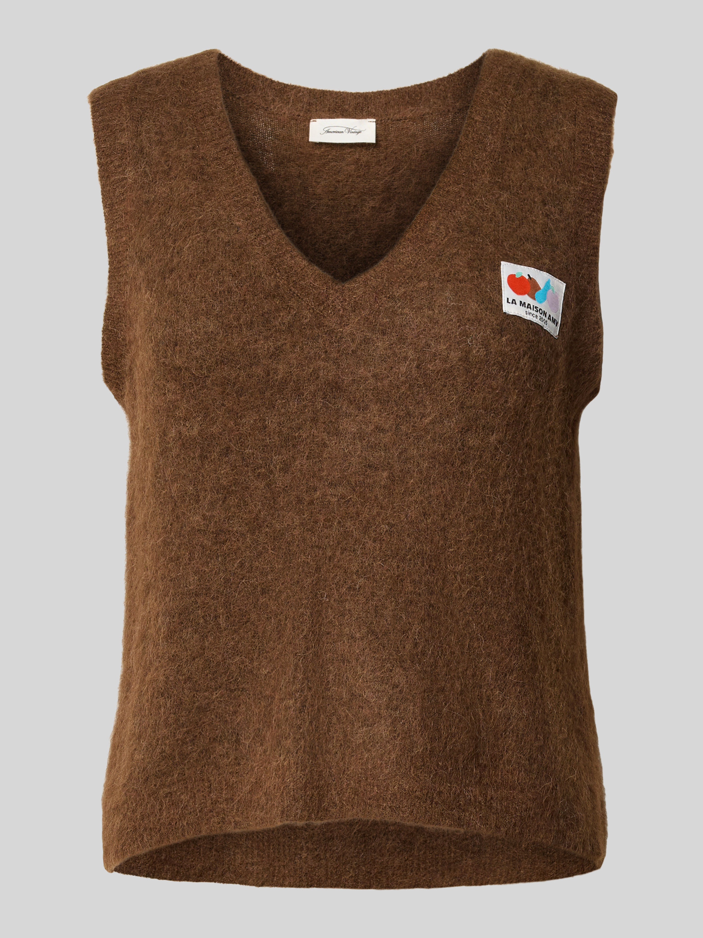 Der Pullunder von American Vintage im Modell NENYBAY legt den Fokus auf einen Alpaka-Mix, der angenehm leicht auf der Haut liegt. Durch den Regular Fit und den V-Ausschnitt entsteht ein vielseitiger Look, der sich mühelos kombinieren lässt. Dezente Details sorgen für eine moderne Ausstrahlung.