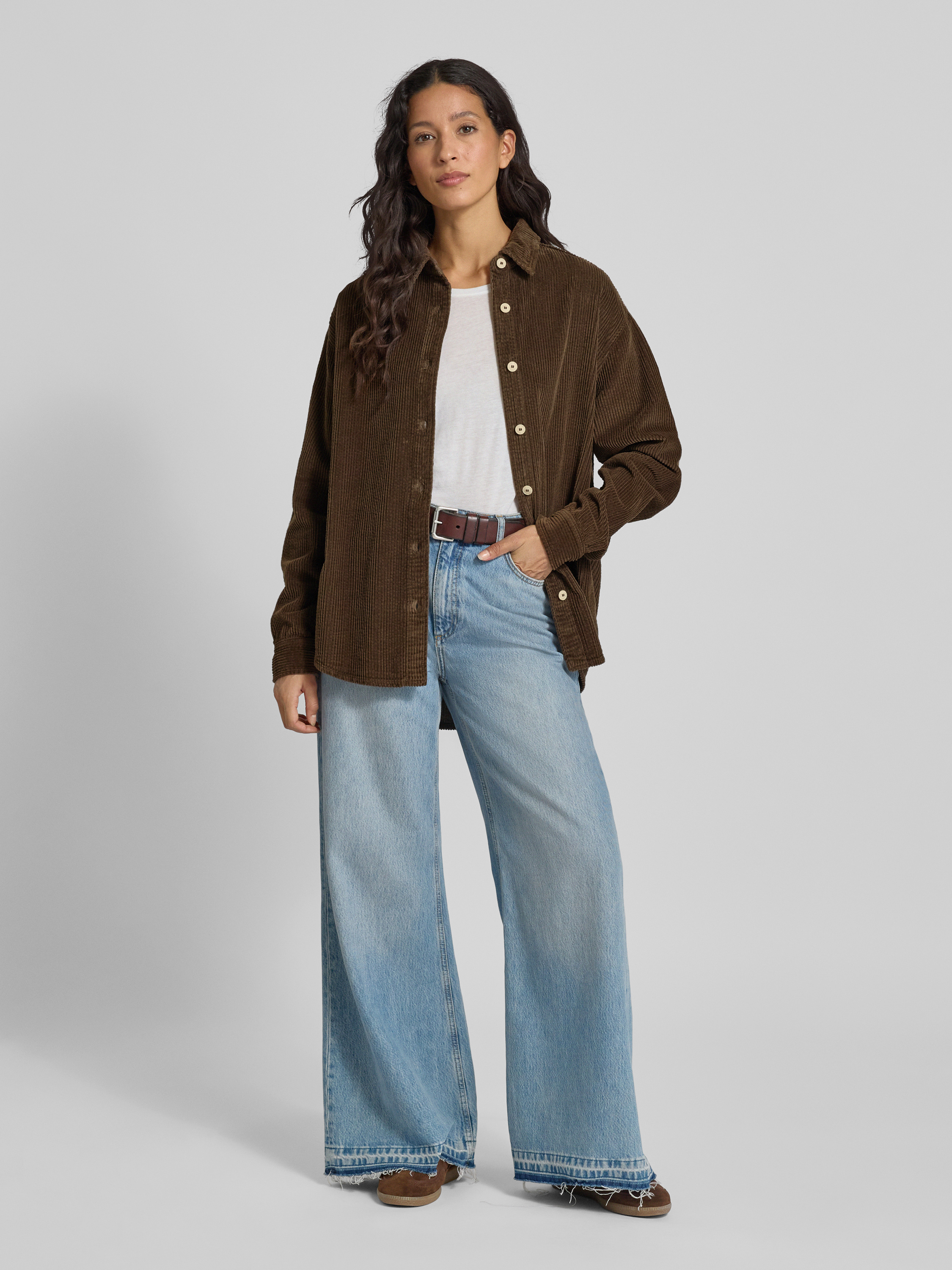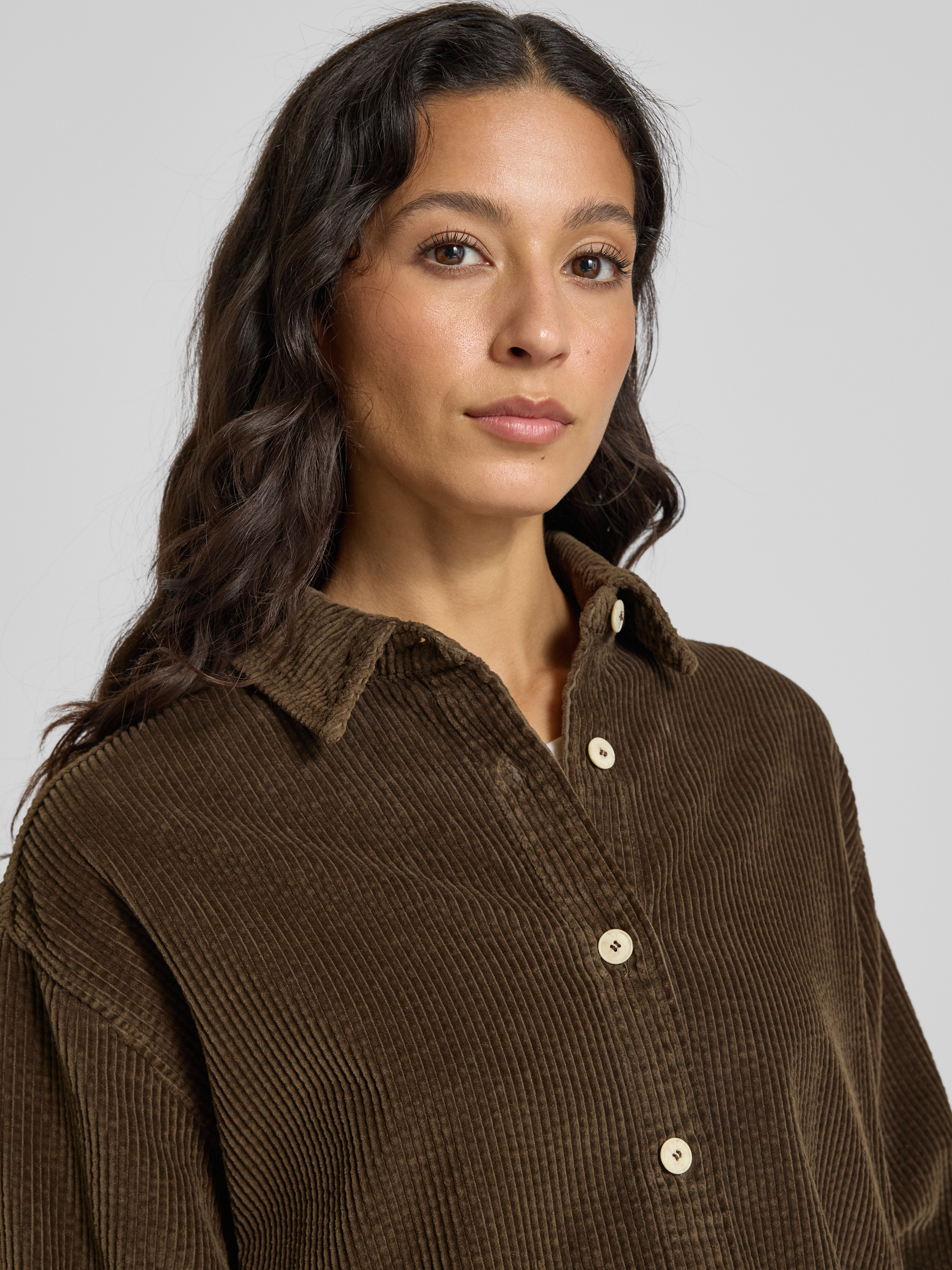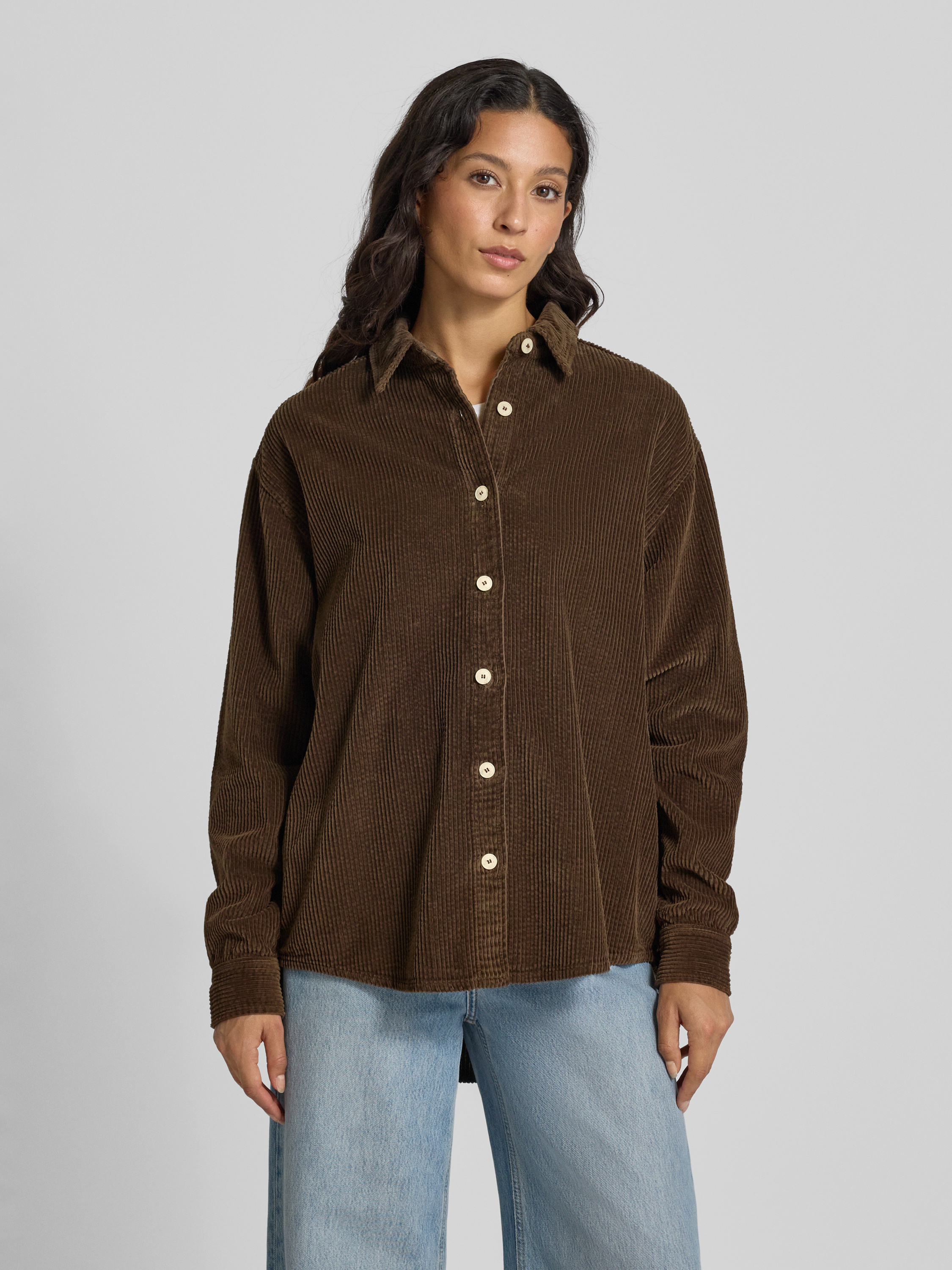 American VintageRelaxed Fit Hemdbluse aus Cord Modell 'PADOW' in schoko