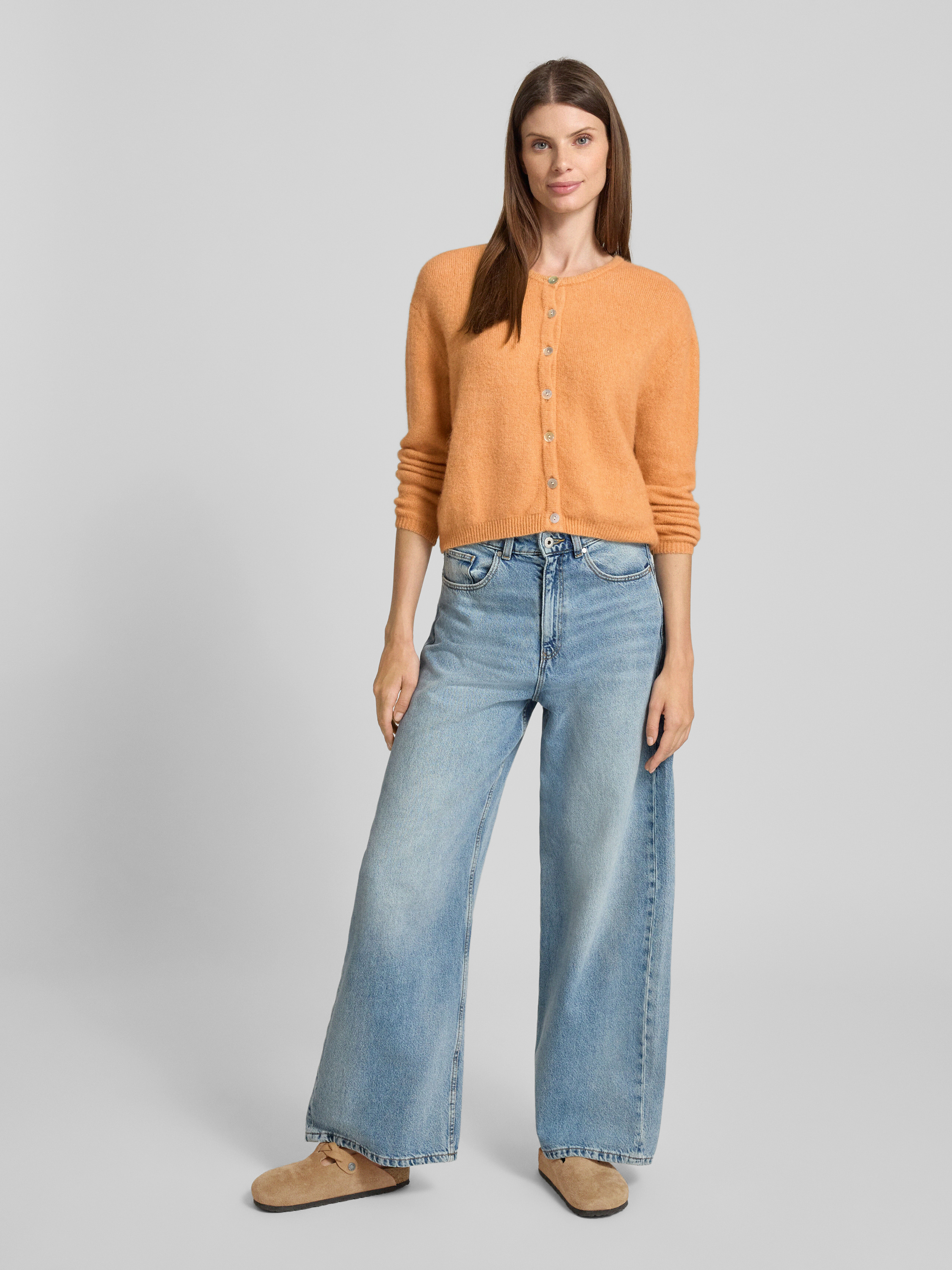 Die Strickjacke von American Vintage im Modell 'VITOW' verbindet einen angenehmen Alpaka-Mix mit Lanawolle und sorgt dadurch für ein weiches Tragegefühl. Durch den Regular Fit und den Rundhalsausschnitt eignet sie sich vielseitig für den Alltag. Dezente Details ergänzen das schlichte Design auf stimmige Weise.