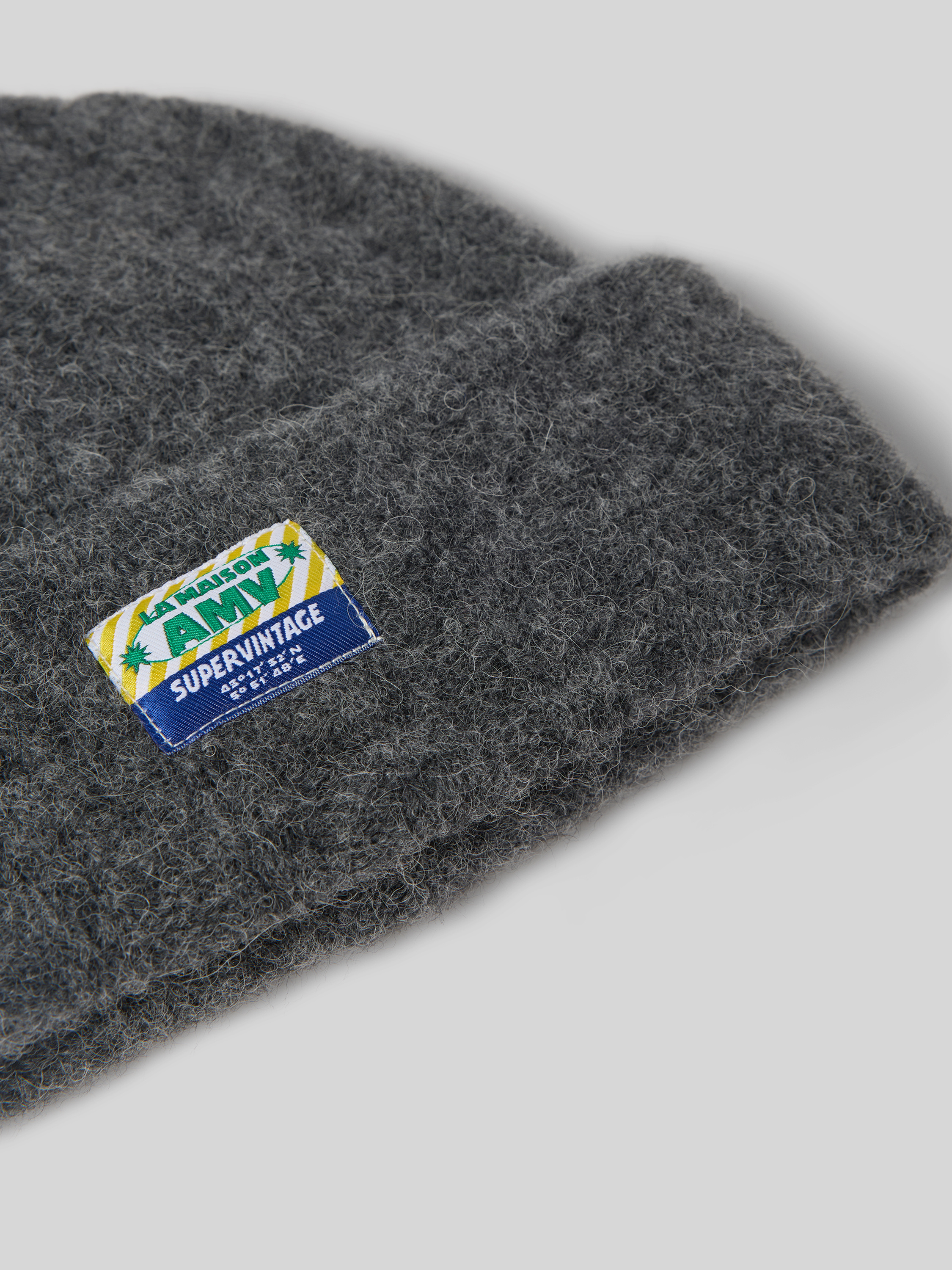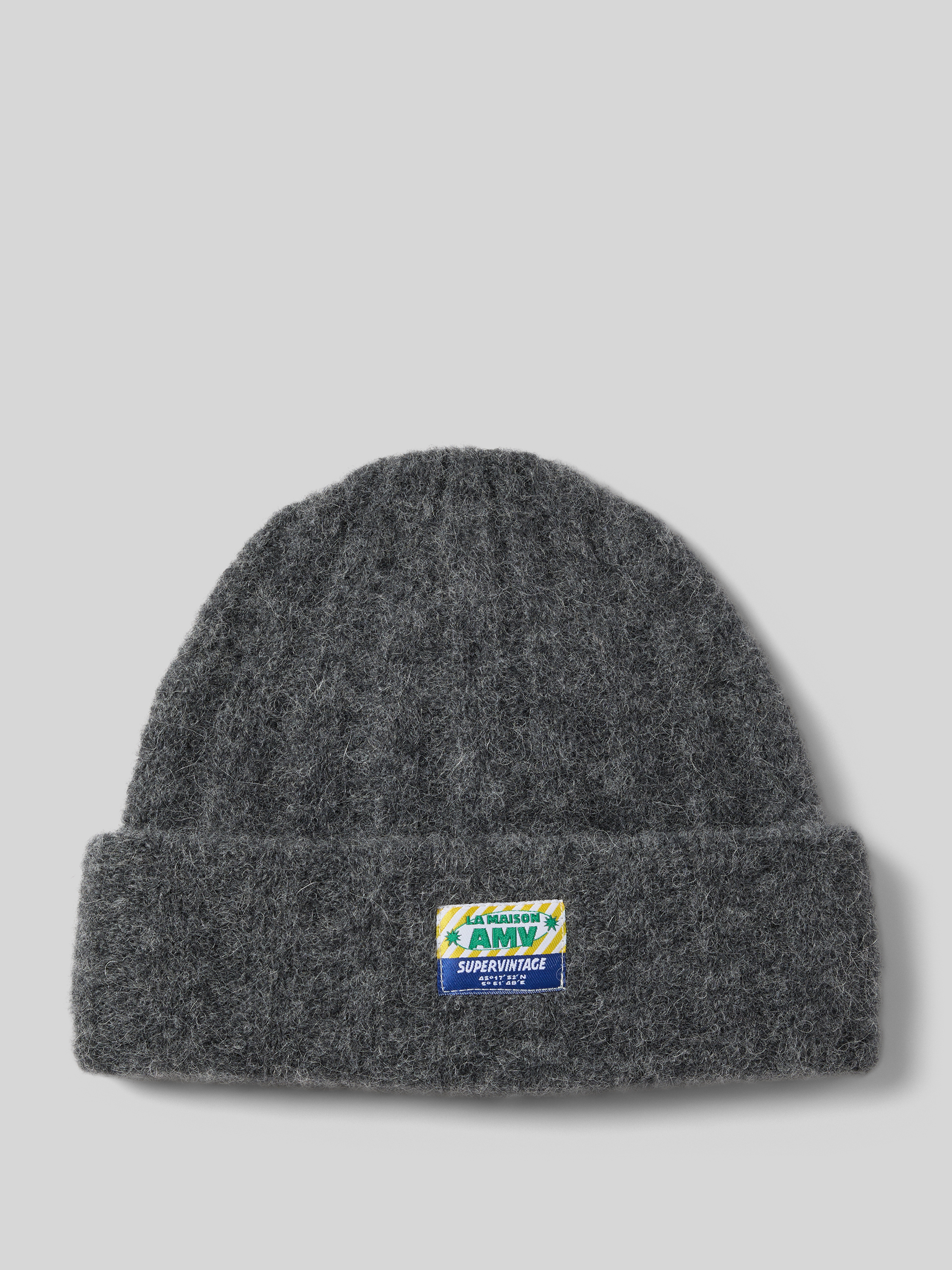 American VintageStrickmütze mit Label-Patch Modell 'VITOW' in dunkelgrau melange