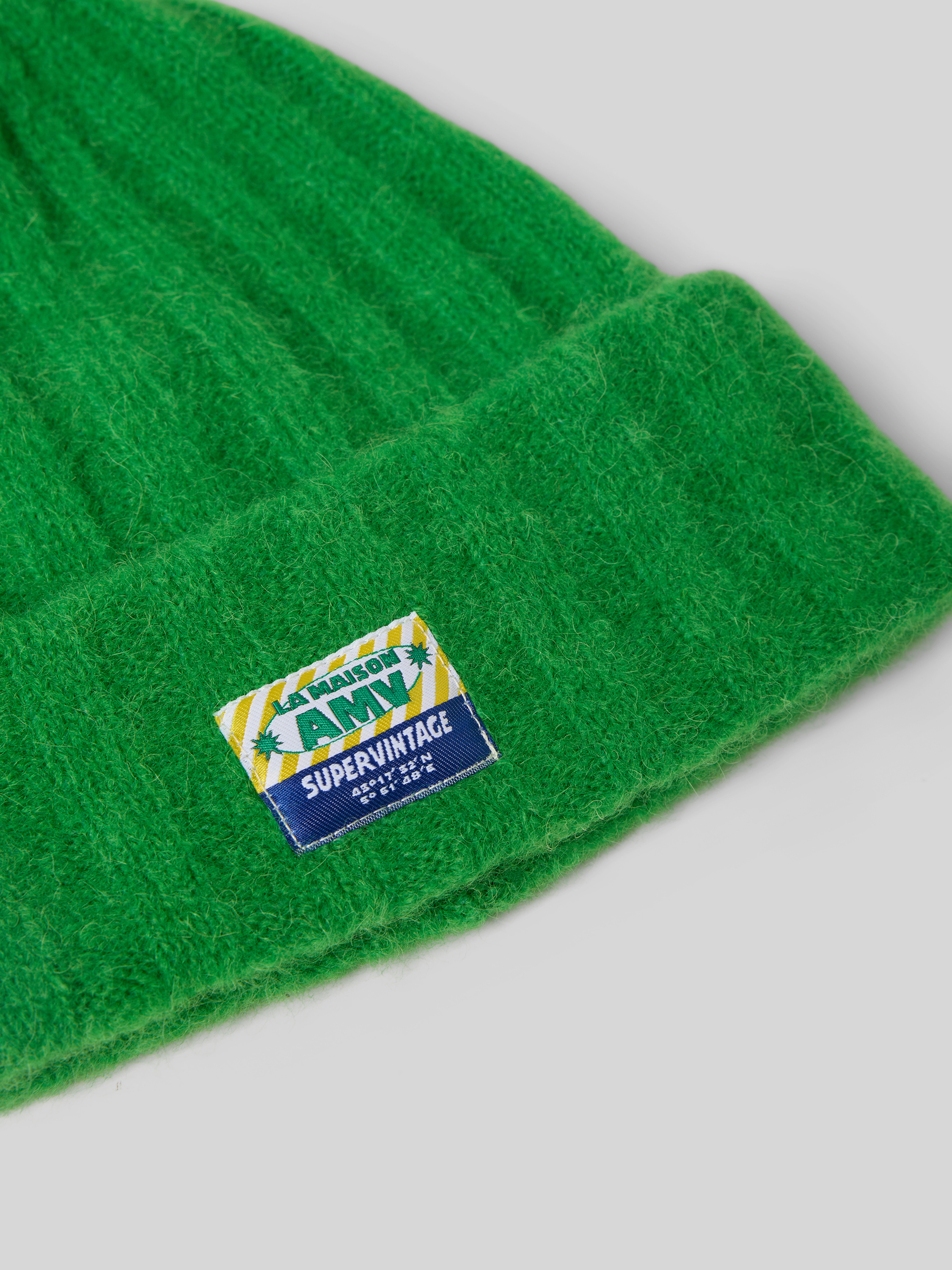 American VintageStrickmütze mit Label-Patch Modell 'VITOW' in neon gruen