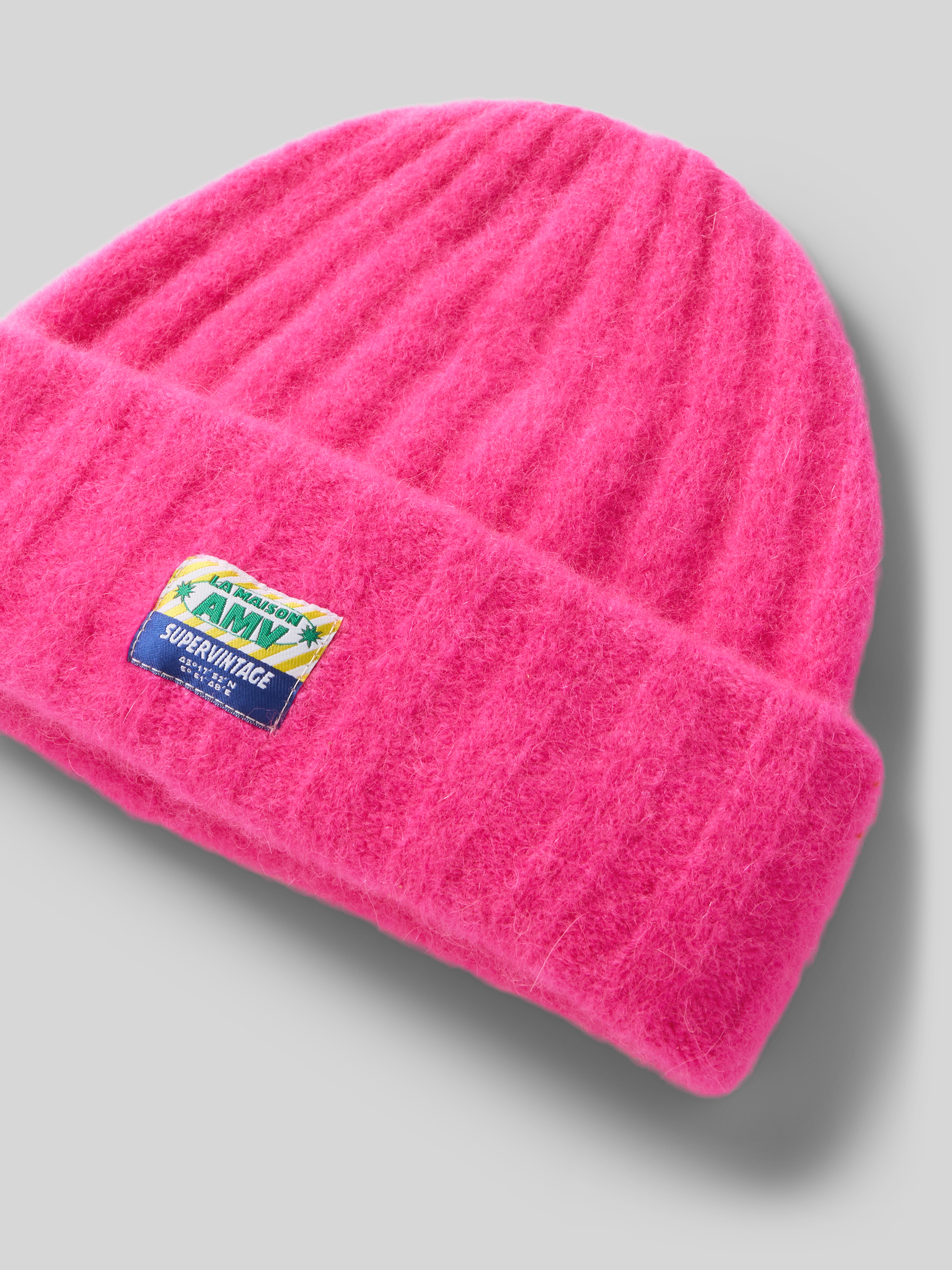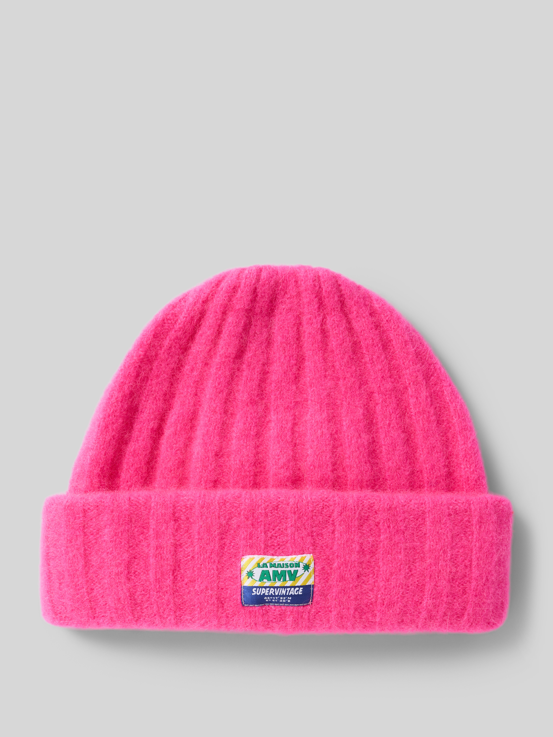 American VintageStrickmütze mit Label-Patch Modell 'VITOW' in neon pink