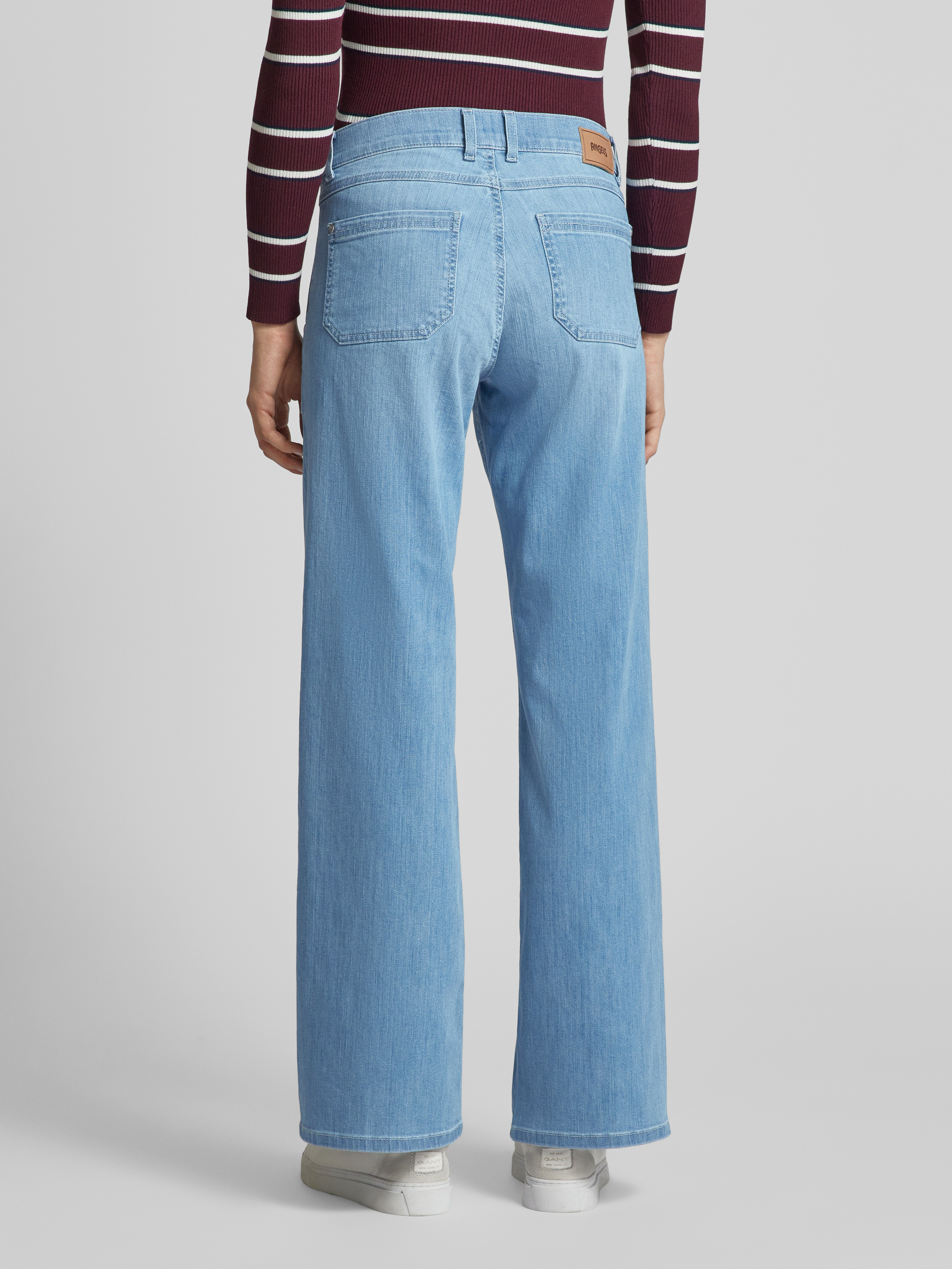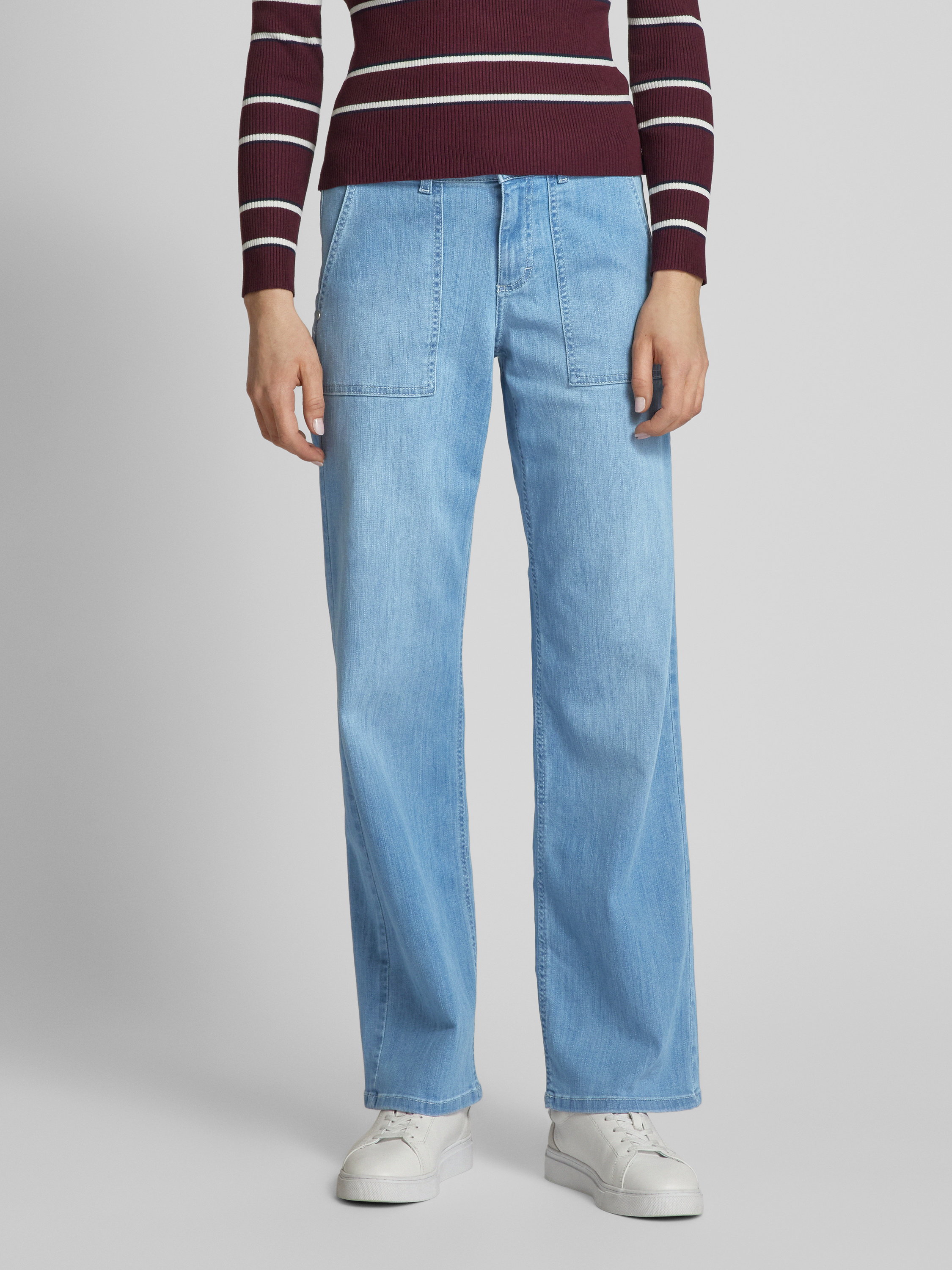 Die Damenjeans von Angels im Modell Liz zeichnet sich durch ihren entspannten Wide Fit aus, der angenehme Bewegungsfreiheit ermöglicht. Dank des Baumwoll-Mix mit Stretch-Anteil bleibt der Tragekomfort auch an längeren Tagen konstant. Eingrifftaschen und Gesäßtaschen runden das Design alltagstauglich ab.