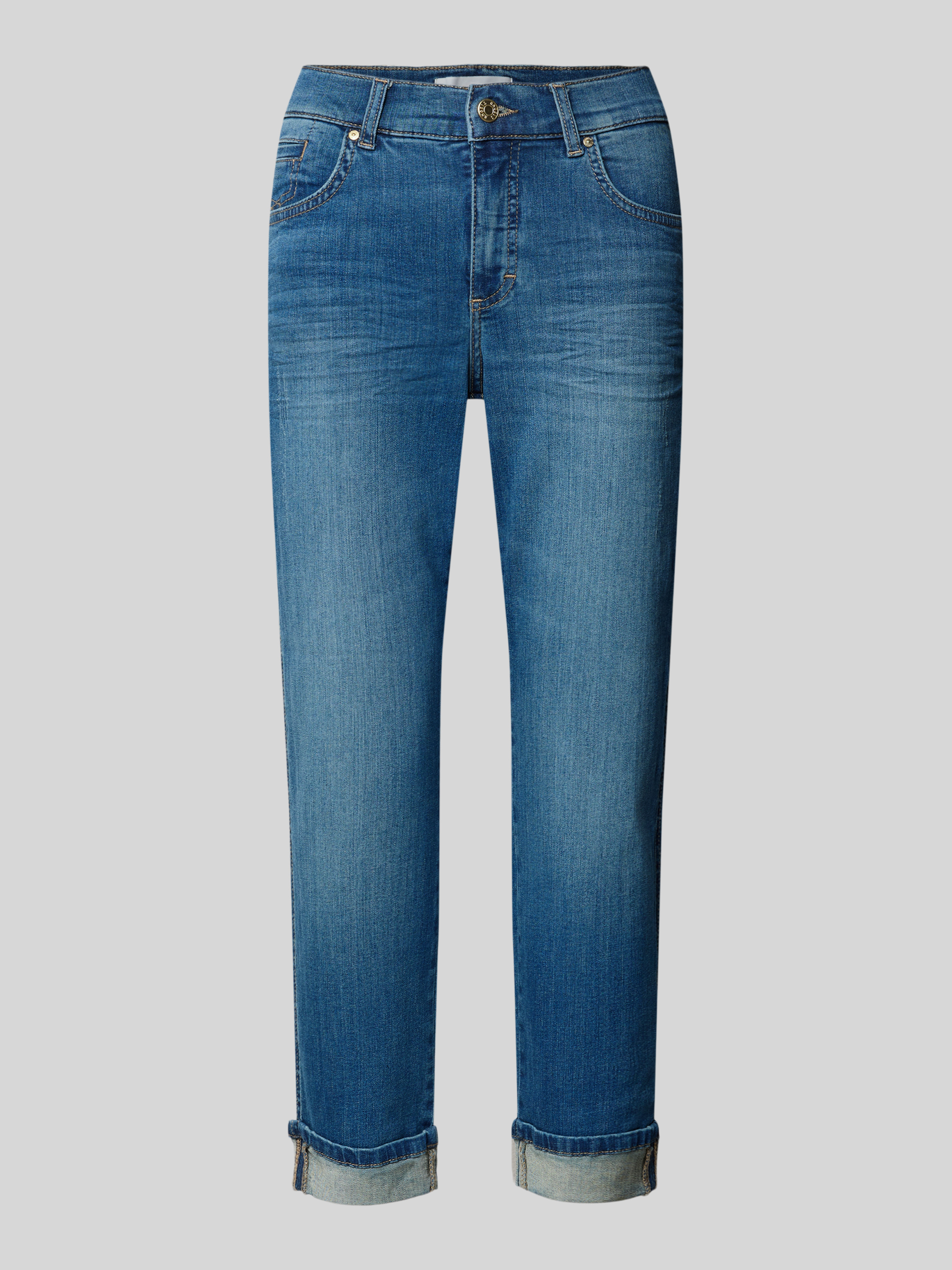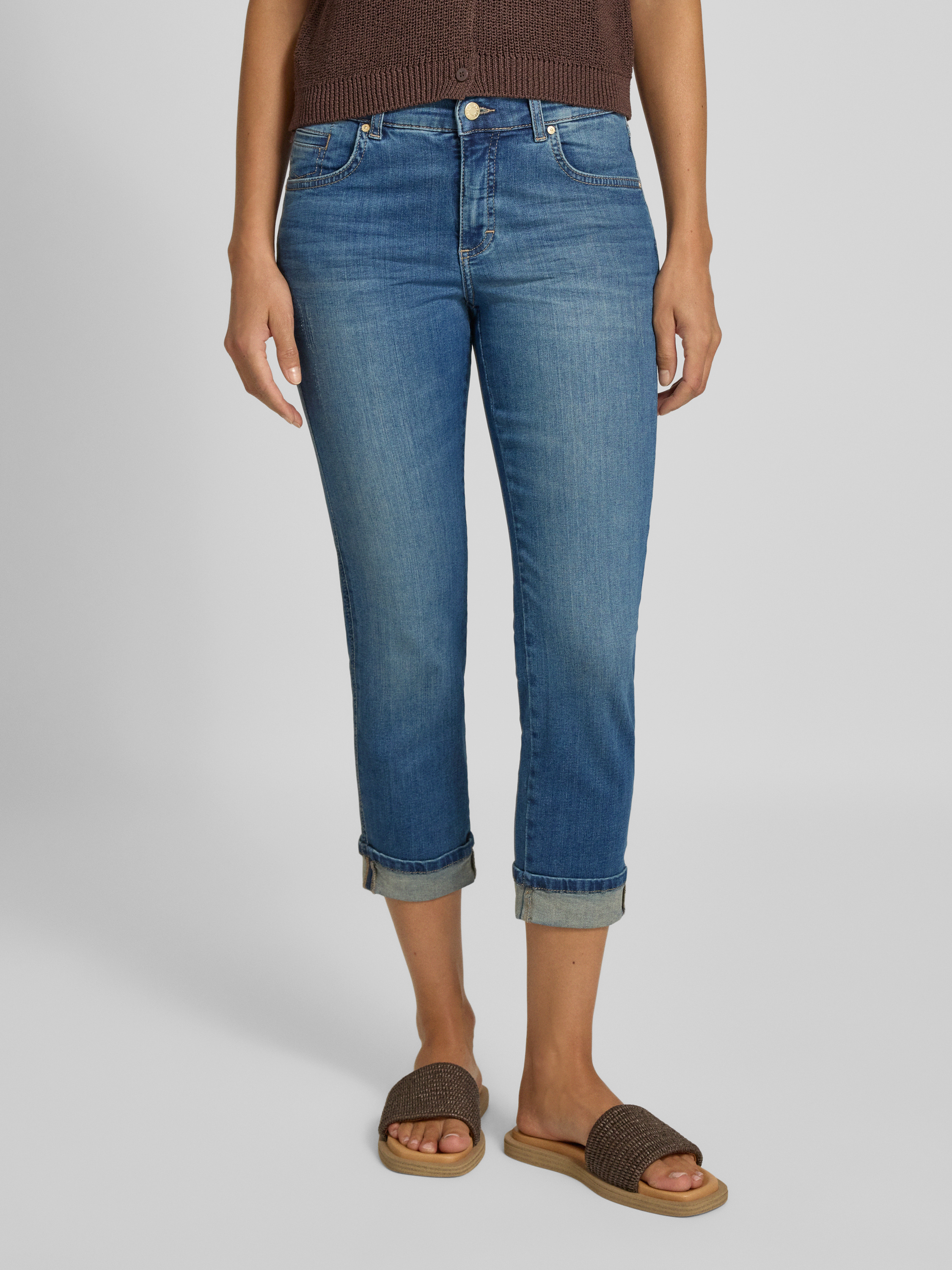 Die Regular Fit Jeans im 5-Pocket-Design von Angels, Modell 'DARLEEN', kombiniert einen bequemen Baumwoll-Mix mit einem praktischen Stretch-Anteil. Das verkürzte Bein und der fixierte Beinumschlag machen sie zu einem vielseitigen Begleiter für den Alltag. Ein elegantes Design, das sich ideal für verschiedene Anlässe eignet.