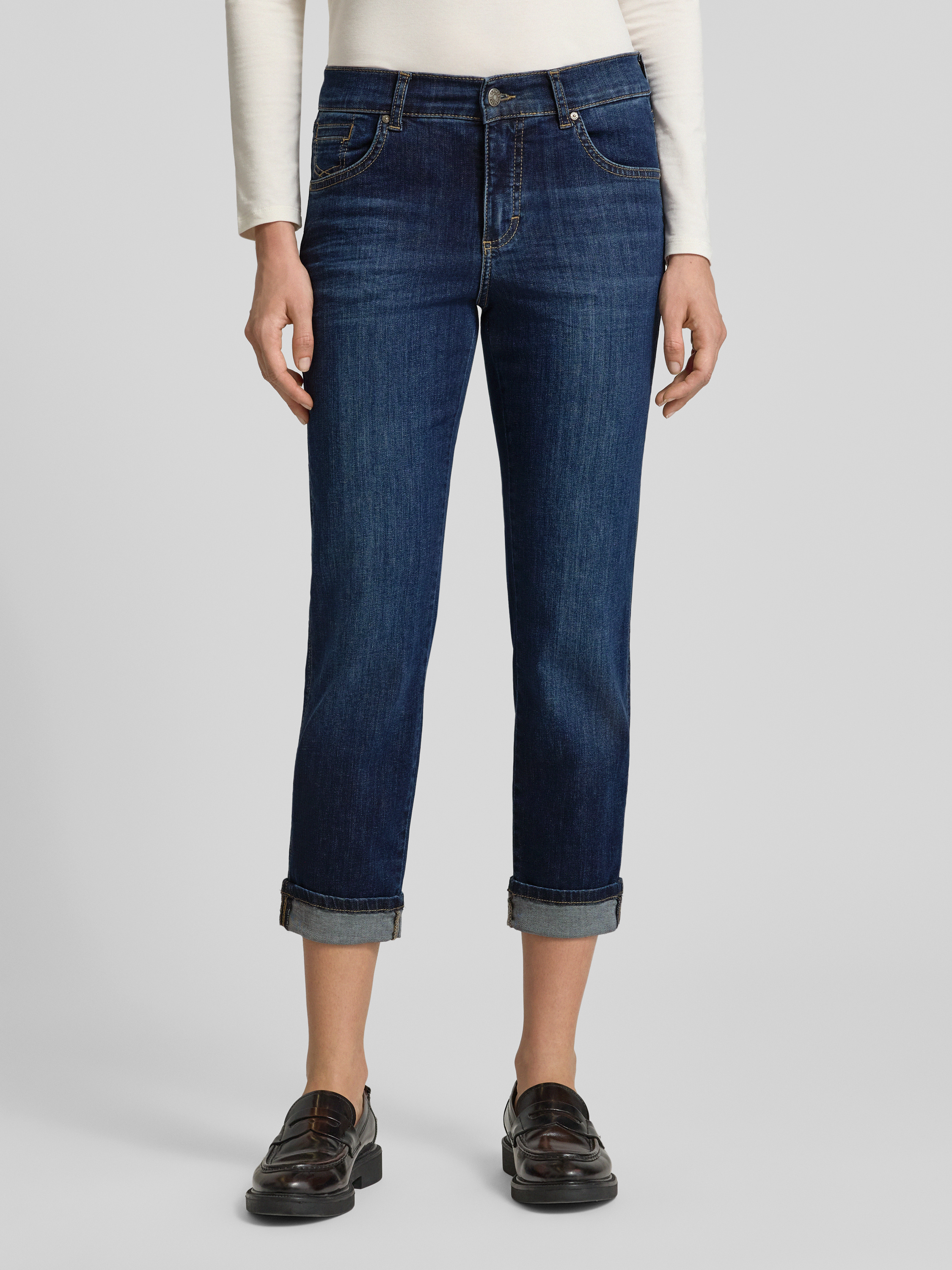 Die Regular Fit Jeans im 5-Pocket-Design von Angels, Modell 'DARLEEN', kombiniert einen bequemen Baumwoll-Mix mit einem praktischen Stretch-Anteil. Das verkürzte Bein und der fixierte Beinumschlag machen sie zu einem vielseitigen Begleiter für den Alltag. Ein elegantes Design, das sich ideal für verschiedene Anlässe eignet.