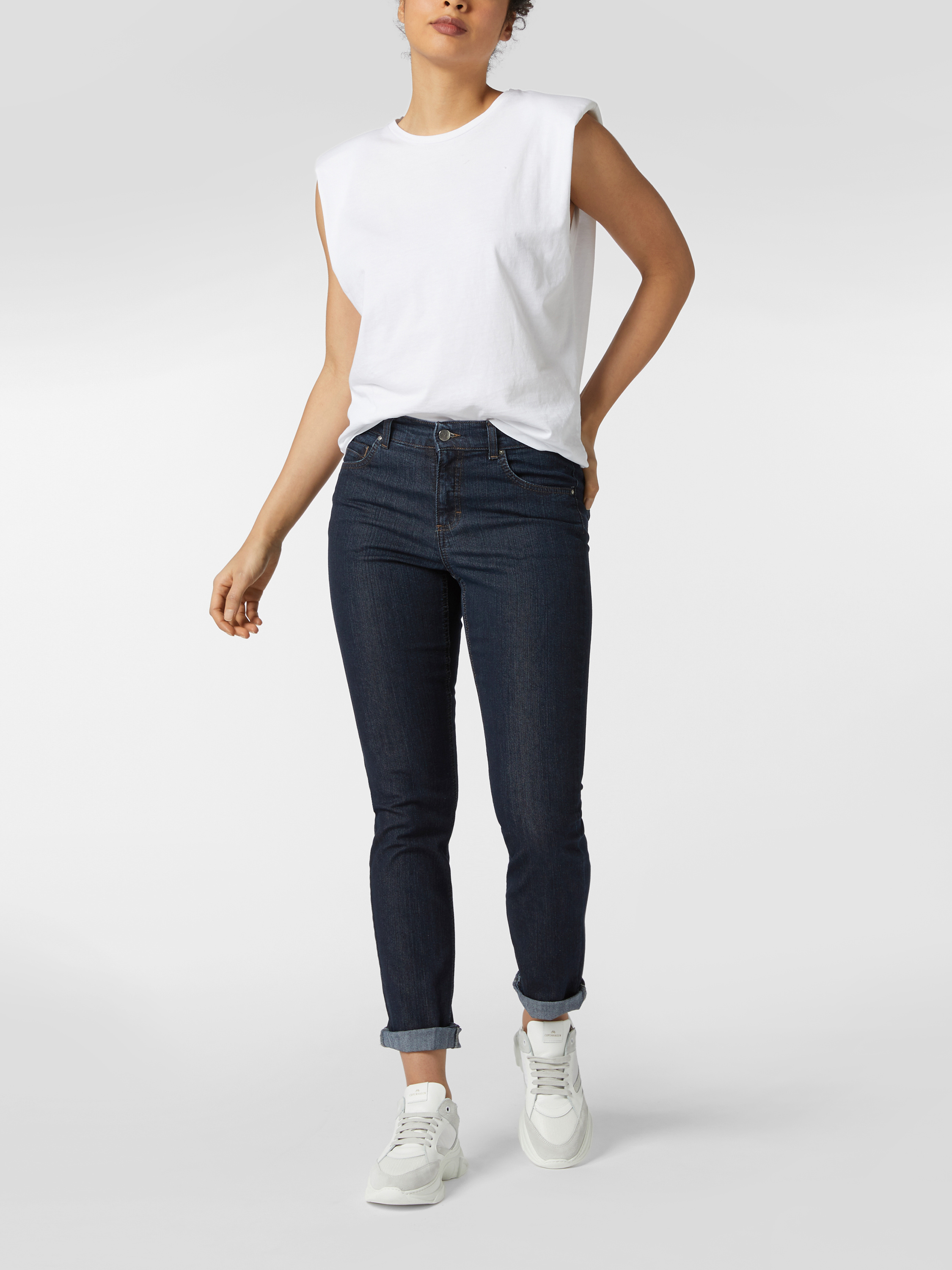 Die Skinny Fit Jeans von ANGELS kombiniert eine schmeichelhafte Passform mit komfortabler Bewegungsfreiheit dank der Baumwollmischung mit Stretch-Anteil. Das 5-Pocket-Design sorgt für einen zeitlosen Look, während der Label-Patch in Metallic-Optik auf der Rückseite einen dezenten Akzent setzt. Hergestellt in Italien, bietet diese Jeans Qualität und Stil in einem.