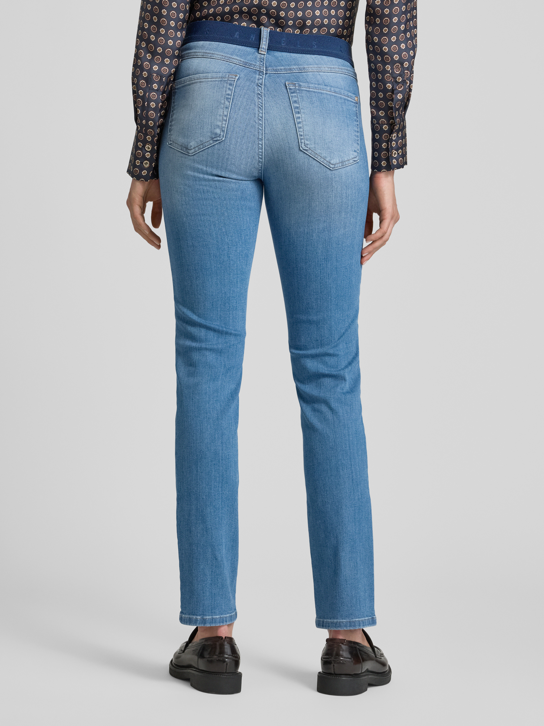 Die Damen Slim Fit Jeans von Angels schmiegt sich durch ihren figurbetonten Schnitt angenehm an die Silhouette. Ein elastischer Bund sorgt für bequemen Sitz, während der Baumwoll-Mix mit Stretch-Anteil Bewegungsfreiheit im Alltag ermöglicht. Der dezente Used-Look rundet das Gesamtbild lässig ab.