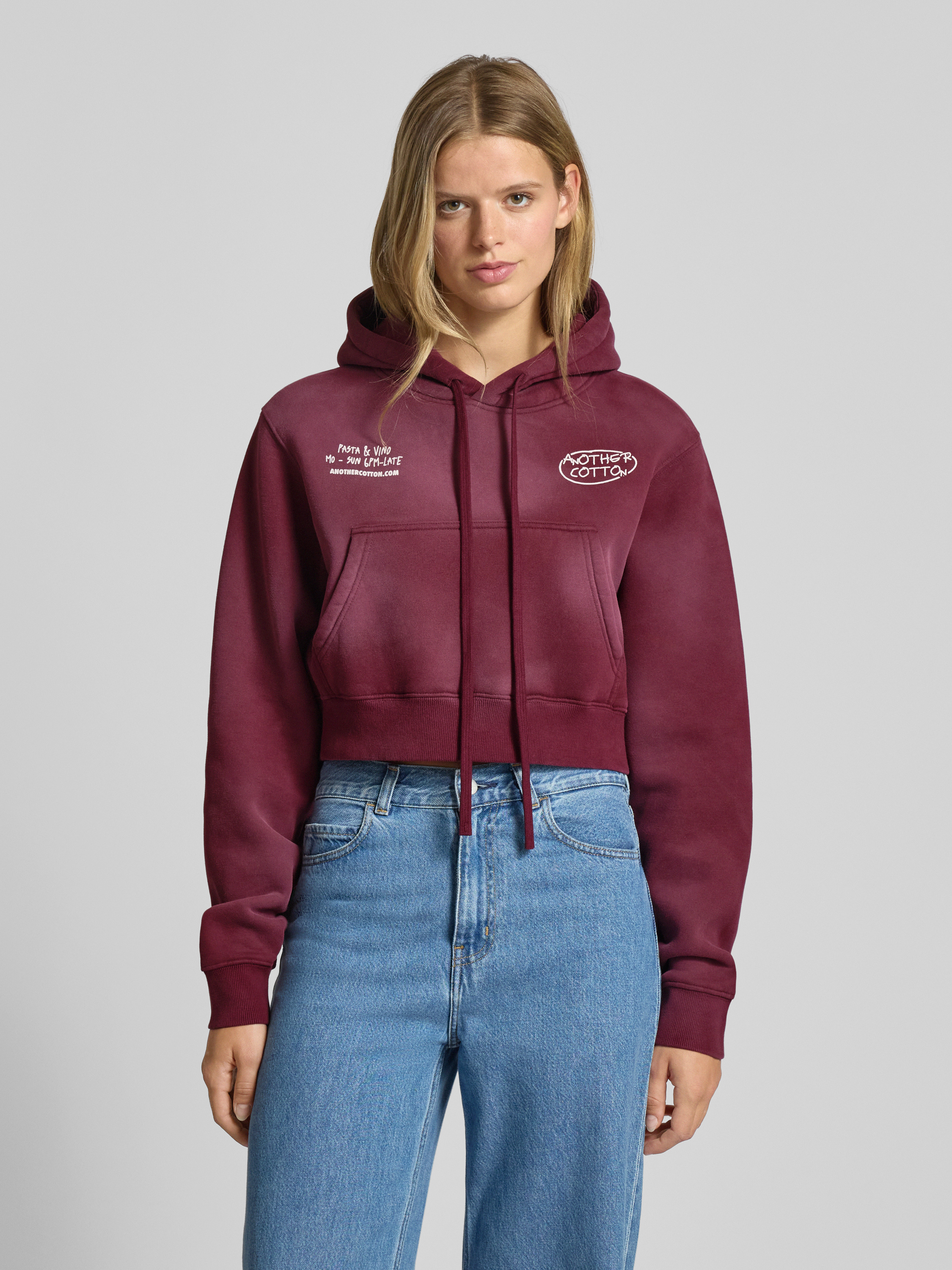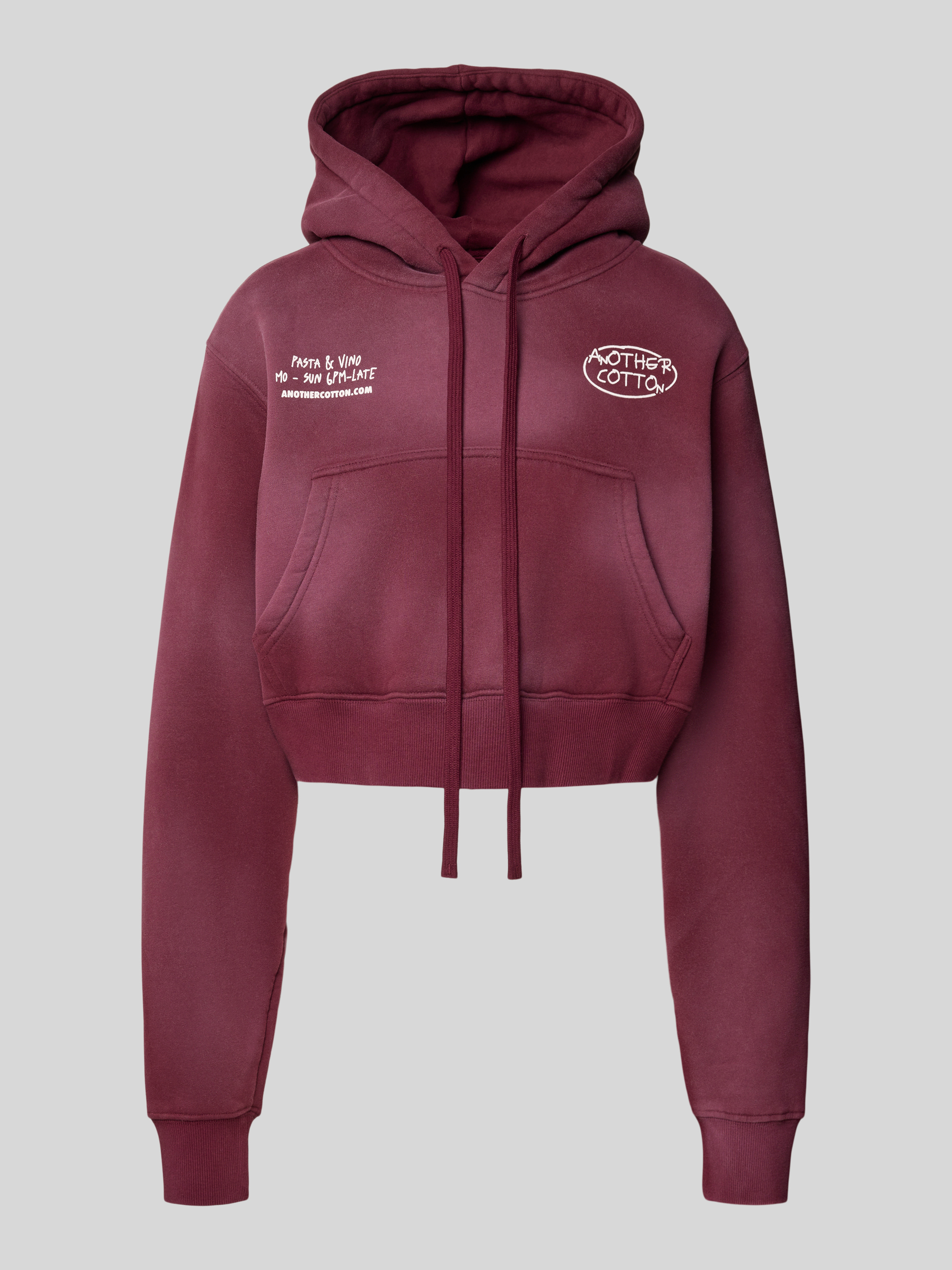 Der Damen Hoodie von ANOTHER COTTON LAB kombiniert einen lockeren Schnitt mit einem verkürzten Cropped-Design, wodurch er sich angenehm leicht trägt und vielfältig kombinieren lässt. Durch den Baumwoll-Mix fühlt sich das Material weich auf der Haut an, während die Kapuze mit Tunnelzug und die Känguru-Tasche praktische Details setzen. Ein Label-Print rundet den sportiven Look ab, sodass man sich im Alltag flexibel und entspannt bewegt.