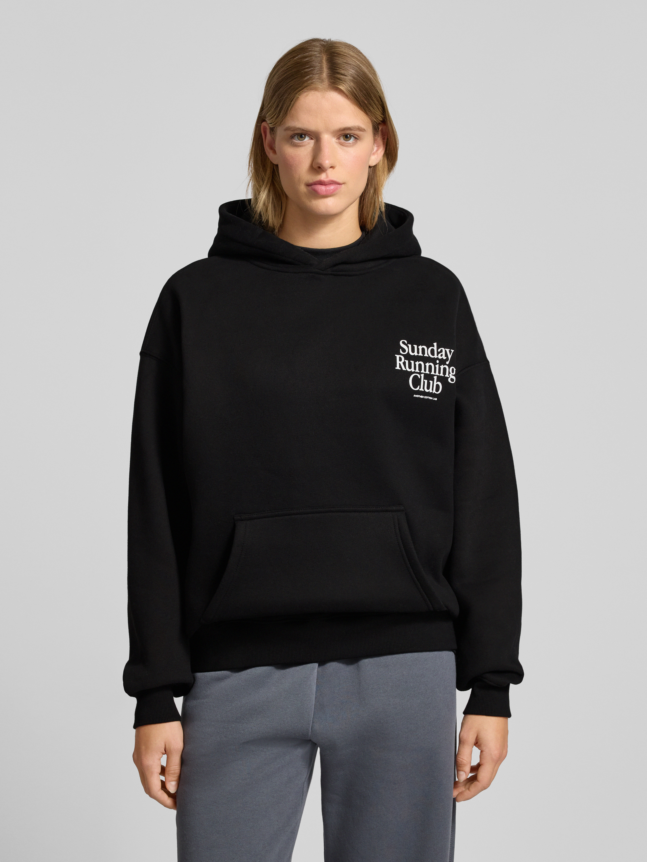 Der Damen Hoodie von ANOTHER COTTON LAB zeigt sich im Modell „Sunday Running Club“ mit entspanntem Oversized-Schnitt und markantem Statement-Print. Ein Escorial Woll-Mix verleiht dem Material eine angenehme Struktur, sodass sich der Hoodie besonders weich anfühlt. Die großzügige Känguru-Tasche unterstreicht den lässigen Charakter und schafft Platz für Kleinigkeiten.