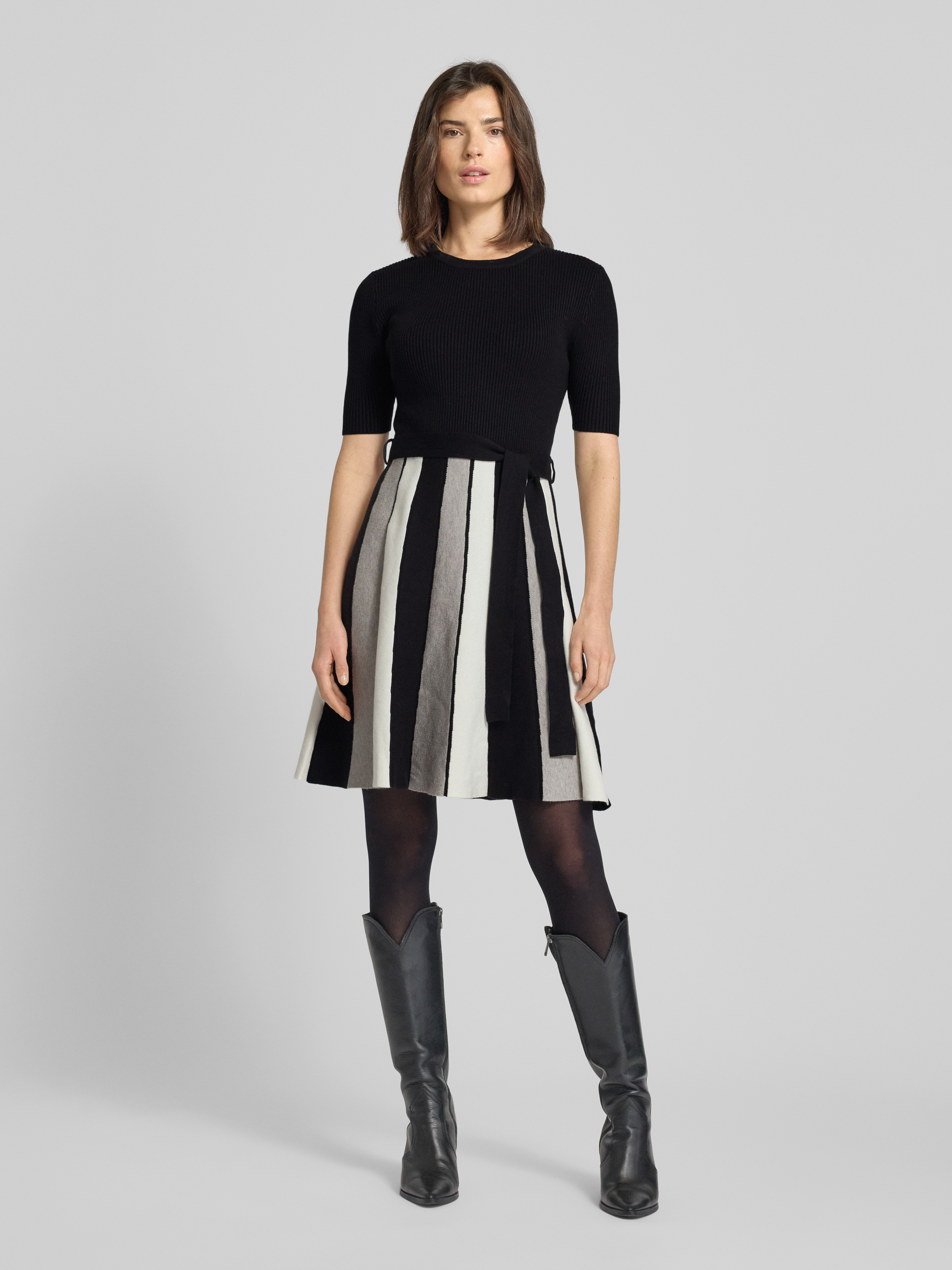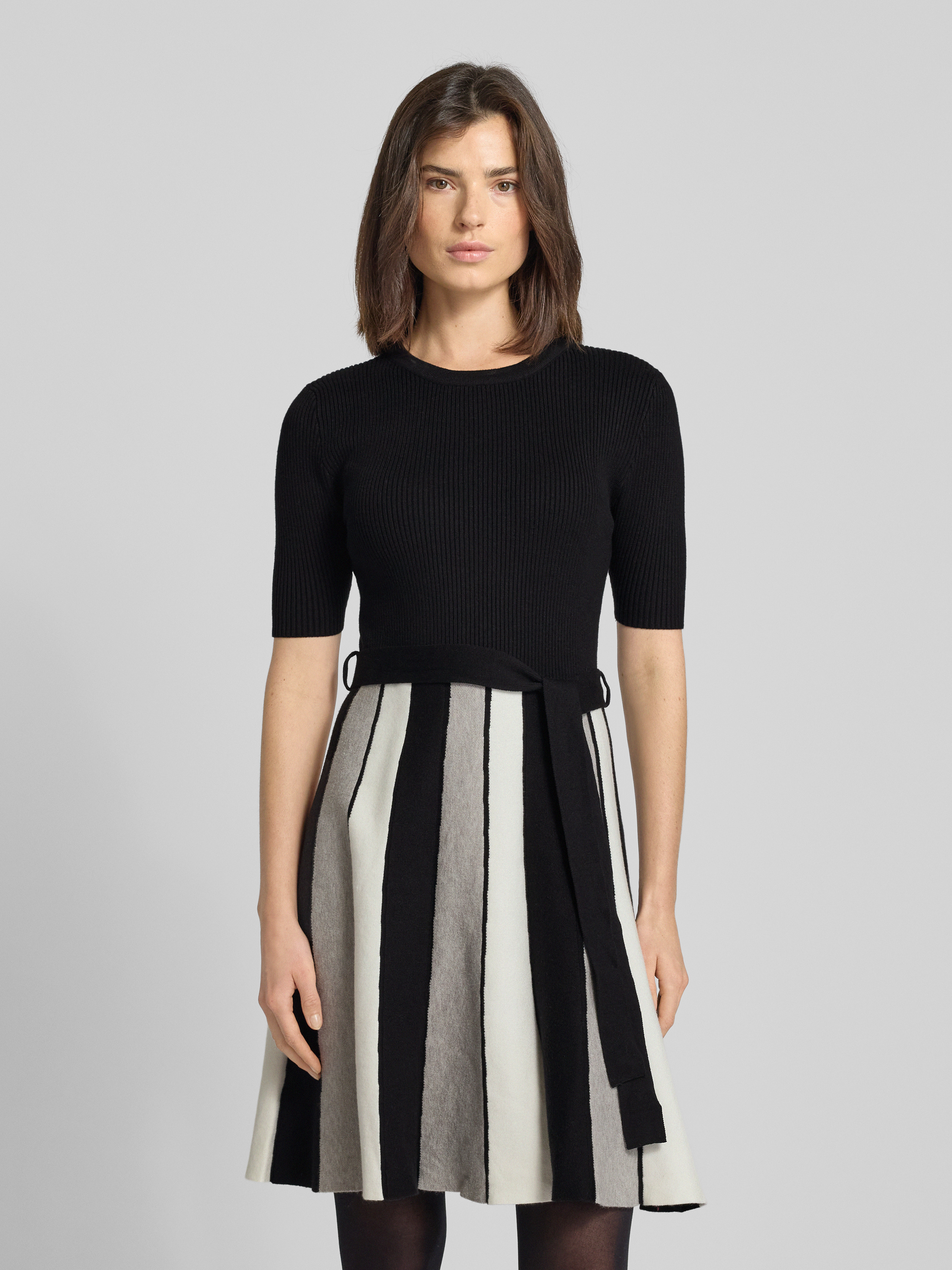 Das knielange Kleid von Apricot im Viskose-Mix fällt durch seine taillierte Passform und das abnehmbare Stoffband angenehm auf. In Strick-Optik gestaltet, unterstreicht der Rundhalsausschnitt gemeinsam mit den halblangen Ärmeln und der Falten-Optik eine feminine Silhouette. So eignet sich dieses Modell für vielfältige Anlässe, ohne einzuengen.