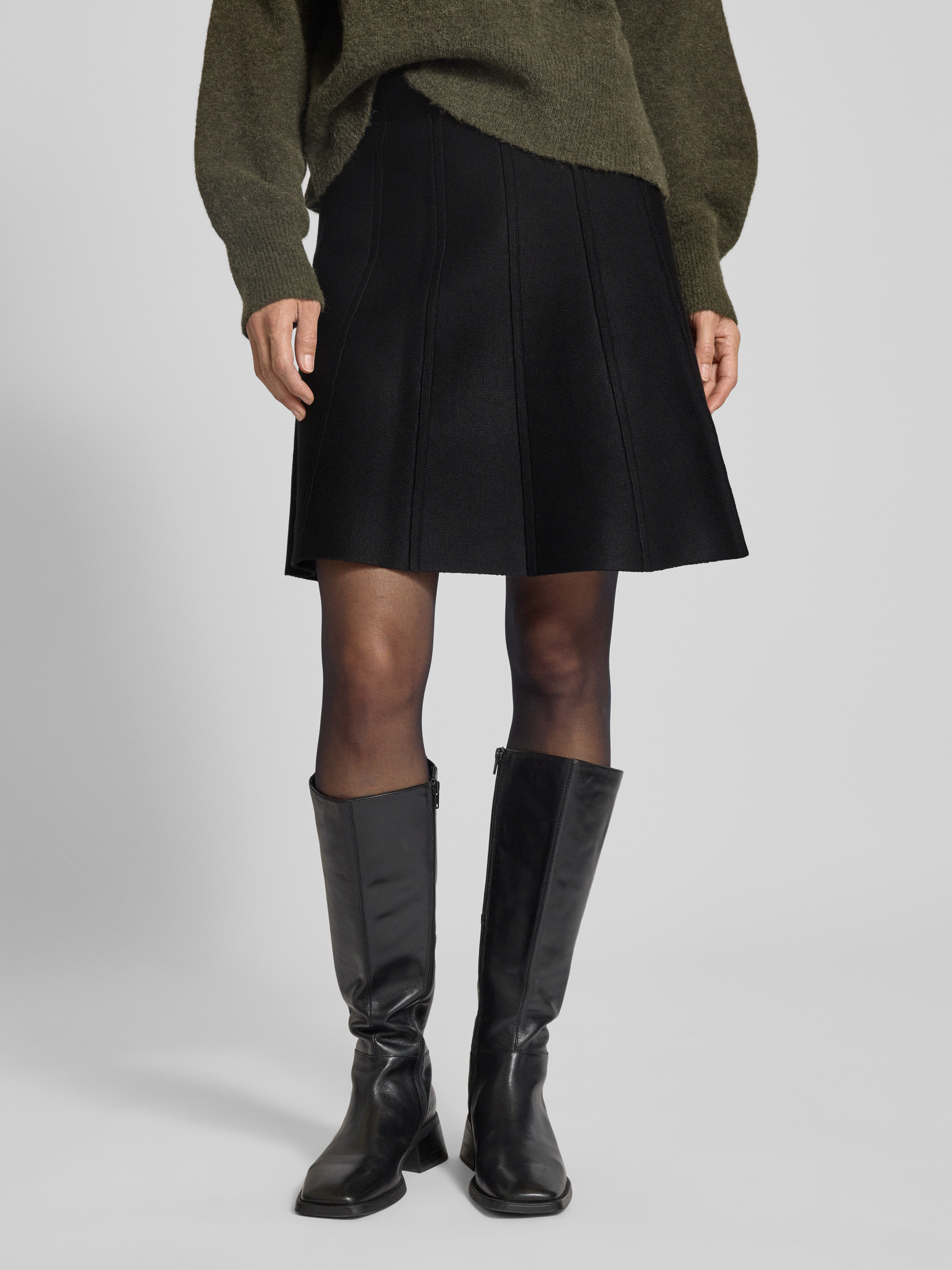 Der Damen Minirock von Apricot zeigt sich in einer angenehm schwingenden A-Linie, die Bewegungsfreiheit im Alltag schafft. Durch den Viskose-Mix entsteht ein glattes Tragegefühl, während die Teilungsnähte dem Rock eine strukturierte Optik verleihen. Der elastische Bund passt sich unkompliziert an, was den Sitz besonders bequem macht.