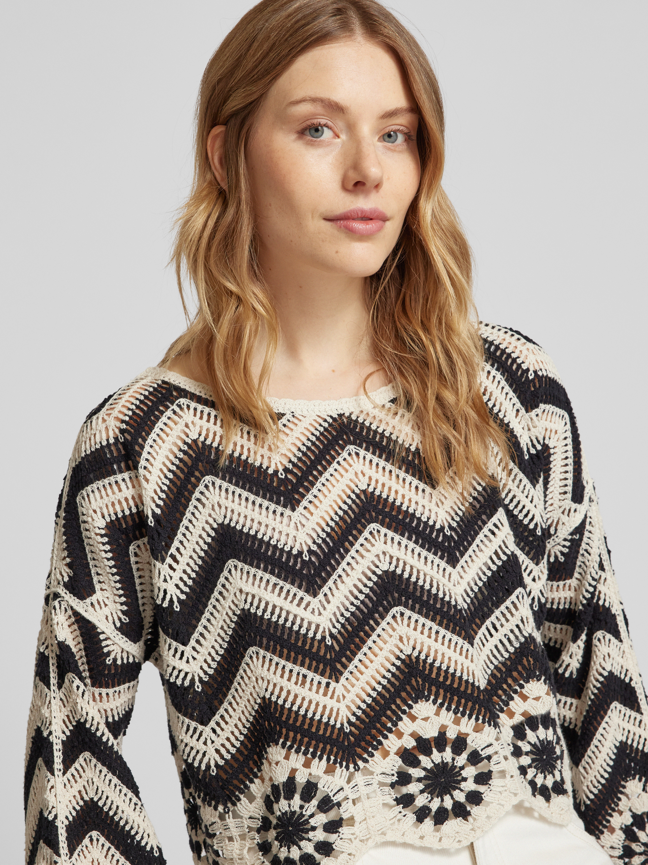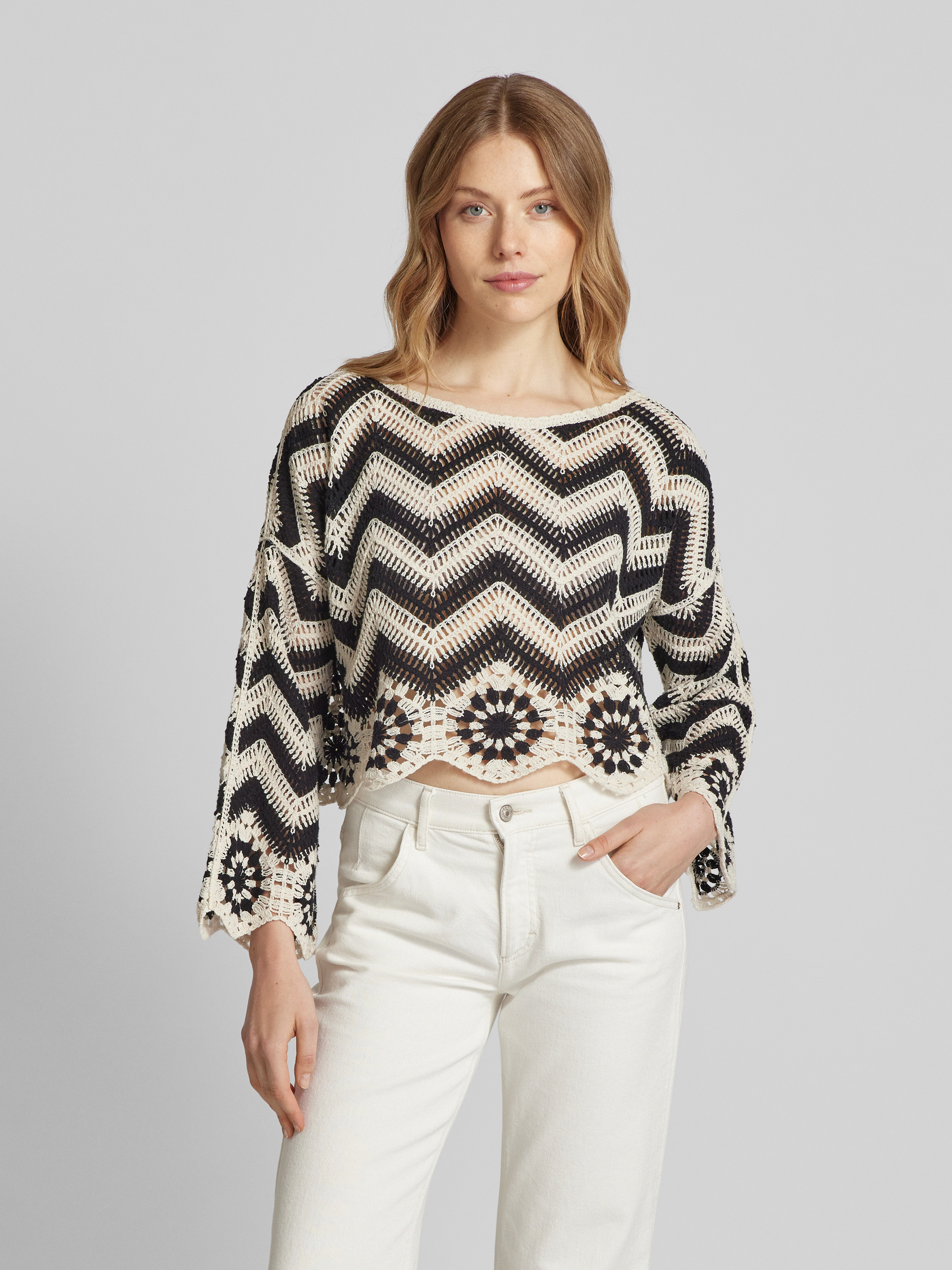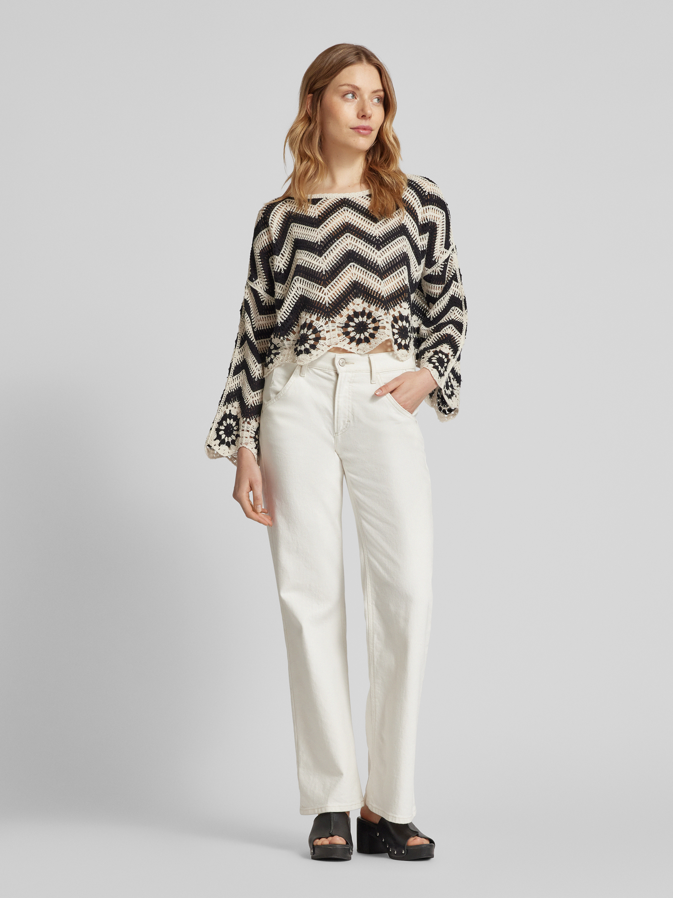 Der Damen Strickpullover von Apricot kombiniert einen Baumwoll-Mix mit einem geraden Schnitt, der sich angenehm an den Körper schmiegt. Die überschnittenen Schultern und Trompetenärmel verleihen dem Rundhalsausschnitt eine lässige Eleganz. Ein vielseitiges Kleidungsstück für unterschiedliche Anlässe.