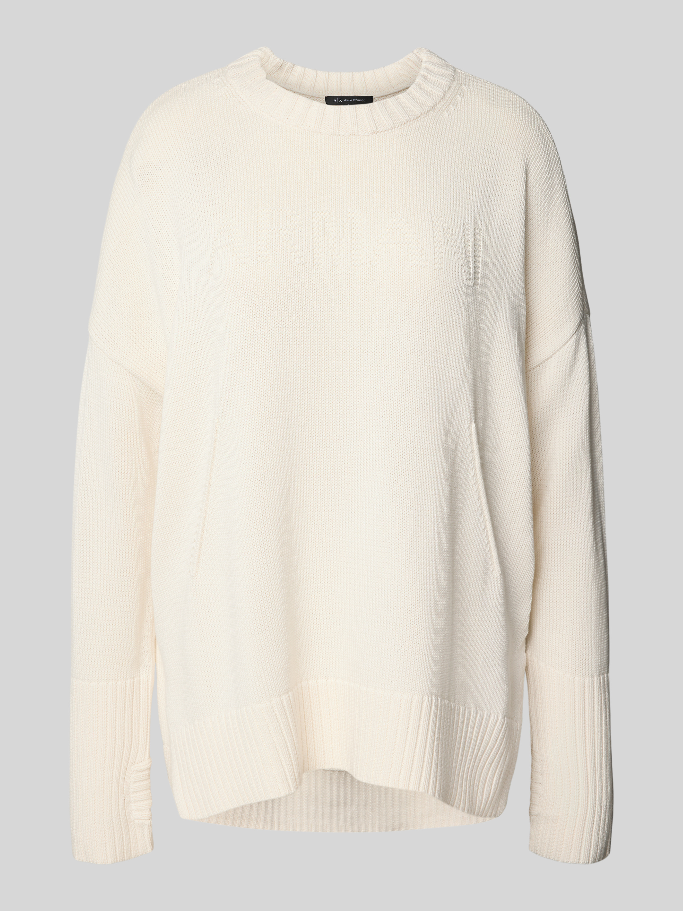 ARMANI EXCHANGEOversized Strickpullover mit gerippten Abschlüssen in offwhite