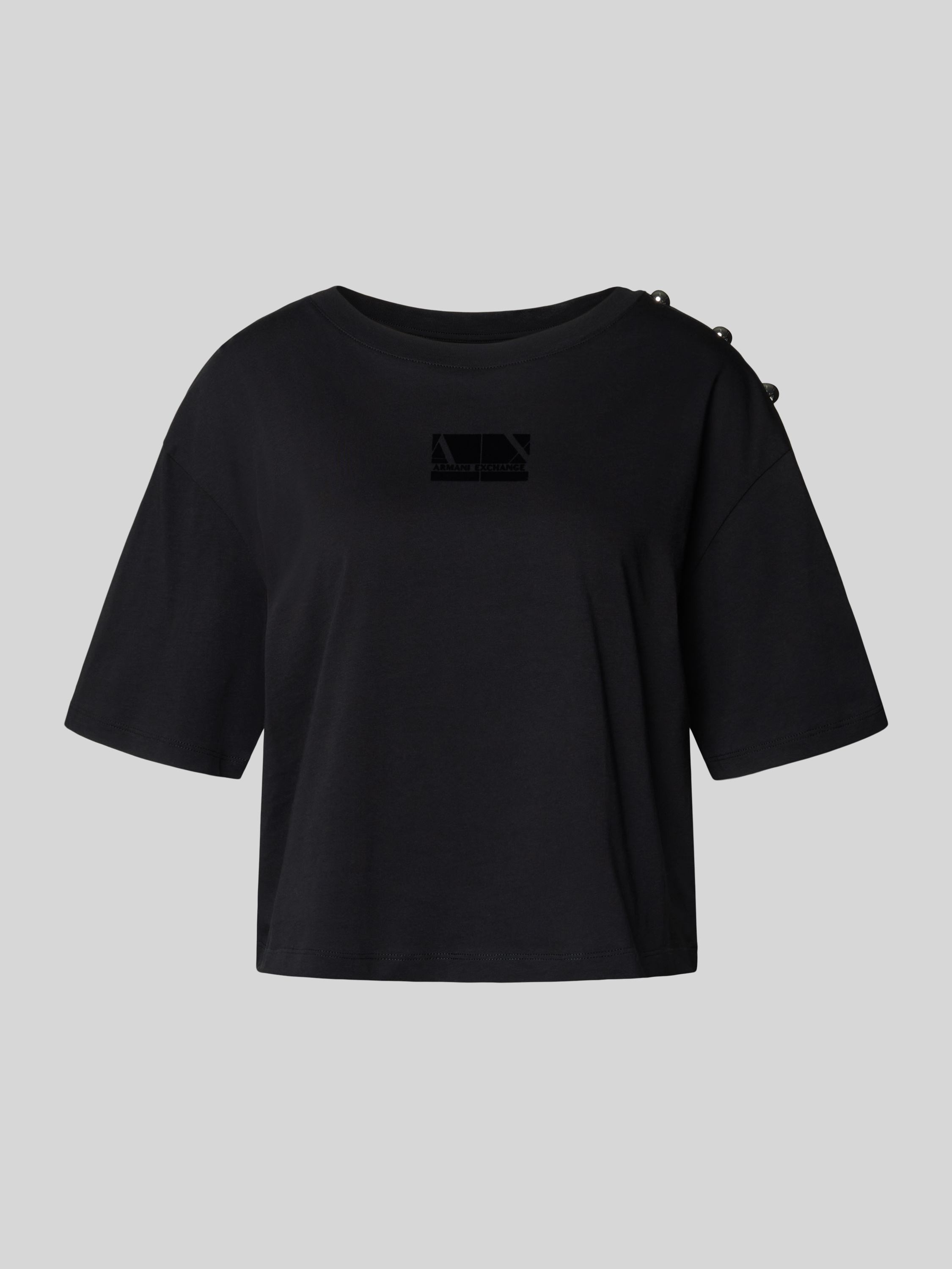 ARMANI EXCHANGET-Shirt mit Label-Print und Zierknöpfen in black