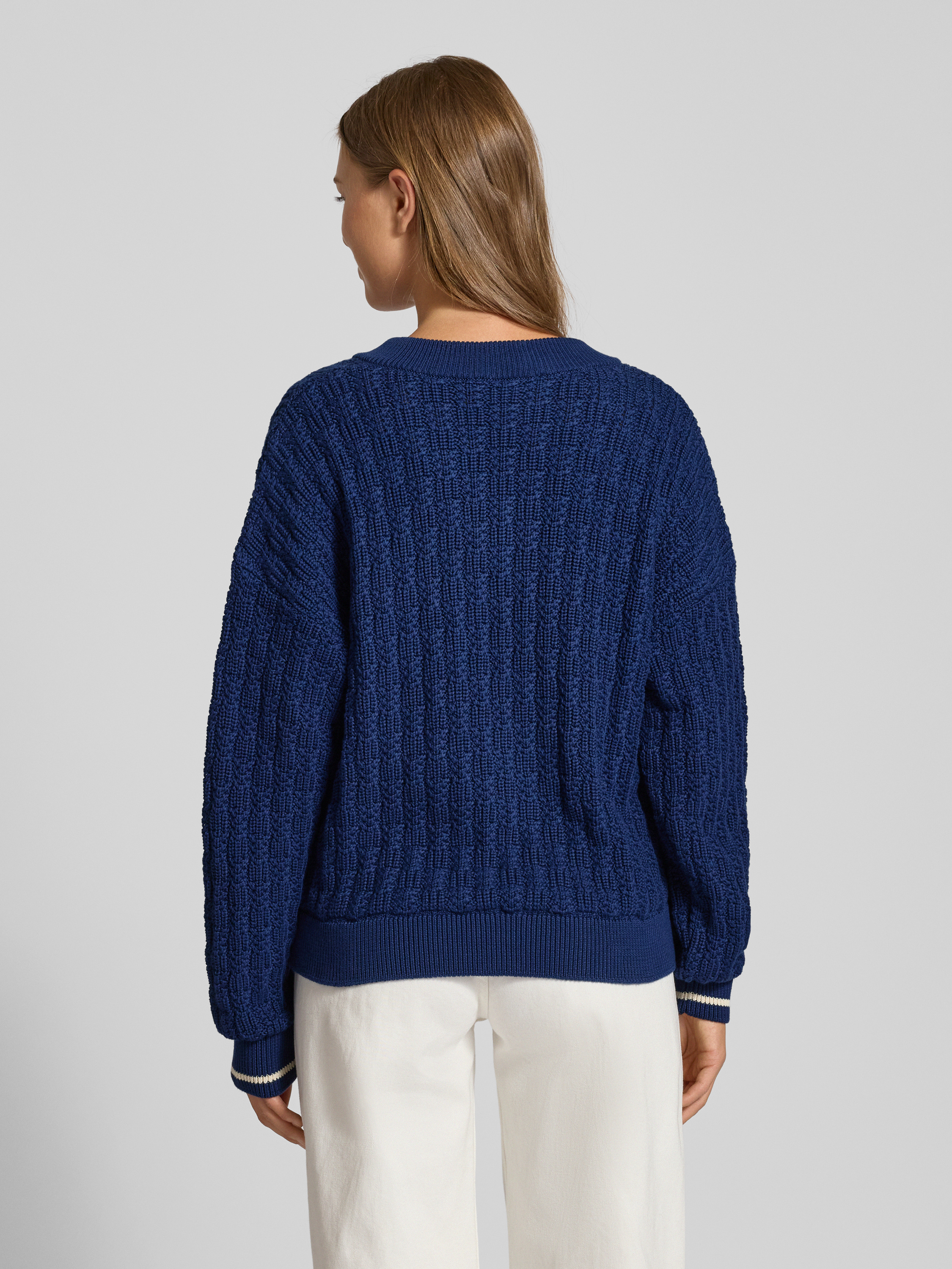 Der Damenpullover von Armedangels, Modell Caarlas Structure, fällt durch seine lockere Passform und die strukturierte Optik auf. Reine Baumwolle sorgt für ein angenehmes Hautgefühl, während überschnittene Schultern sowie dezente Kontraststreifen dem Look eine moderne Note verleihen. Mit Crew Neck und V-Ausschnitt lässt sich das Stück vielseitig kombinieren.