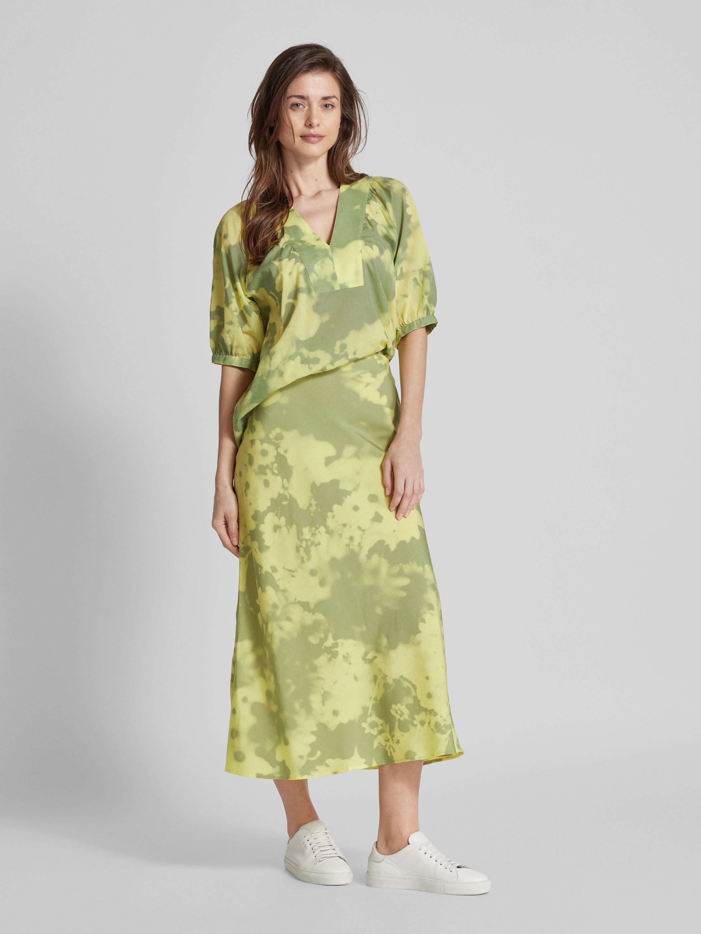 ArmedangelsMaxirock im Batik-Look Modell 'MILAJAANA BLOMMAA' in gelb