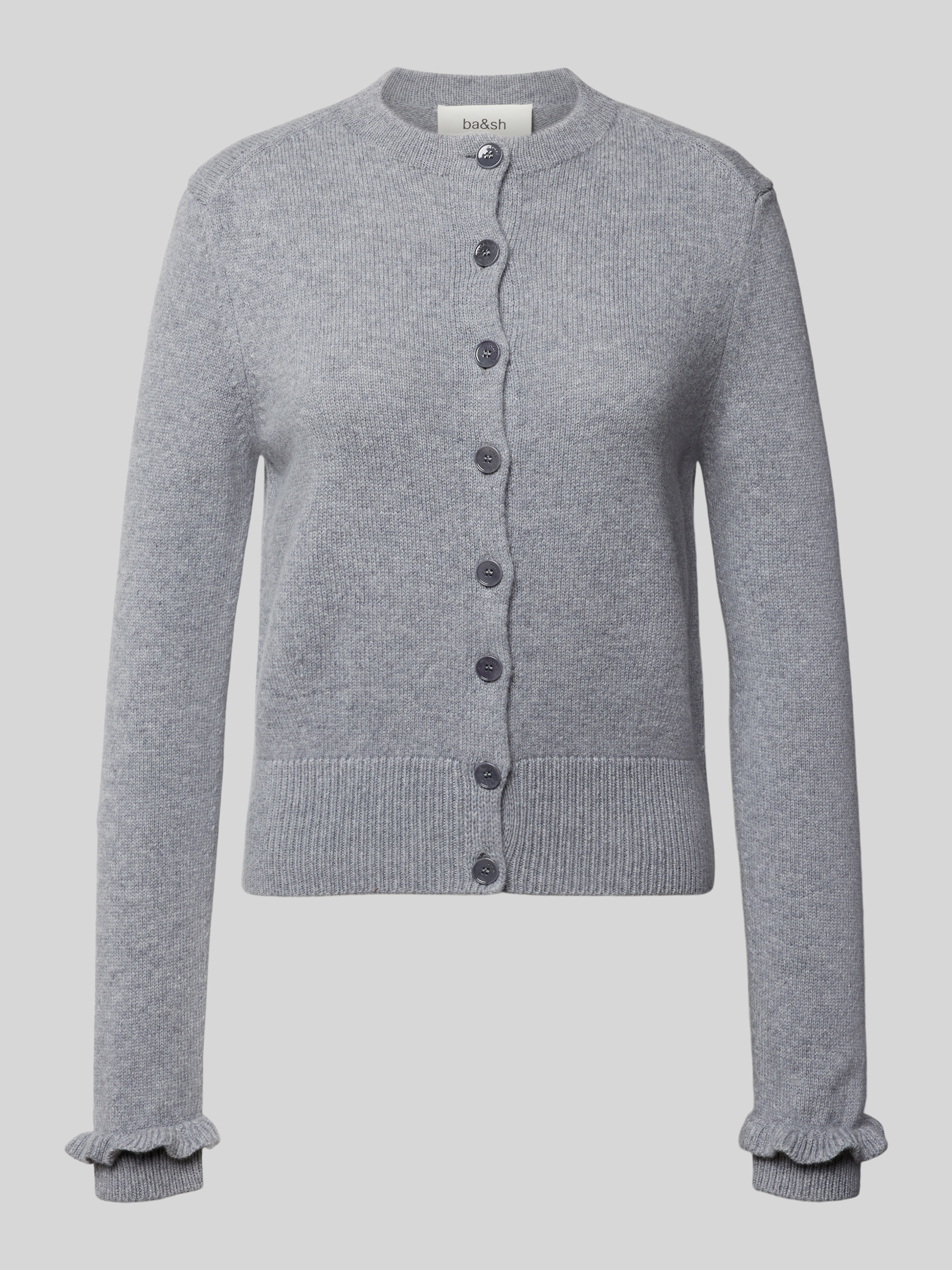 Der Damen Cardigan von Bash im Modell 'KARANTE' zeichnet sich durch seine reine Lanawolle aus, wodurch ein angenehm weiches Tragegefühl entsteht. Der schlanke Schnitt liegt sanft am Körper an und sorgt für eine moderne Silhouette, während der klassische Rundhalsausschnitt vielseitige Kombinationsmöglichkeiten eröffnet. Durch die dezente Knopfleiste entsteht ein unaufdringlicher Akzent, der dem Gesamtbild eine ruhige Note verleiht.