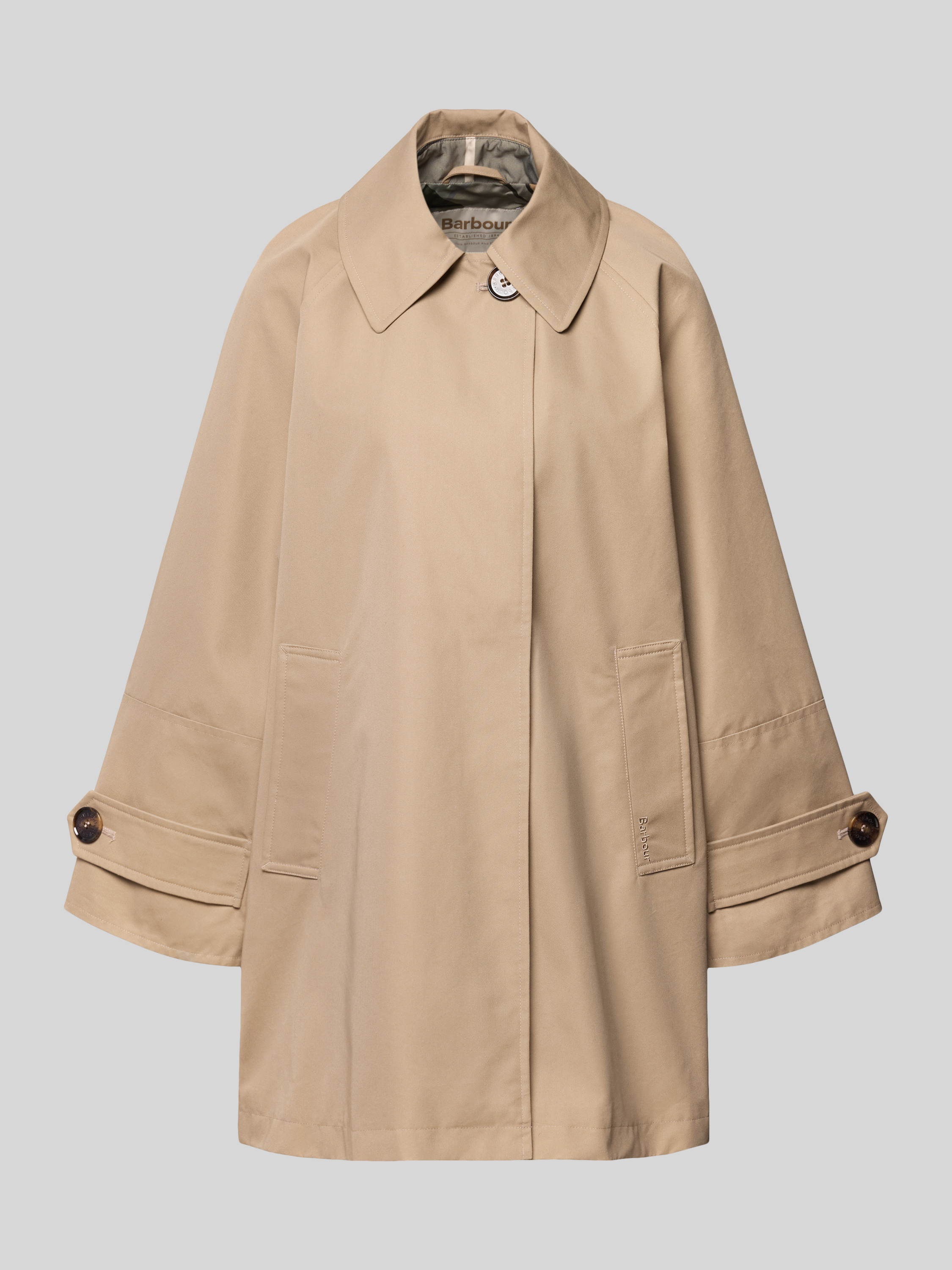 Der Kurzmantel von Barbour, Modell Kennedy, präsentiert sich mit entspannter Passform und klassischen Raglanärmeln. Dank des Baumwoll-Mix entsteht ein angenehmes Tragegefühl, das sich besonders bei wechselhaftem Wetter bewährt. Praktische Taschen und der Umlegekragen sorgen für eine vielseitige Nutzung im Alltag.