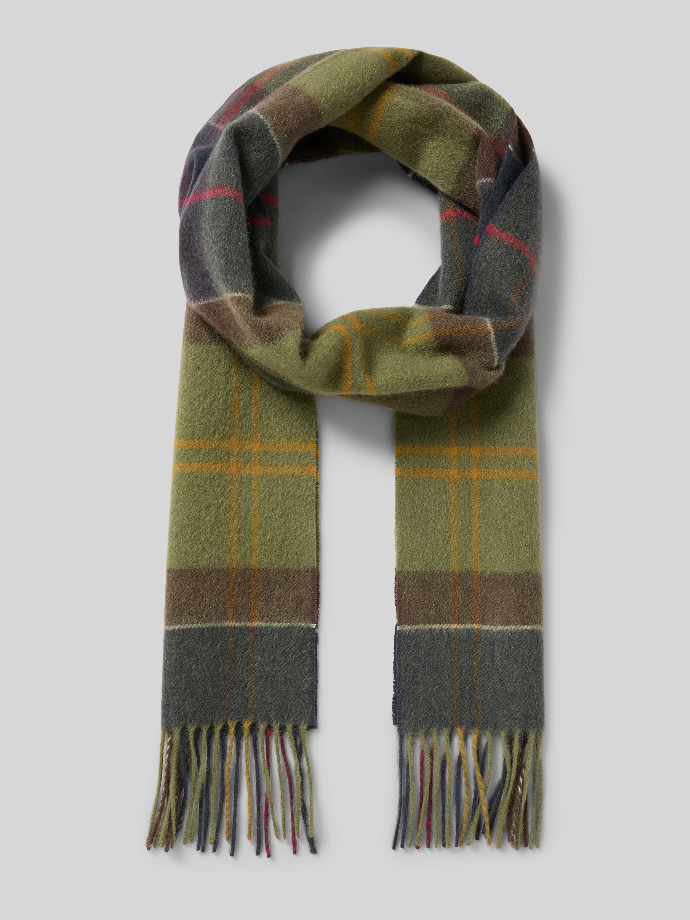 Der Damen Schal von Barbour aus feinem Kaschmir fällt durch sein klassisches Karomuster und die zarten Fransen angenehm ins Auge. Das weiche Material legt sich sanft um den Hals und sorgt für ein komfortables Tragegefühl. Mit dem dezenten Label Patch erhält das Accessoire eine stimmige Abrundung.