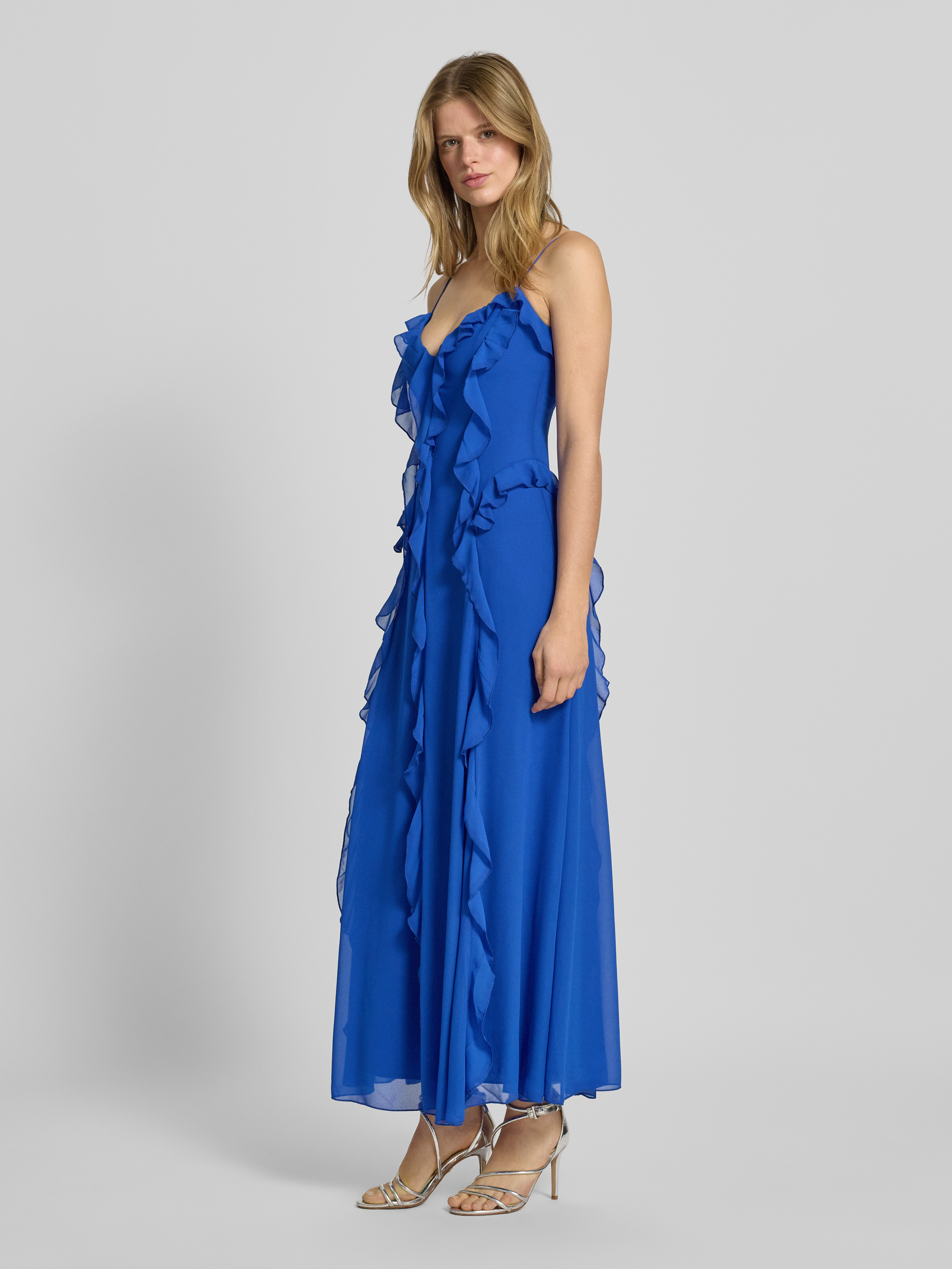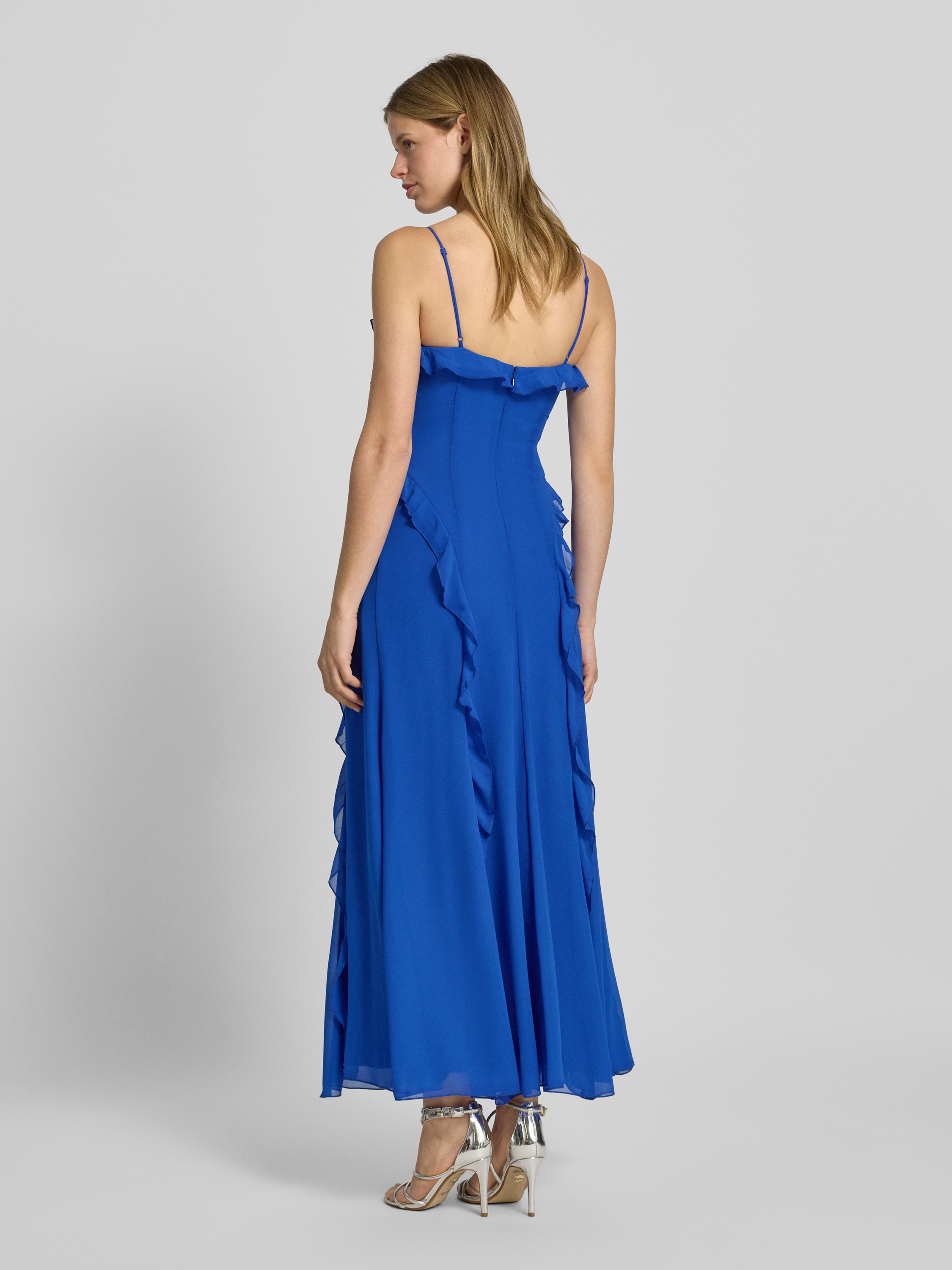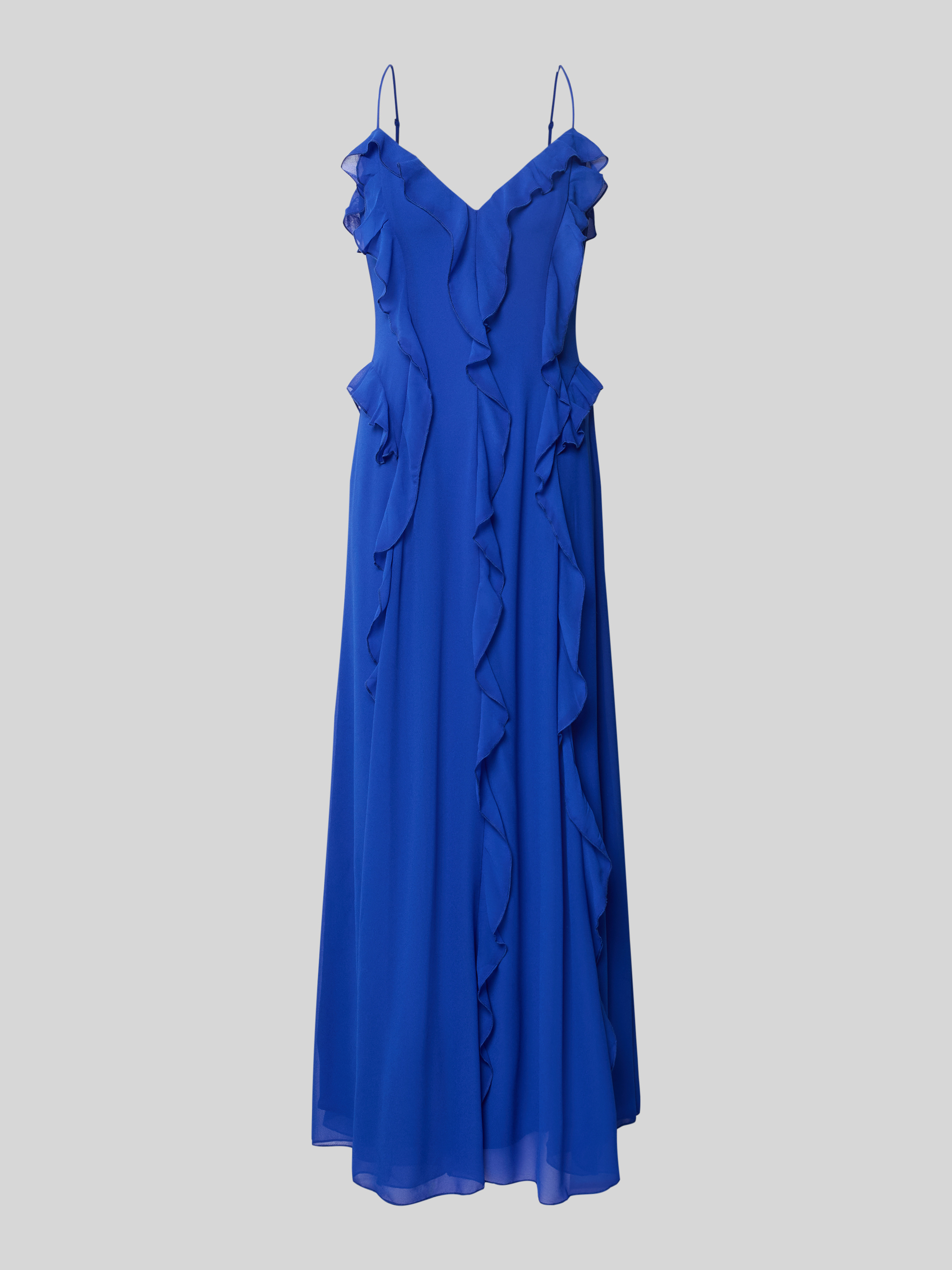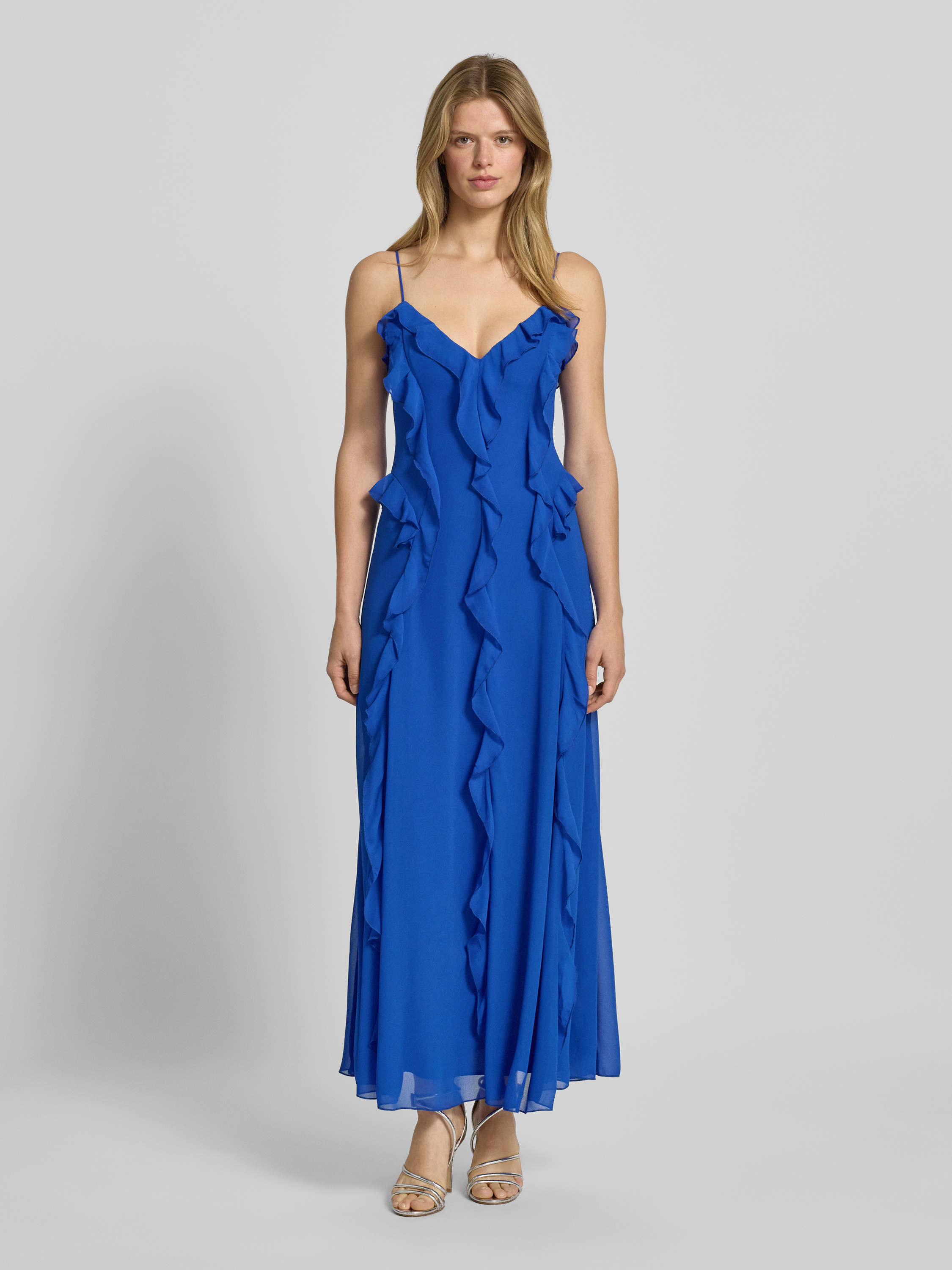 BardotAbendkleid mit V-Ausschnitt und Volants Modell 'VERIS' in royal