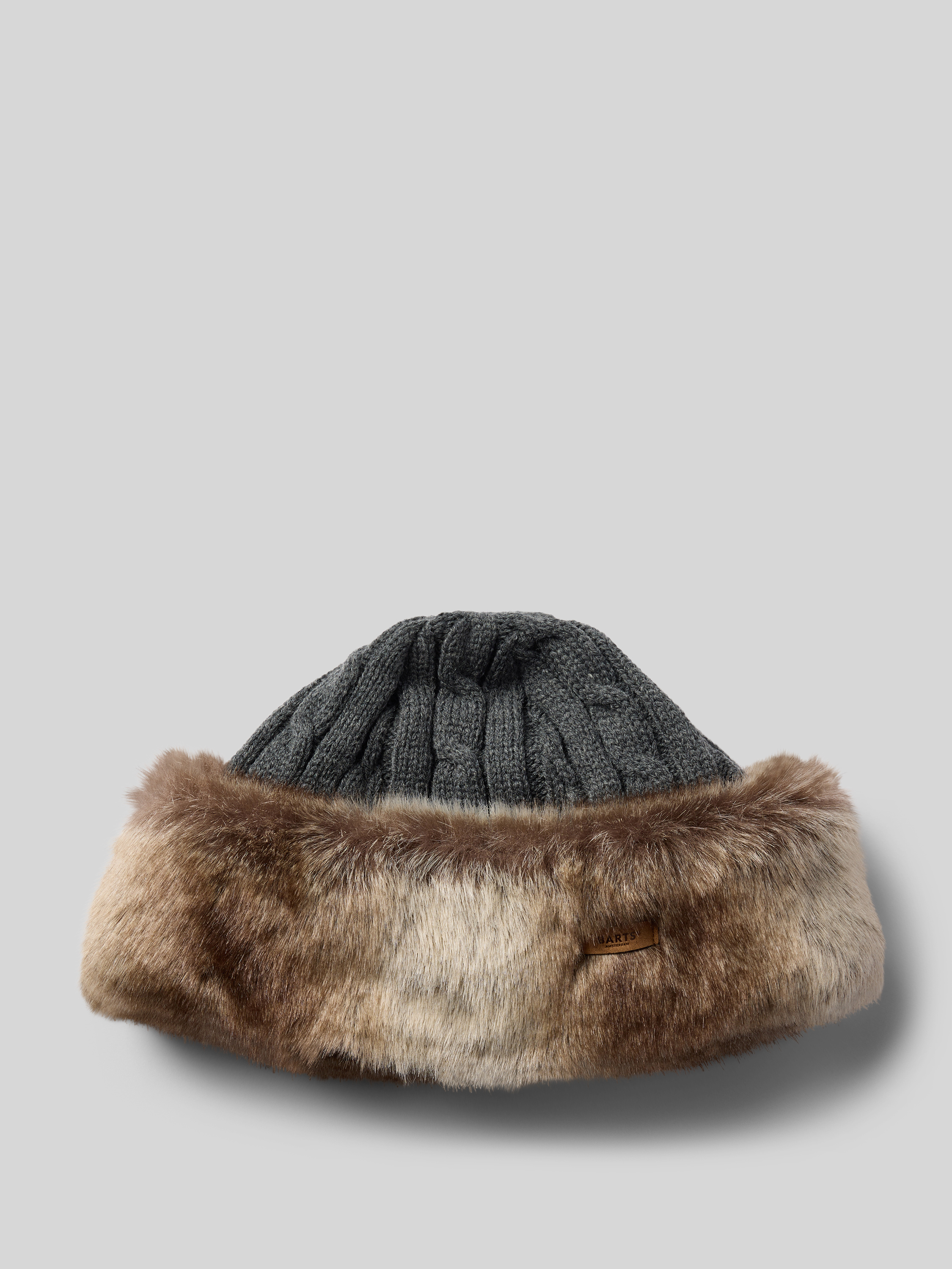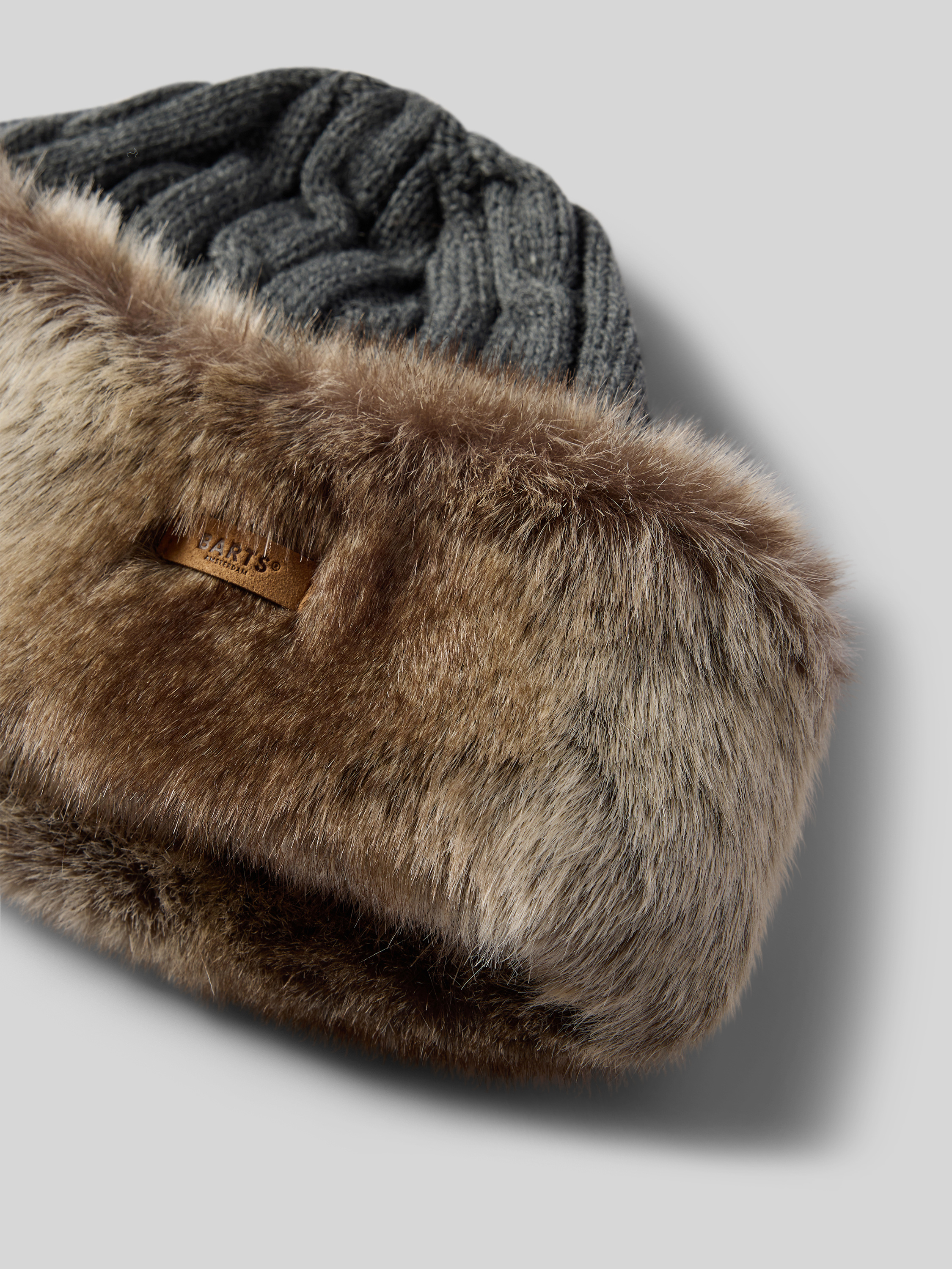 Die Damen Wollmütze von Barts kombiniert einen klassischen Woll-Mix mit breiter Krempe und weichem Kunstfellbesatz. Durch das dekorative Zopfmuster entsteht ein abwechslungsreiches Strickbild, das angenehm ins Auge fällt. Ein kleiner Label-Patch rundet das Design auf dezente Weise ab.