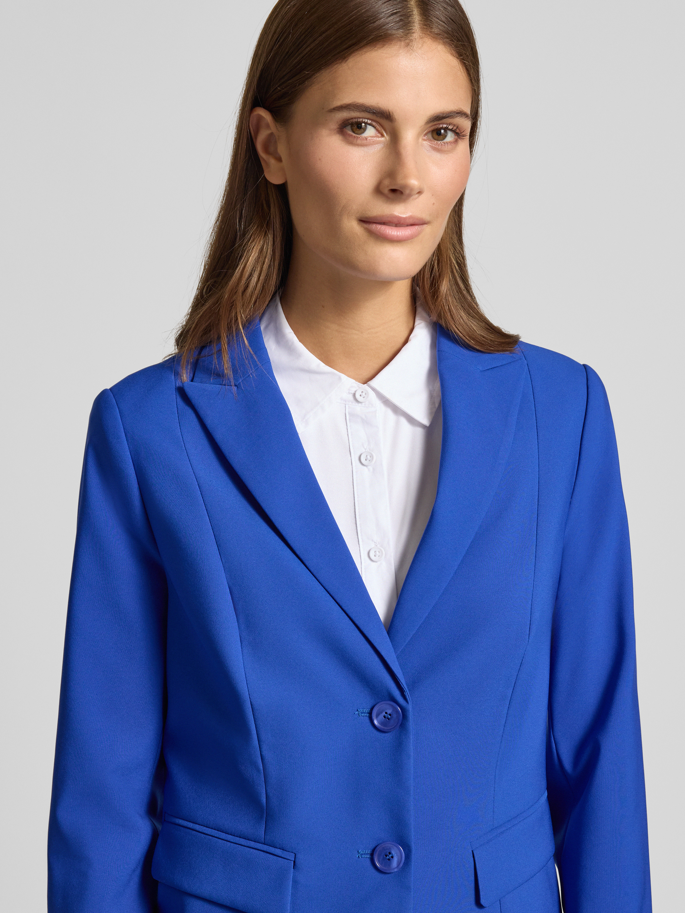 Der Damen Blazer von Betty Barclay zeichnet sich durch seinen Regular Fit und den klassischen Reverskragen aus, wodurch er vielseitig kombinierbar bleibt. Dank des Material-Mix mit Stretch-Anteil sitzt das Modell angenehm und ermöglicht Bewegungsfreiheit. Dezente Pattentaschen runden das Gesamtbild funktional und stilvoll ab.