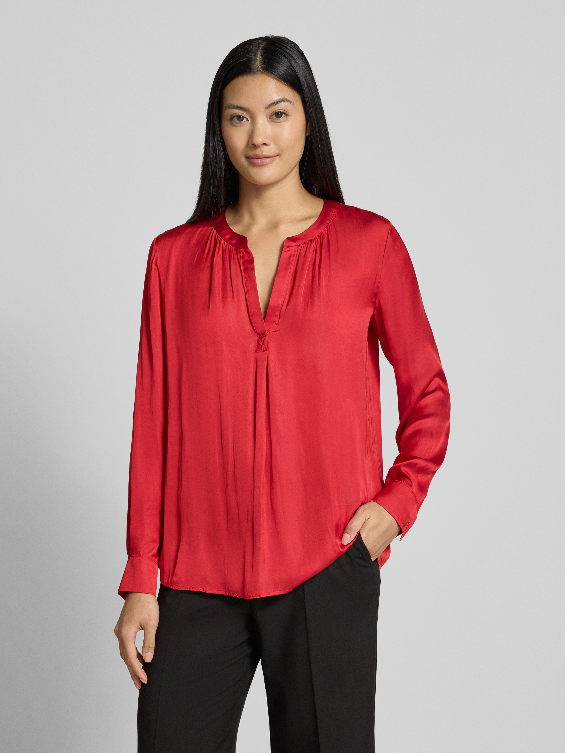 Das Damen Blusenshirt von Betty Barclay fällt durch den lockeren Schnitt angenehm leicht und sorgt mit dem V-Ausschnitt für eine moderne Note. Raffungen verleihen dem Oberteil eine dezente Struktur, wodurch die Silhouette entspannt wirkt. So eignet sich das Shirt für entspannte Tage und lässt sich vielseitig kombinieren.