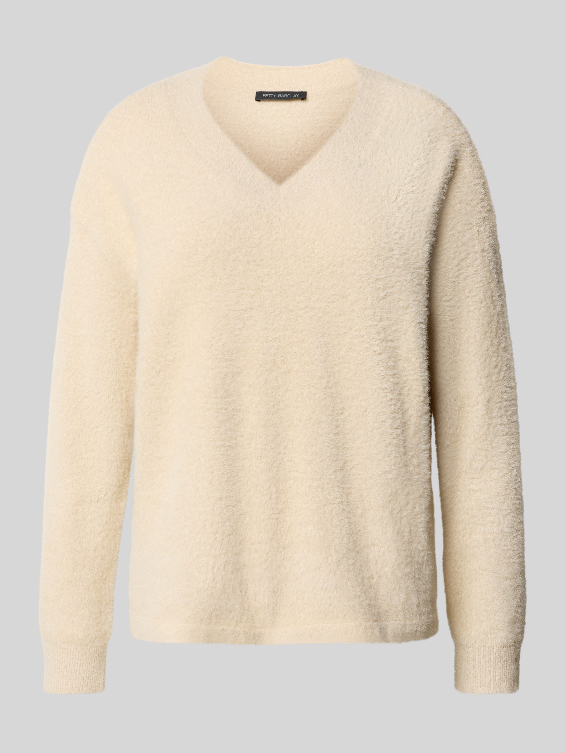 Der Damen-Strickpullover von Betty Barclay fällt durch seinen V-Ausschnitt und die angenehm reguläre Passform auf, wodurch er vielseitig kombinierbar bleibt. Dank des Material-Mix liegt er weich auf der Haut und sorgt für angenehmen Tragekomfort. So lässt sich unkompliziert ein legerer Look gestalten.