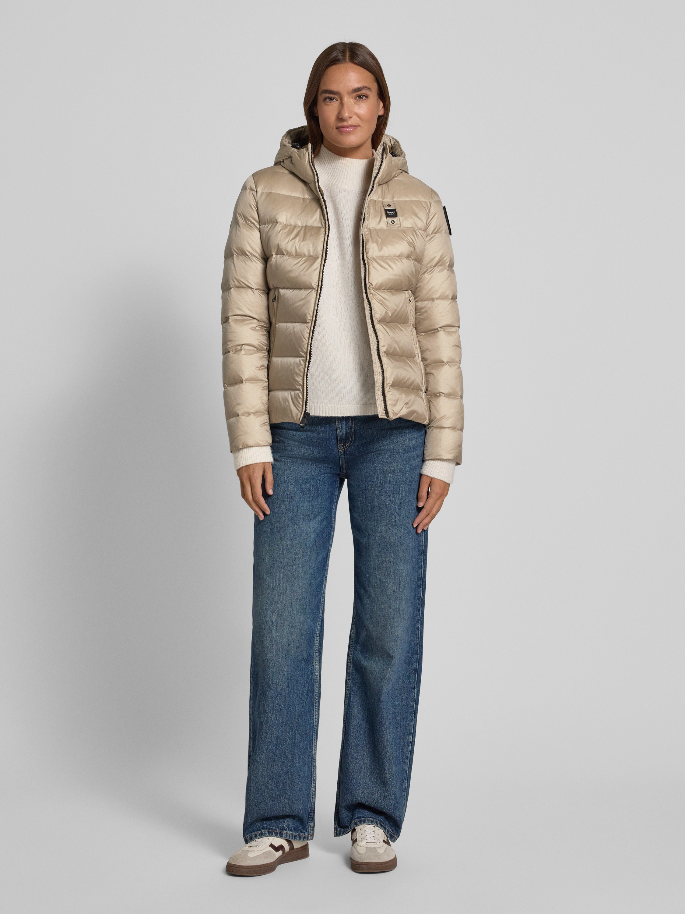 Blauer UsaDaunenjacke mit Zweiwege-Reißverschluss Modell 'CHARME' in beige