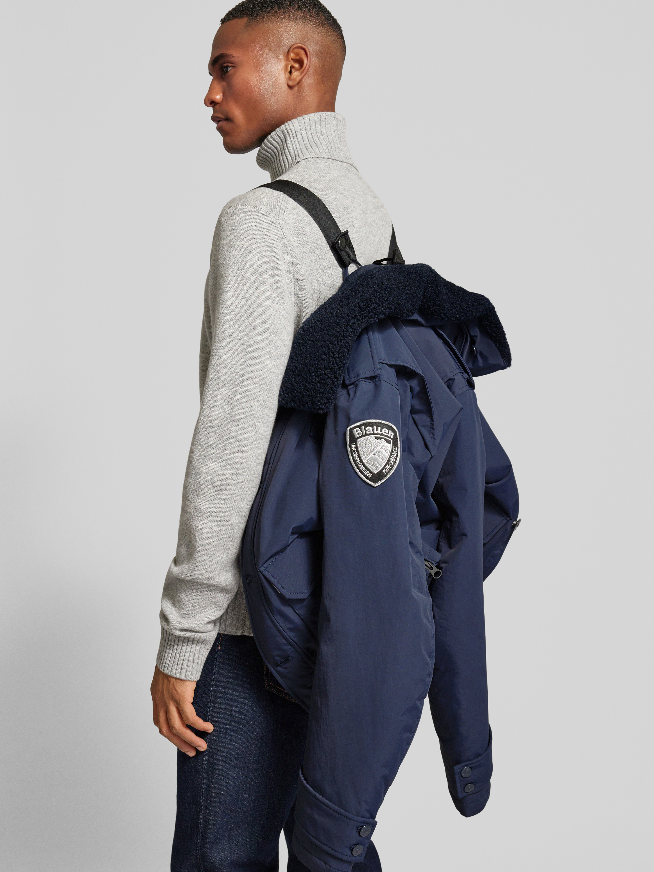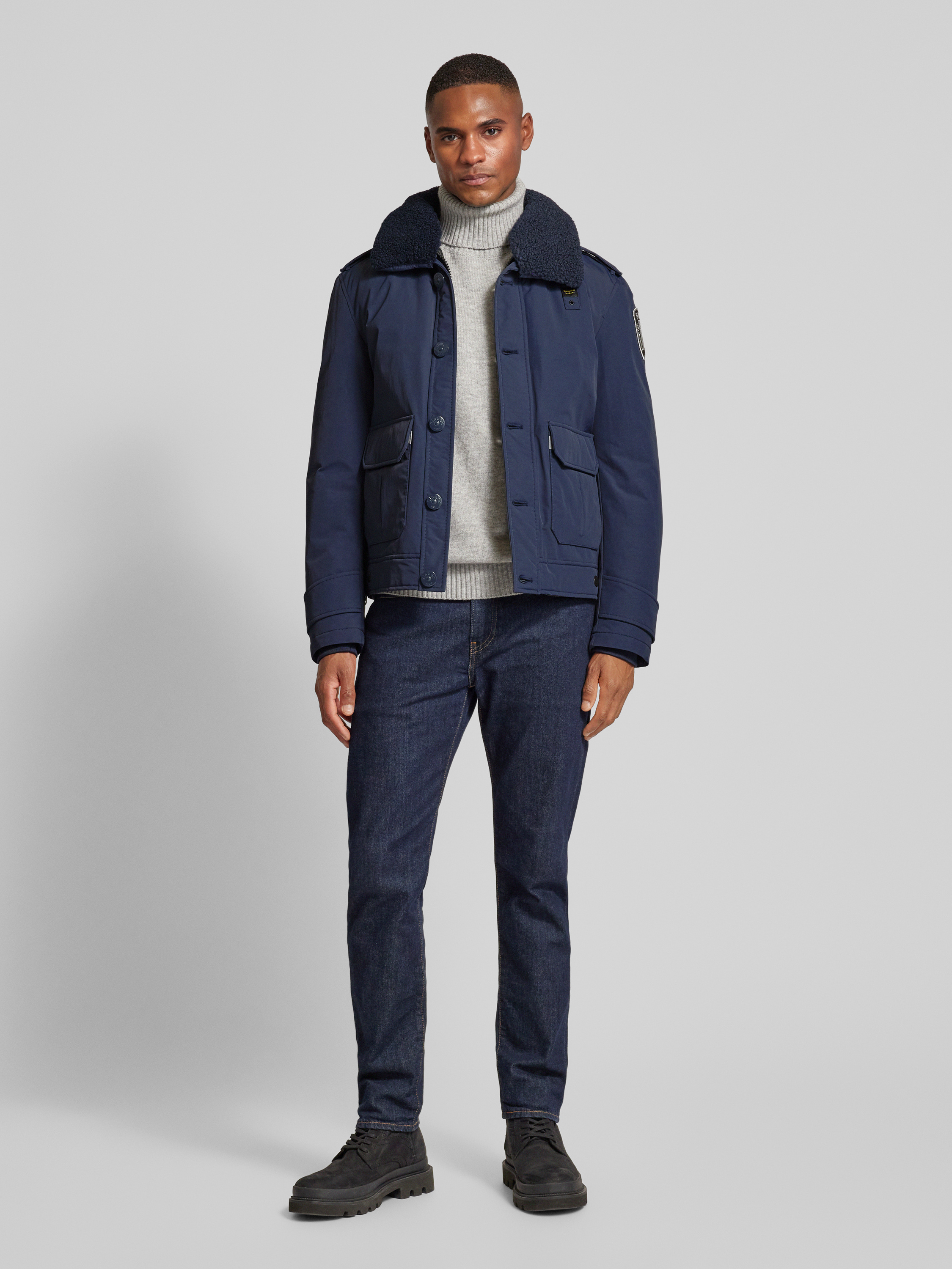 Die Jacke mit Label-Patch Modell 'RIVER' von Blauer USA kombiniert Funktionalität und Stil. Der gerade Schnitt sowie der Umlegekragen mit Teddyfell sorgen für angenehmen Tragekomfort und eine ansprechende Optik. Praktische Eingrifftaschen bieten zusätzlichen Nutzen für den Alltag.