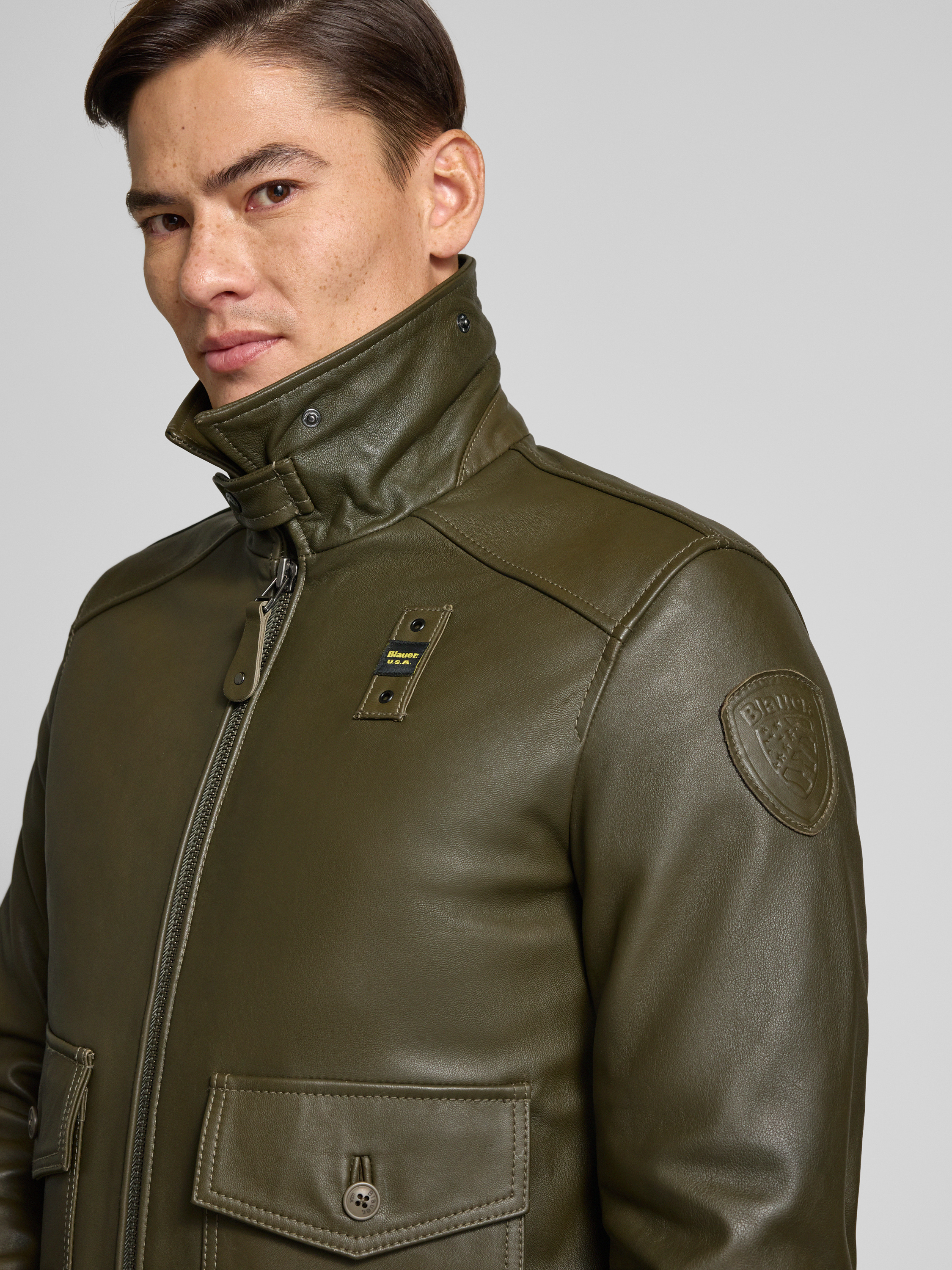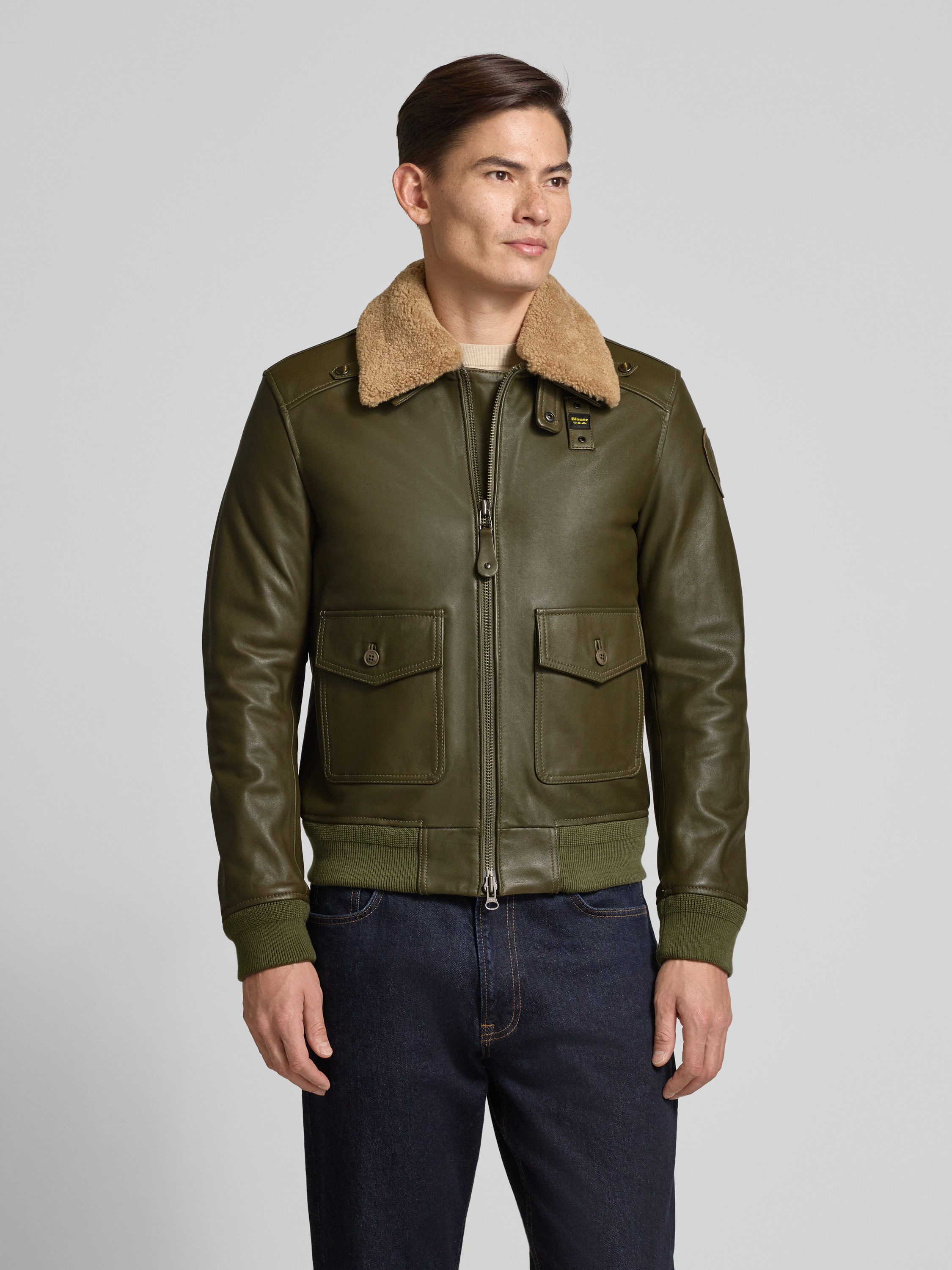 Die Herren Lederjacke von Blauer Usa im Modell 'CHEITON' präsentiert sich im Regular Fit und besteht aus echtem Leder, das eine angenehme Haptik und Langlebigkeit mit sich bringt. Durch den Umlegekragen mit Teddyfell entsteht ein markanter Akzent, während die Pattentaschen praktische Details setzen. Dezente Label-Elemente runden den Look ab, sodass man unkompliziert einen vielseitigen Stil schafft.