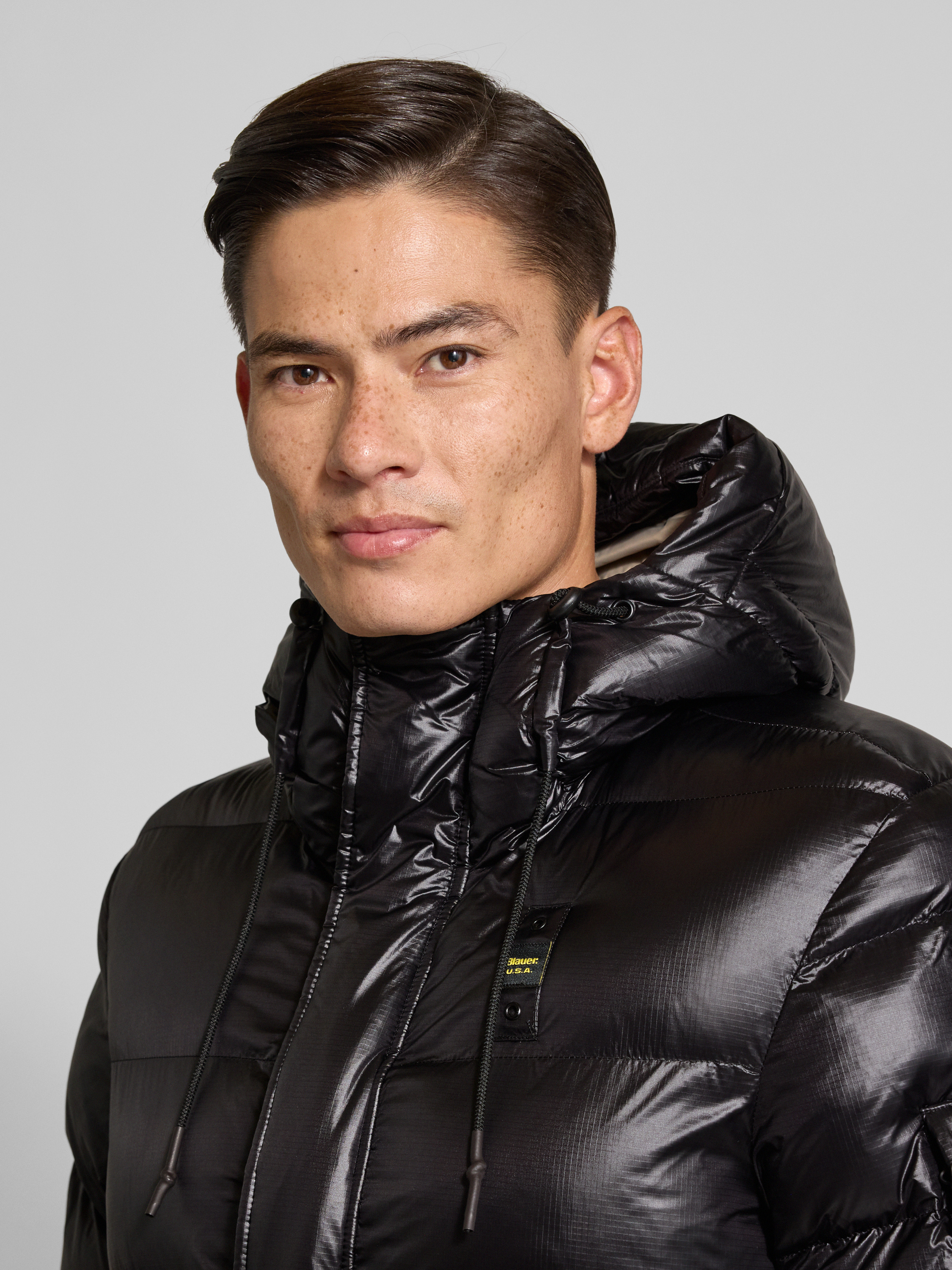 Blauer UsaRegular Fit Steppmantel mit Logo-Applikation Modell 'Aldrich' in black