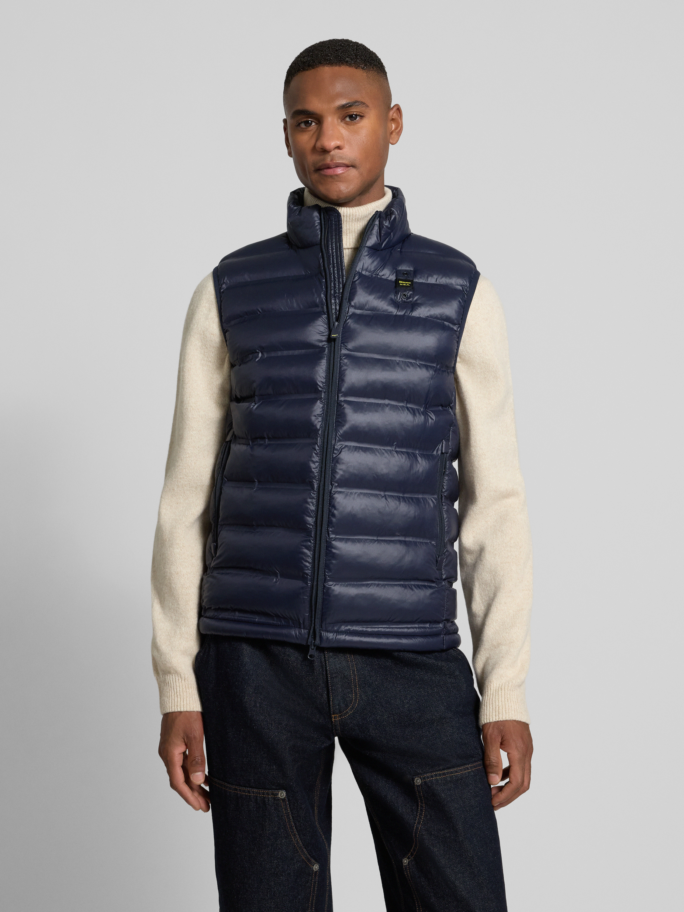 Blauer UsaSteppweste mit Stehkragen und Zweiwege-Reißverschluss in marine