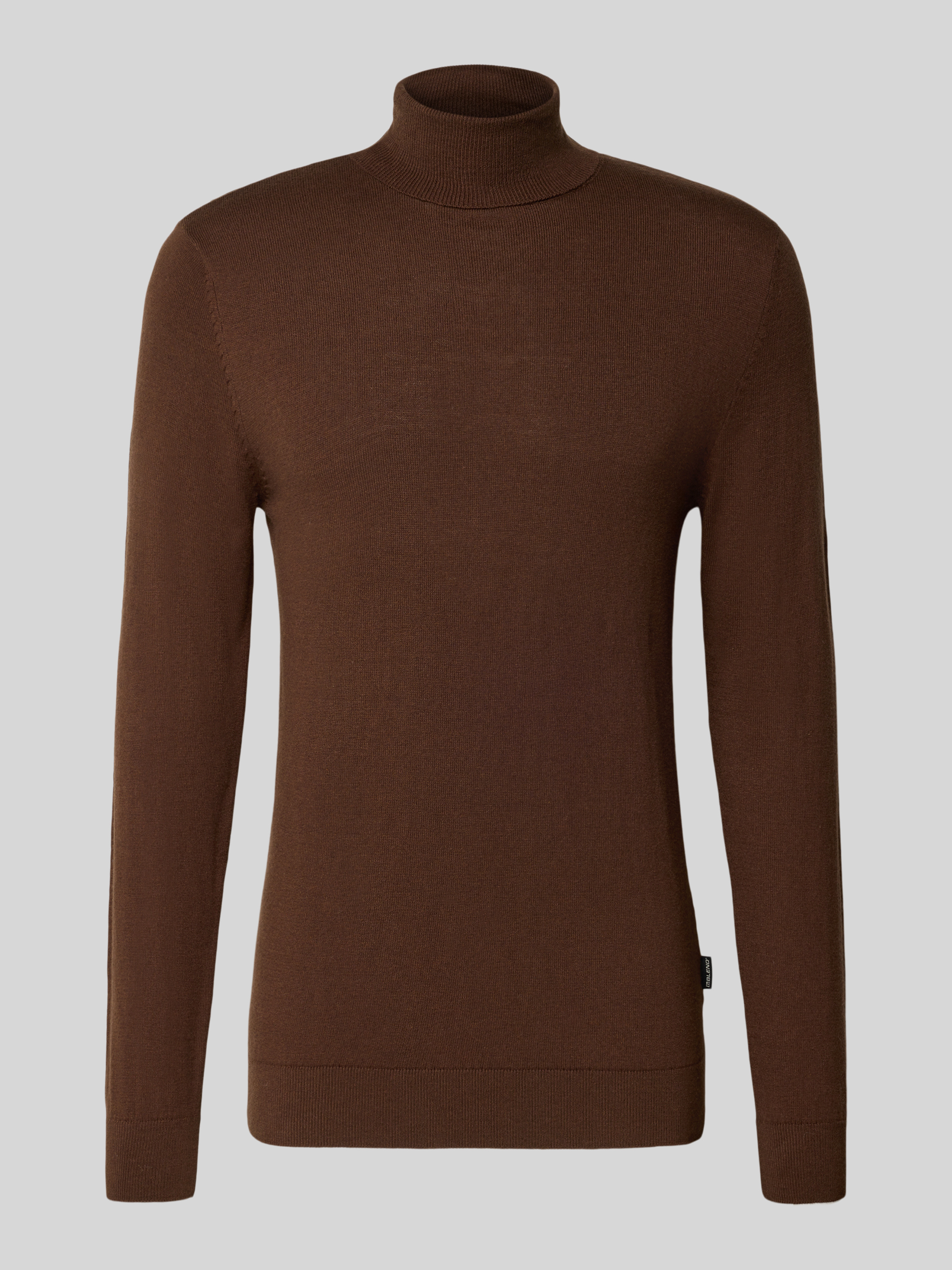 BlendRollkragenpullover mit Label-Detail Modell 'BAGGE' in mittelbraun