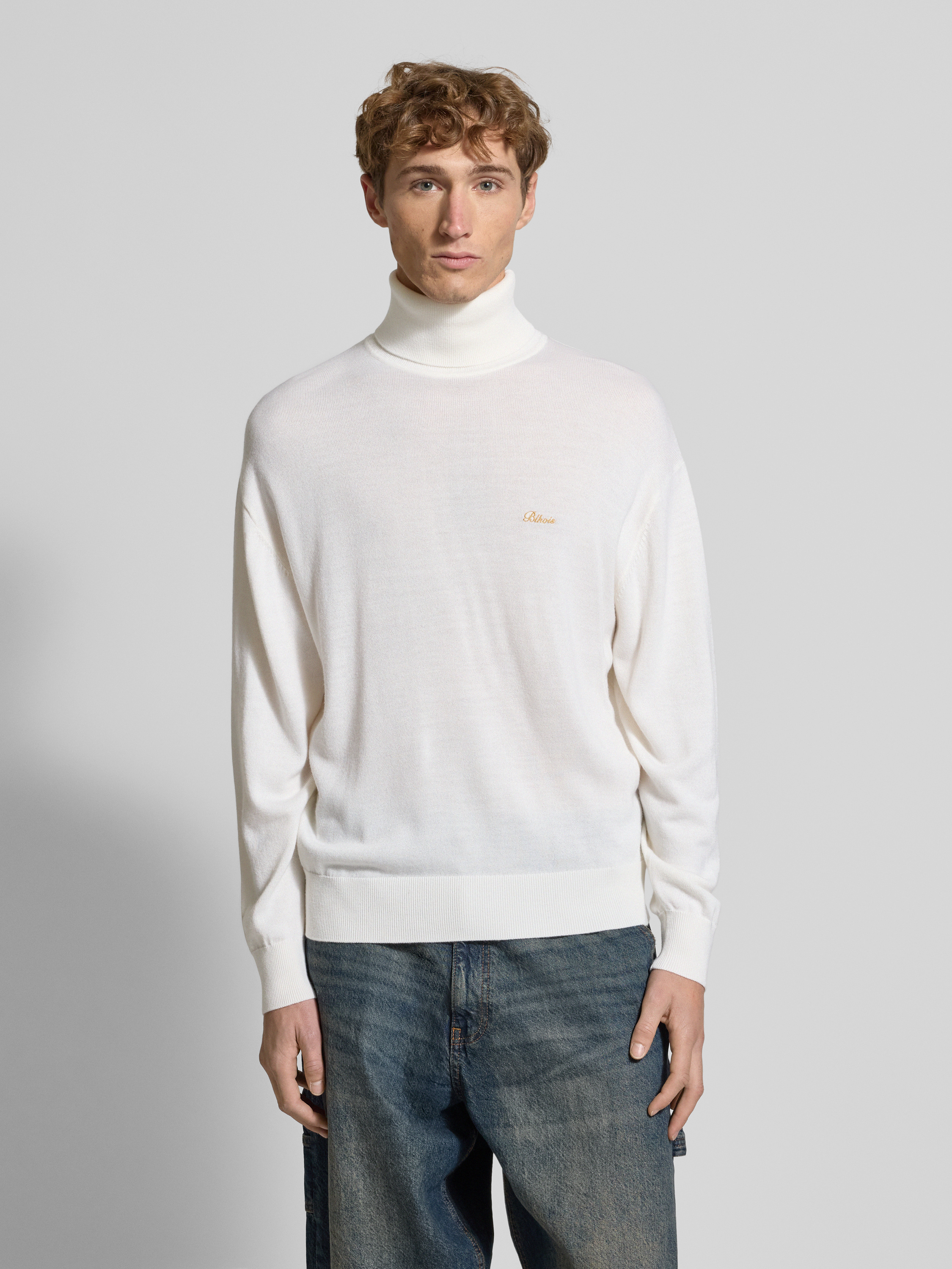 BLKVISRollkragenpullover mit gerippten Abschlüssen Modell 'Script' in offwhite