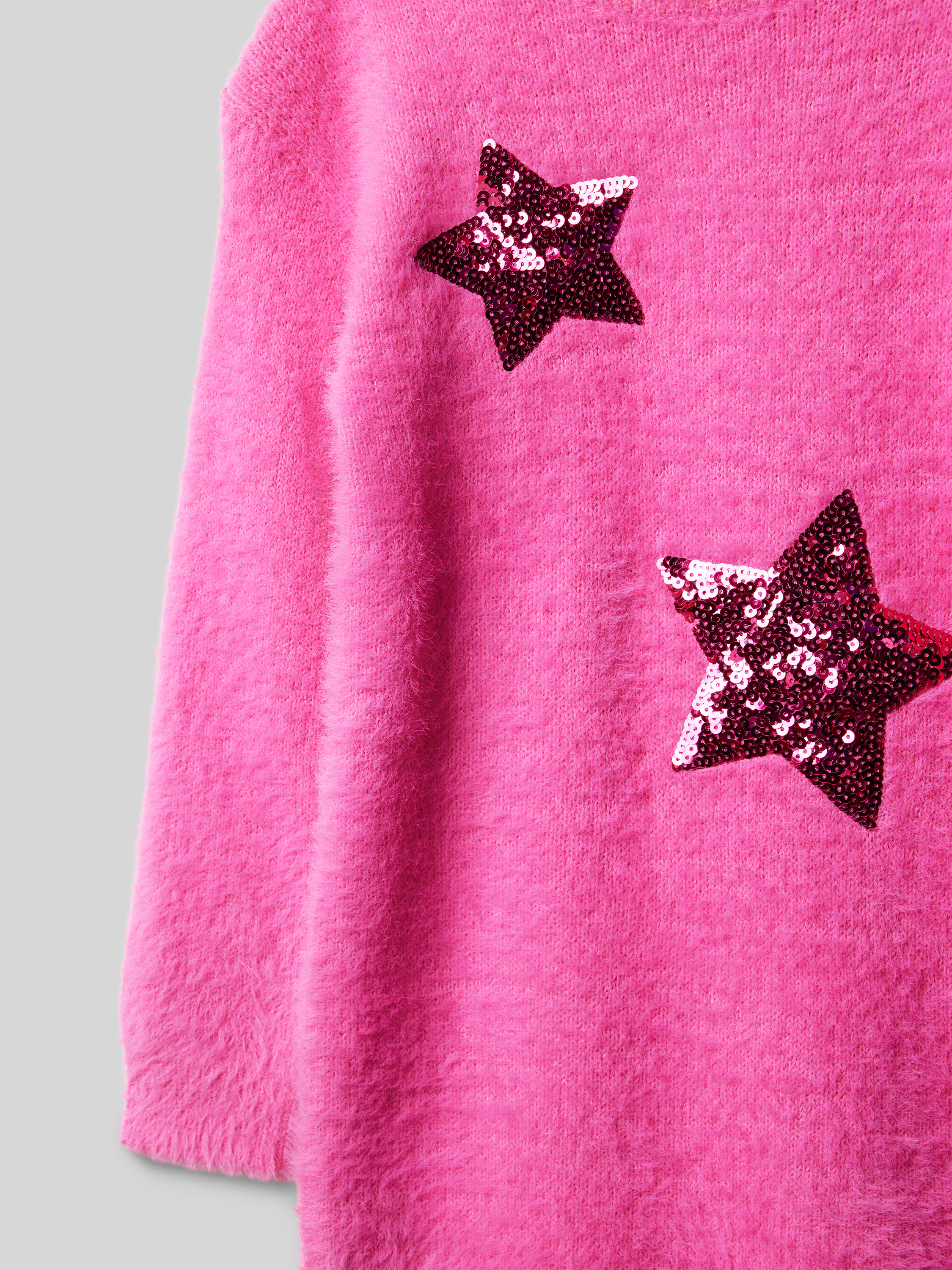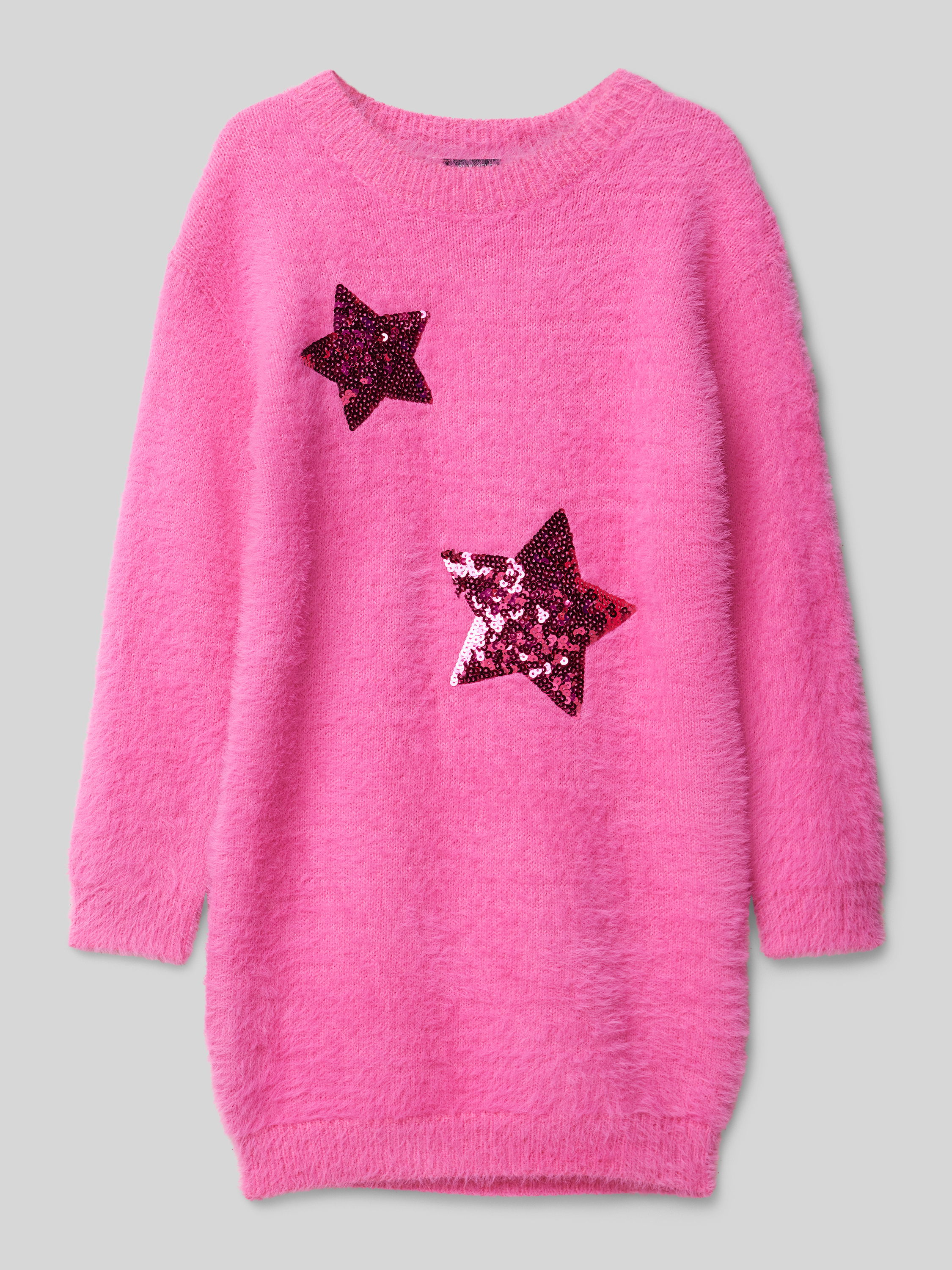 Blue SevenStrickkleid mit Paillettenbesatz in pink